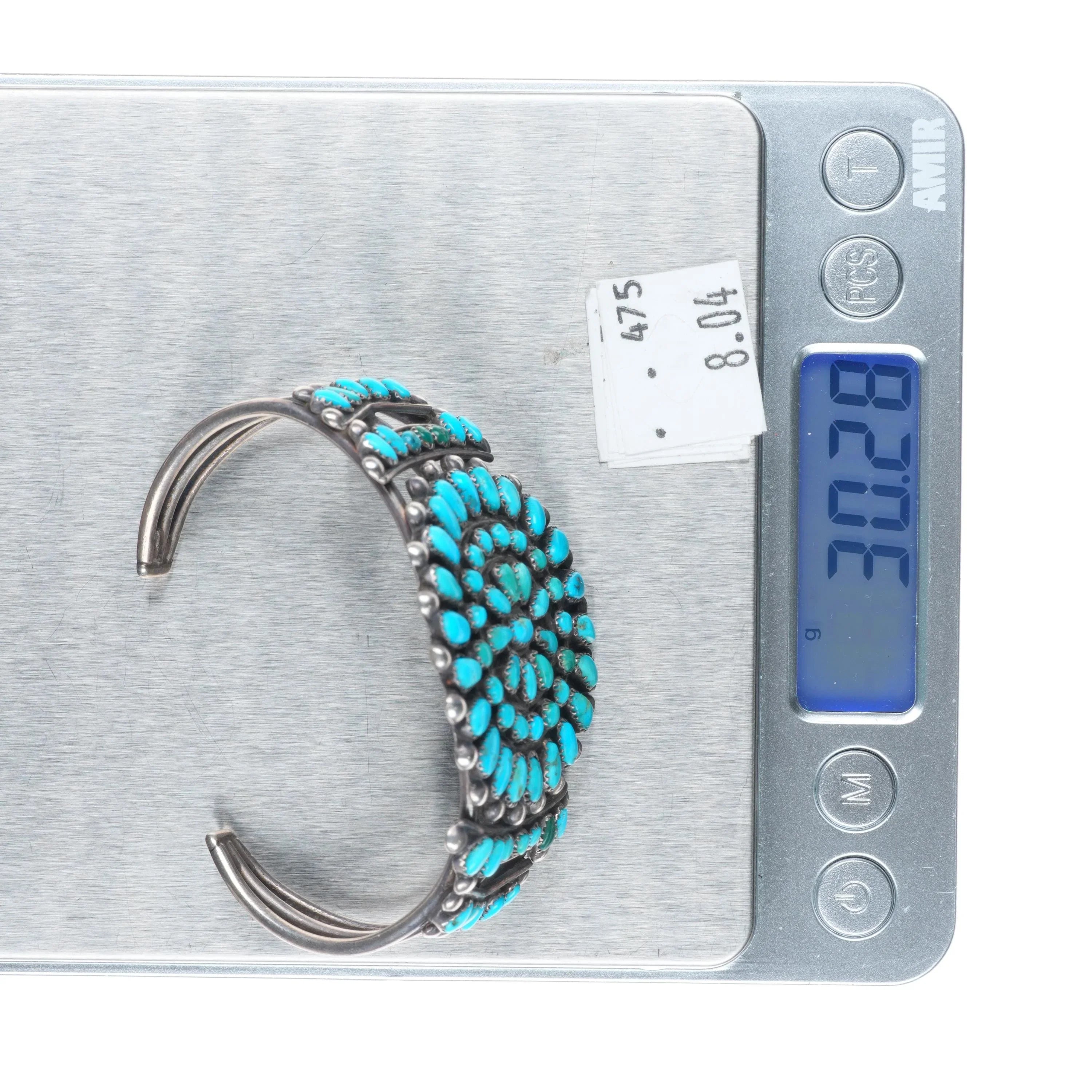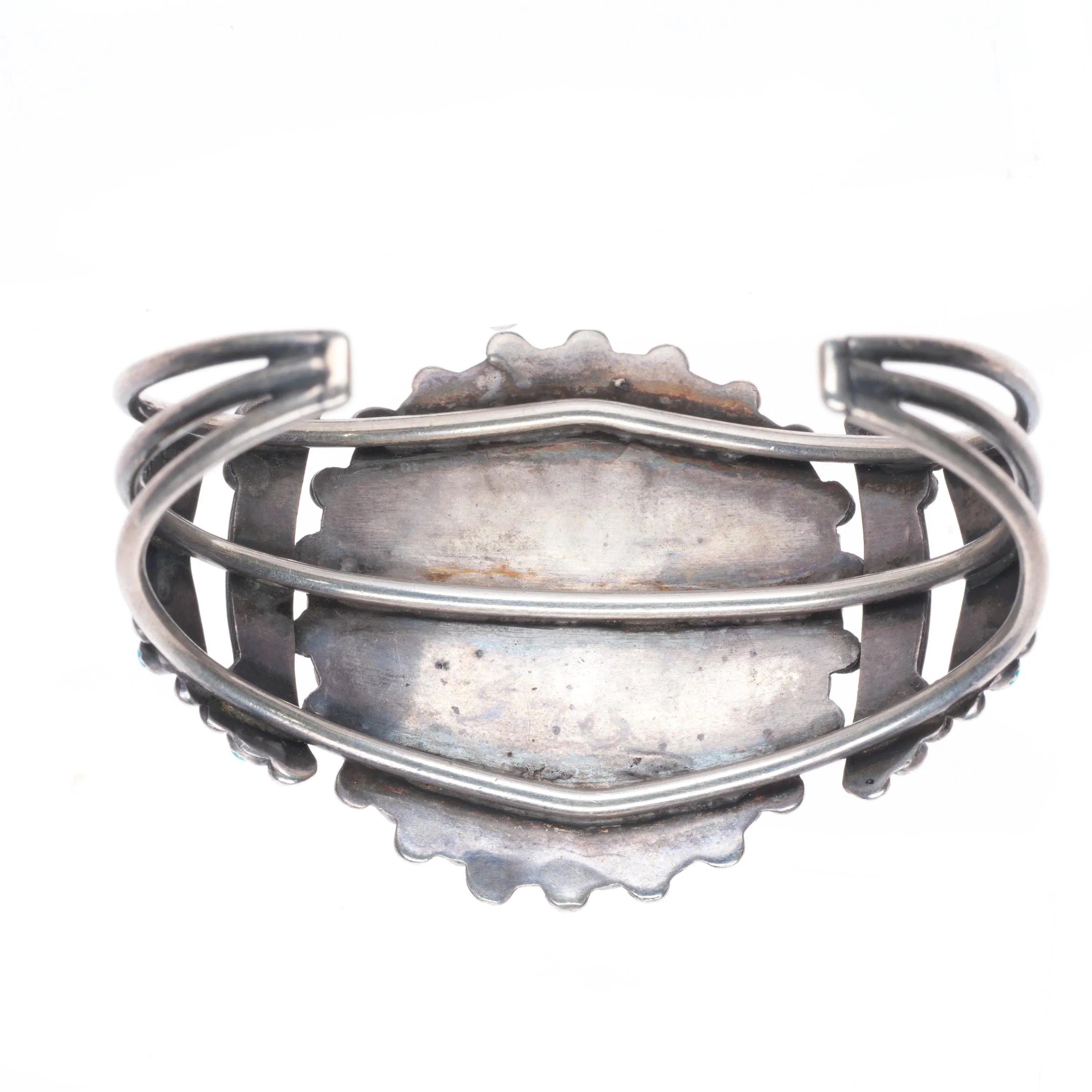 6.1" c1940's Zuni sterling silver natural turquoise cluster cuff bracelet