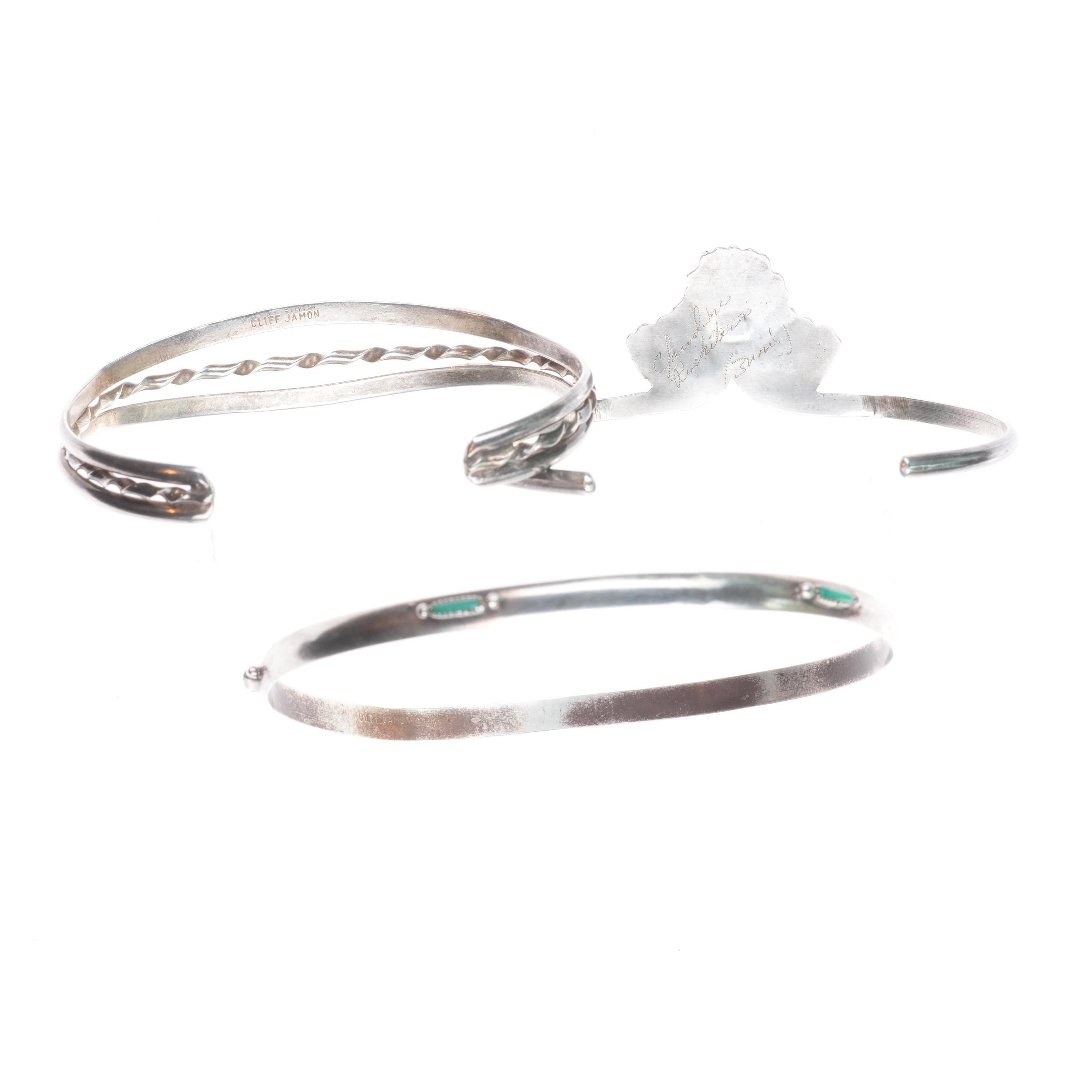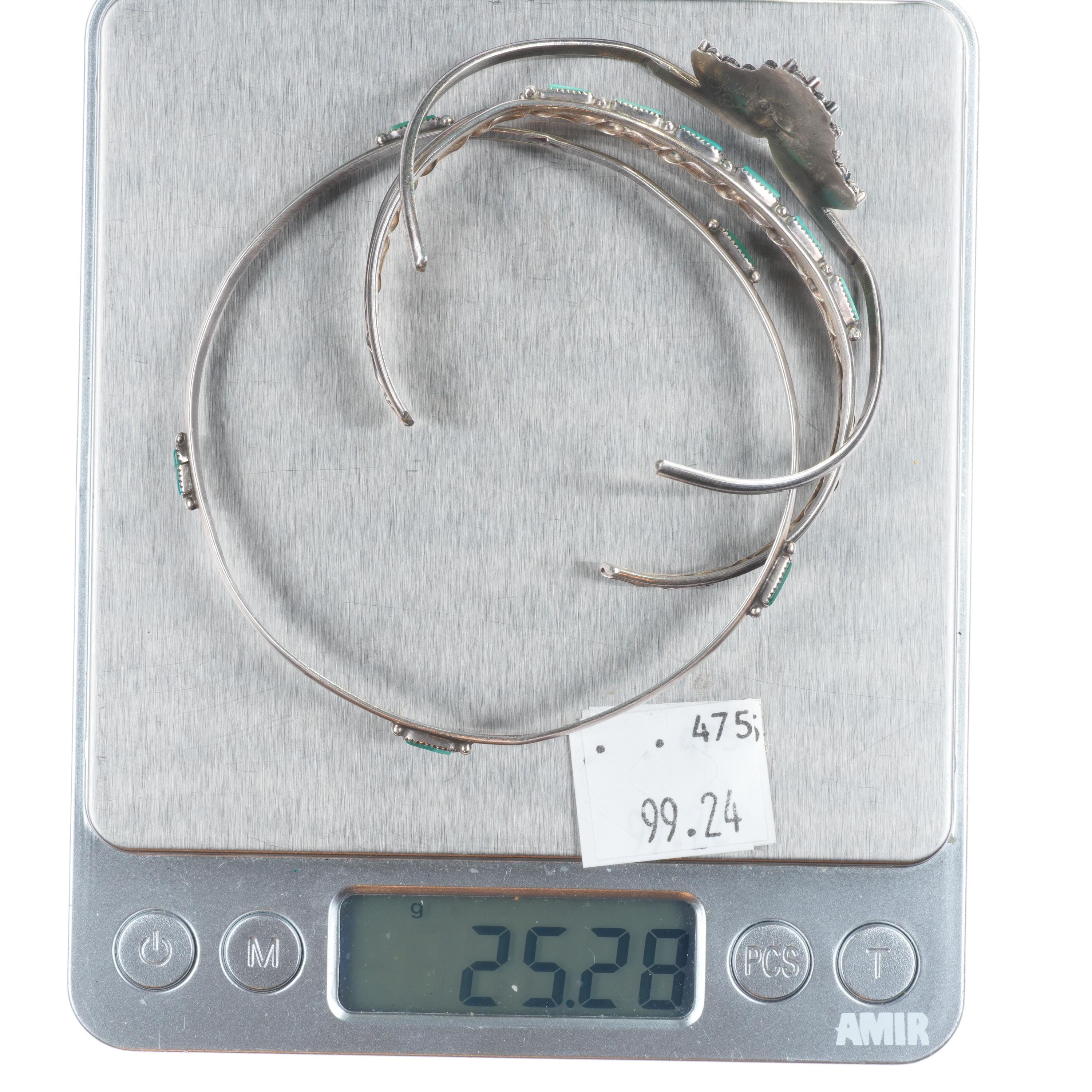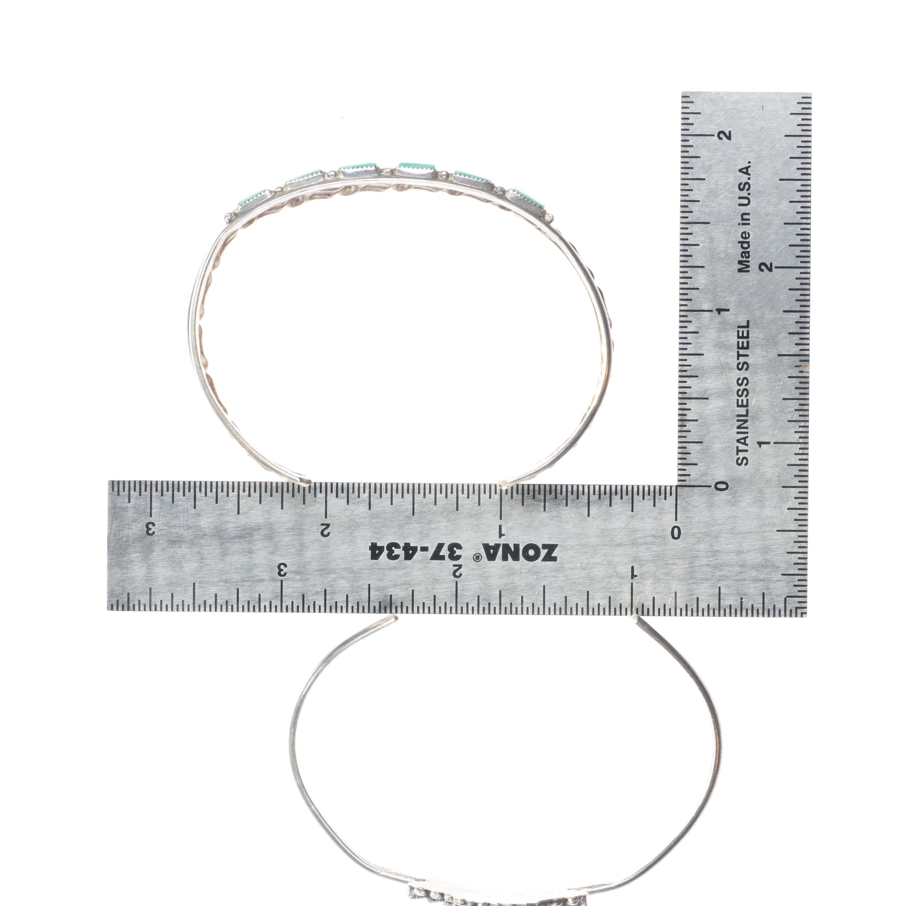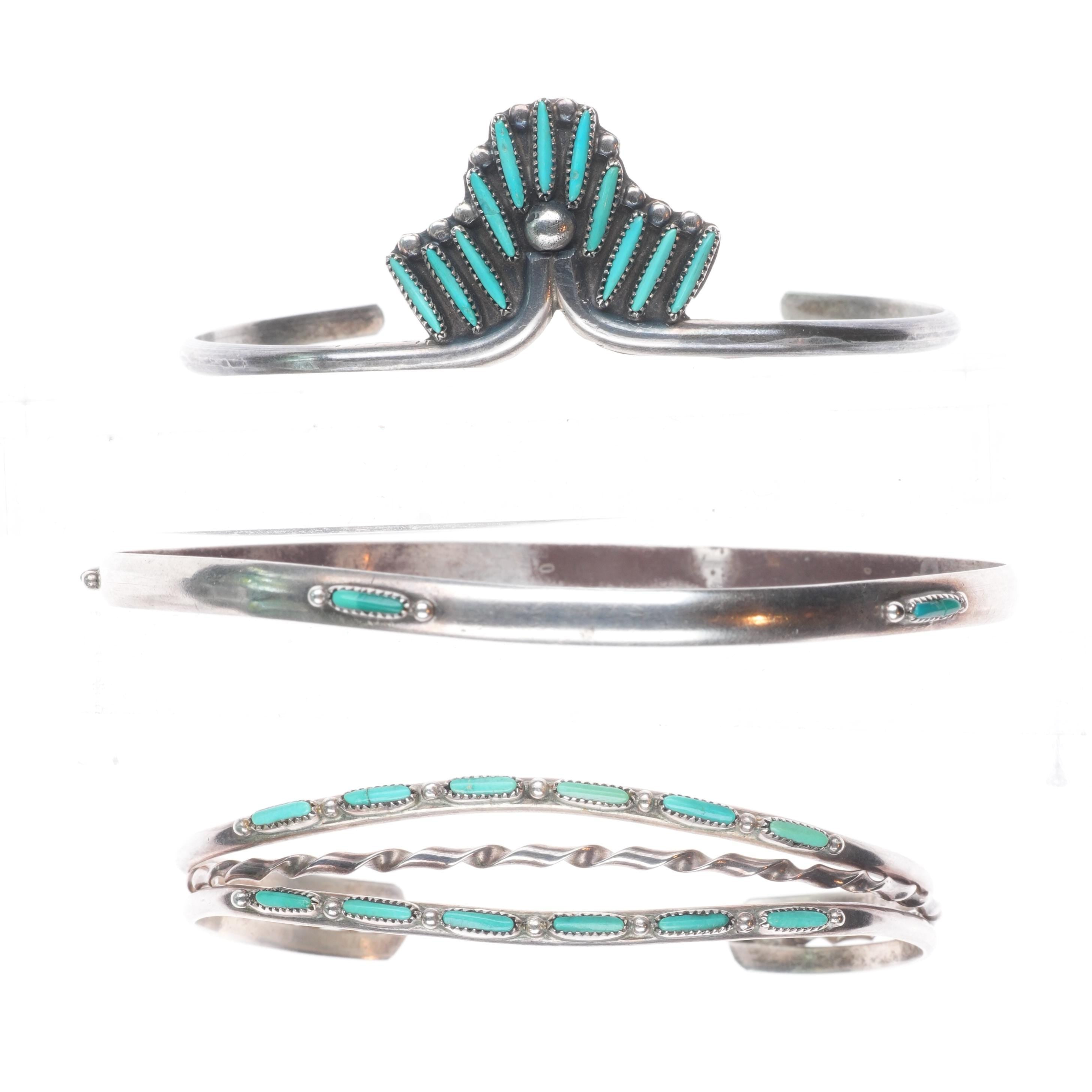 6.25"-8.25" Zuni needlepoint turquoise sterling silver cuff bracelets/bangle. Tested and guaranteed solid sterling silver with weight and measurements in pictures. Circa third quarter of the 20th century. Fits up to a 6.25"-6.5" wrist without adjustment, though .25" or more of careful adjustment is typically very simple. Any adjustment will change the gap size of course which is shown in the pictures. Unmarked (which is common with older Native American jewelry) unless a hallmark is shown in the pictures.