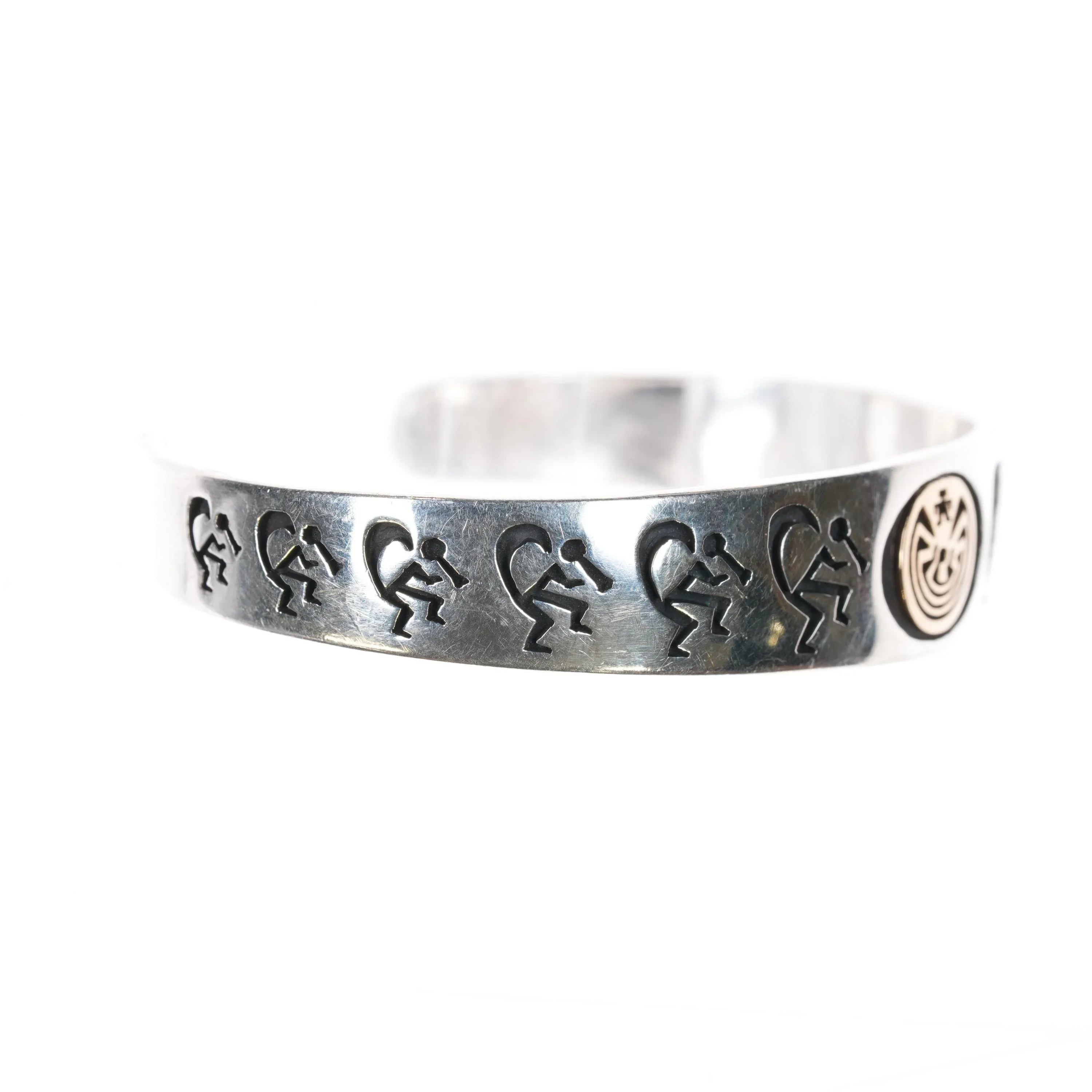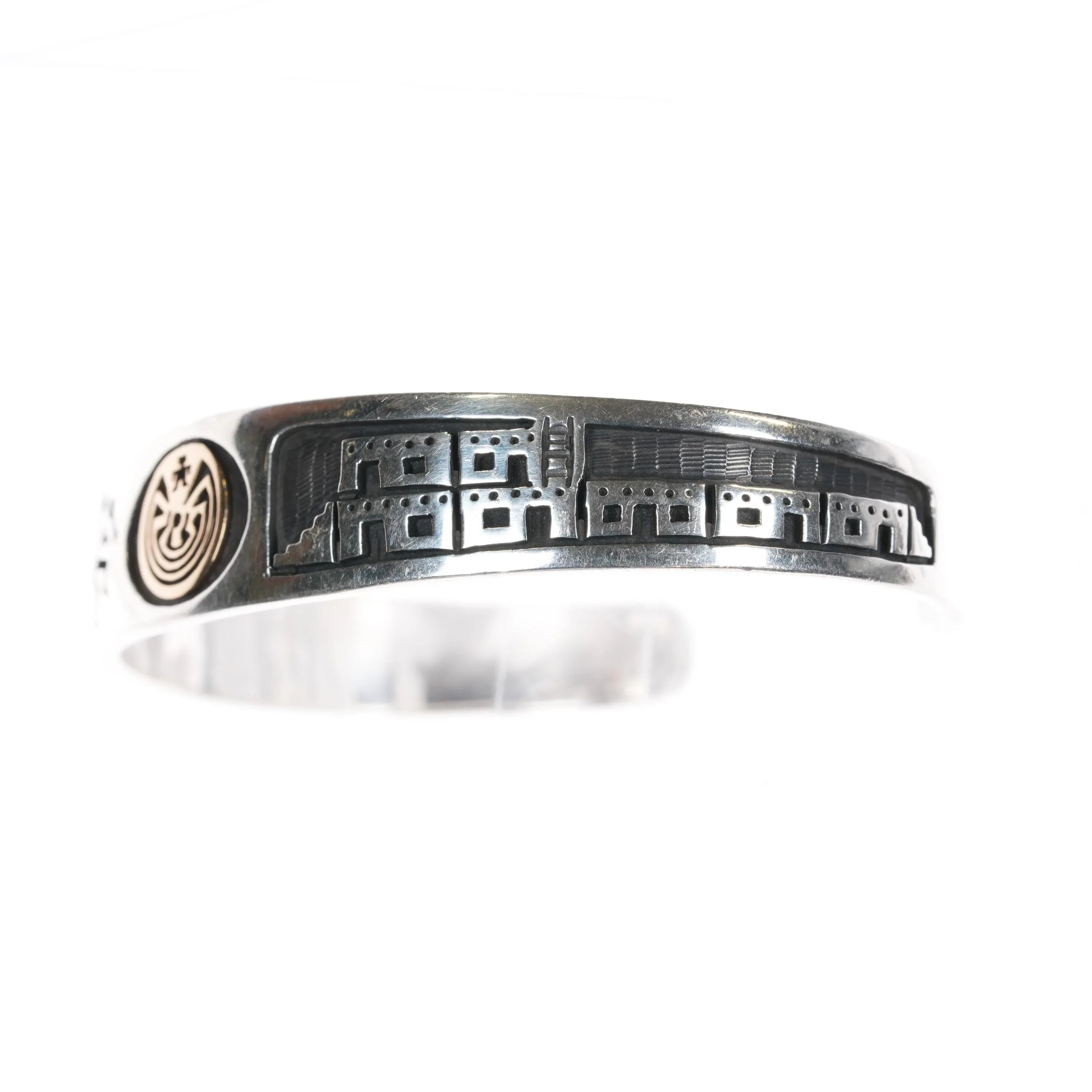 Jason Takala Hopi 14k/Sterling man in the maze cuff bracelet overlay style. Solid 14k "Man in the Maze", rest sterling silver guaranteed, weight and measurement in pics. Lightly worn contemporary cuff bracelet