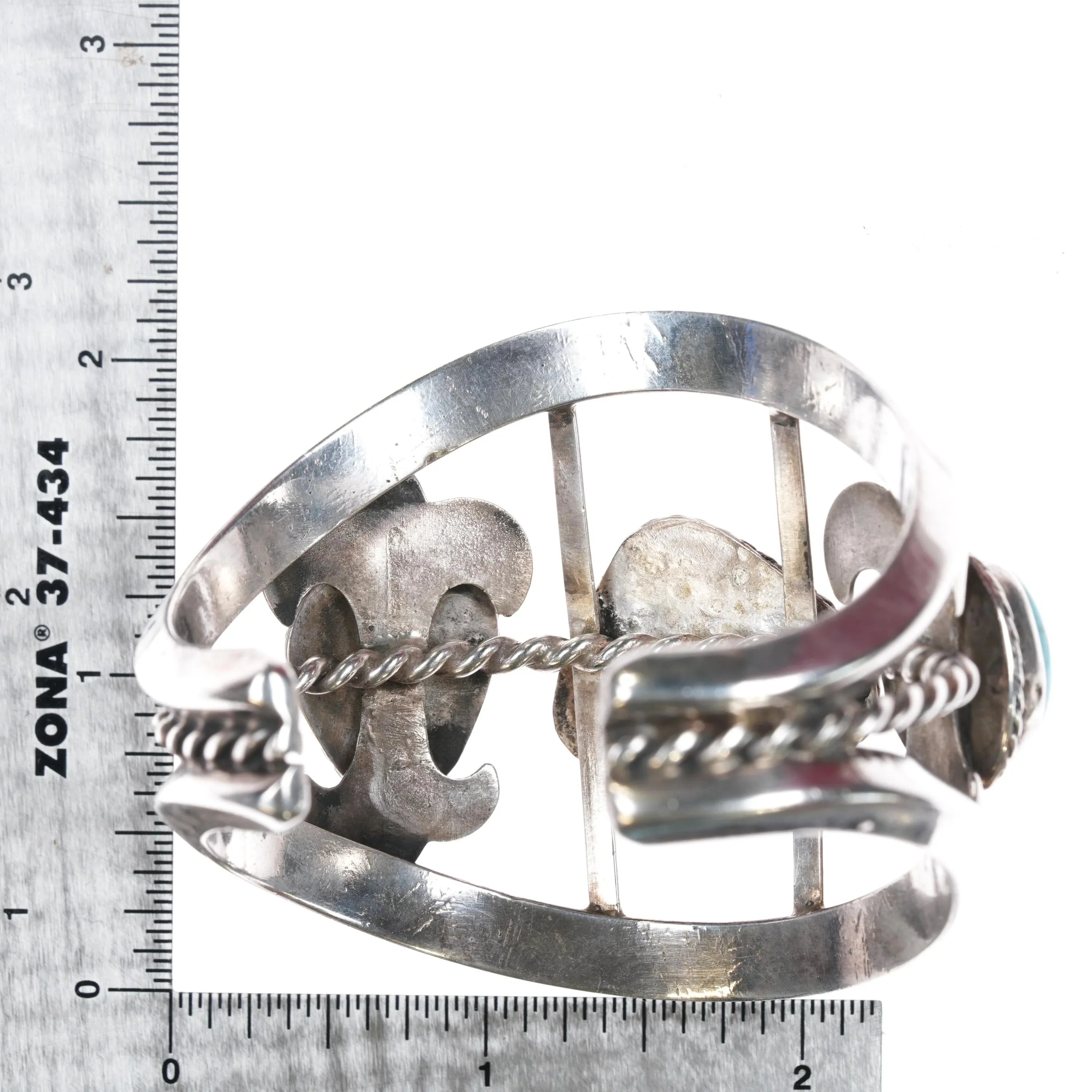6.25" JT Bisbee Turquoise 3 stone cast sterling silver cuff bracelet