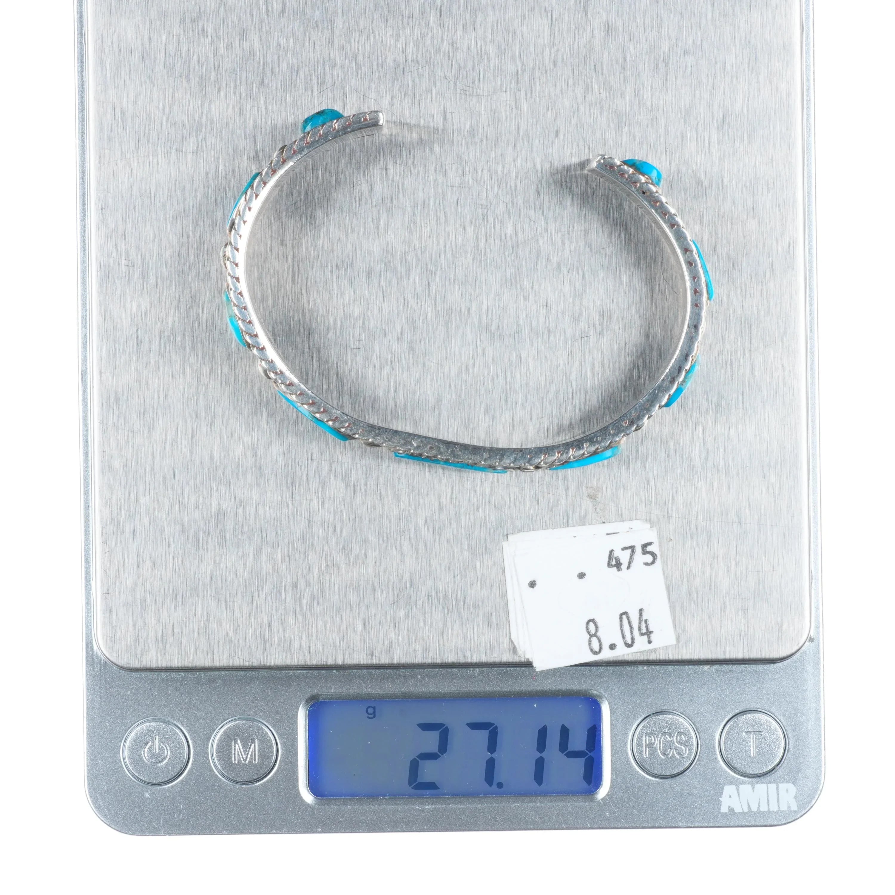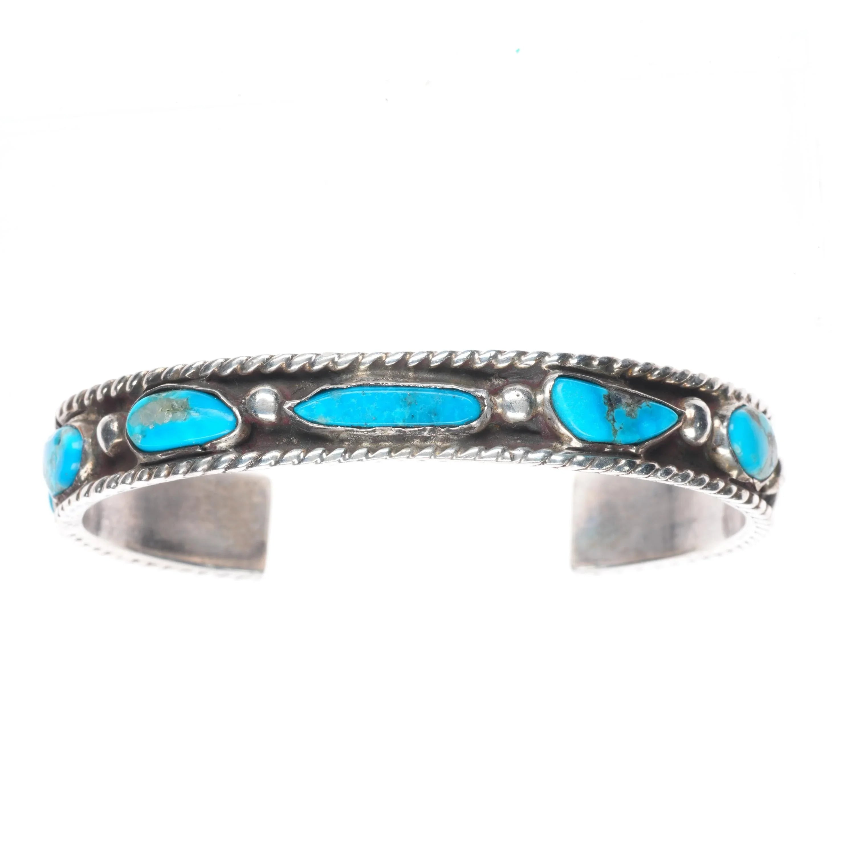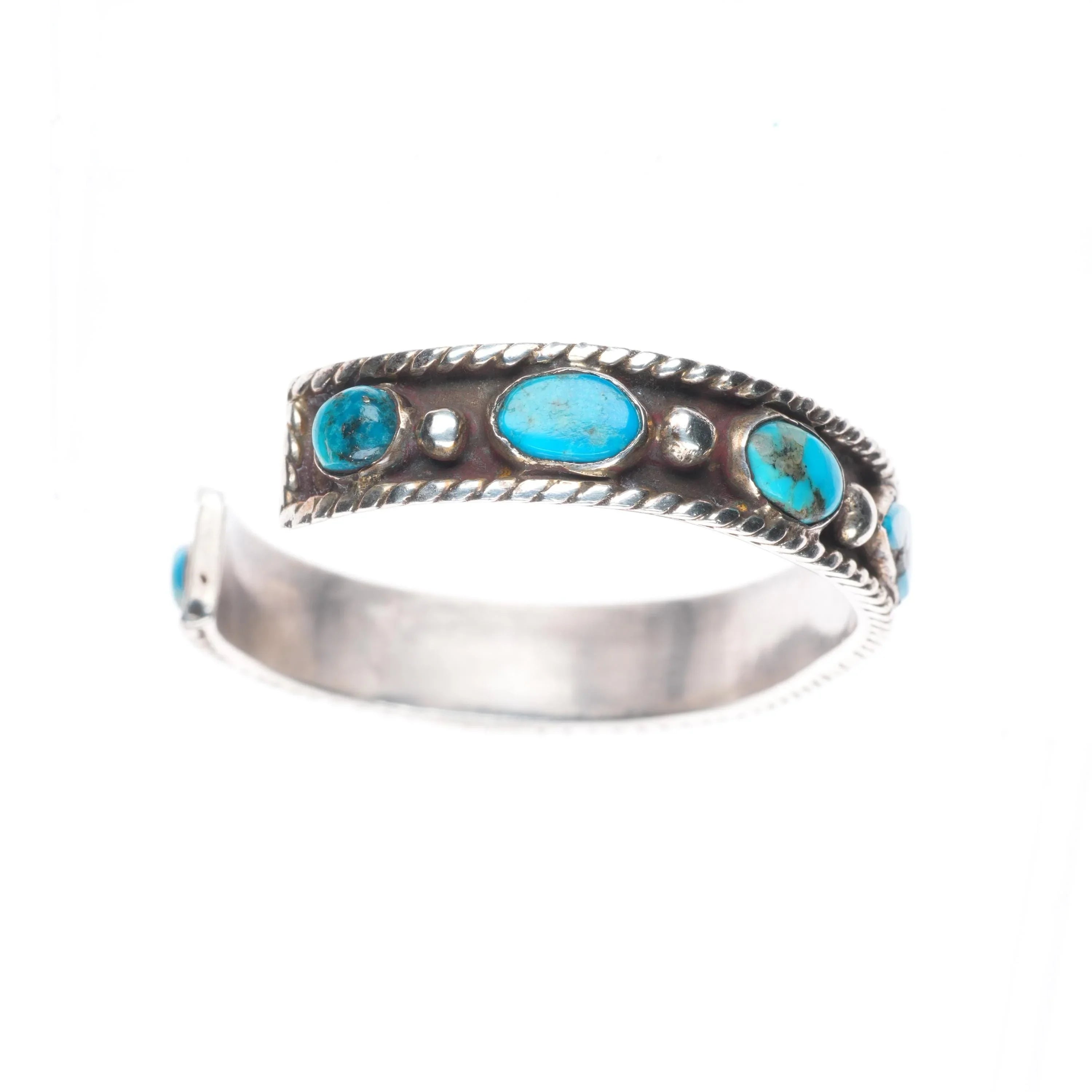 6.25" Vintage sterling silver rope border turquoise row cuff bracelet
