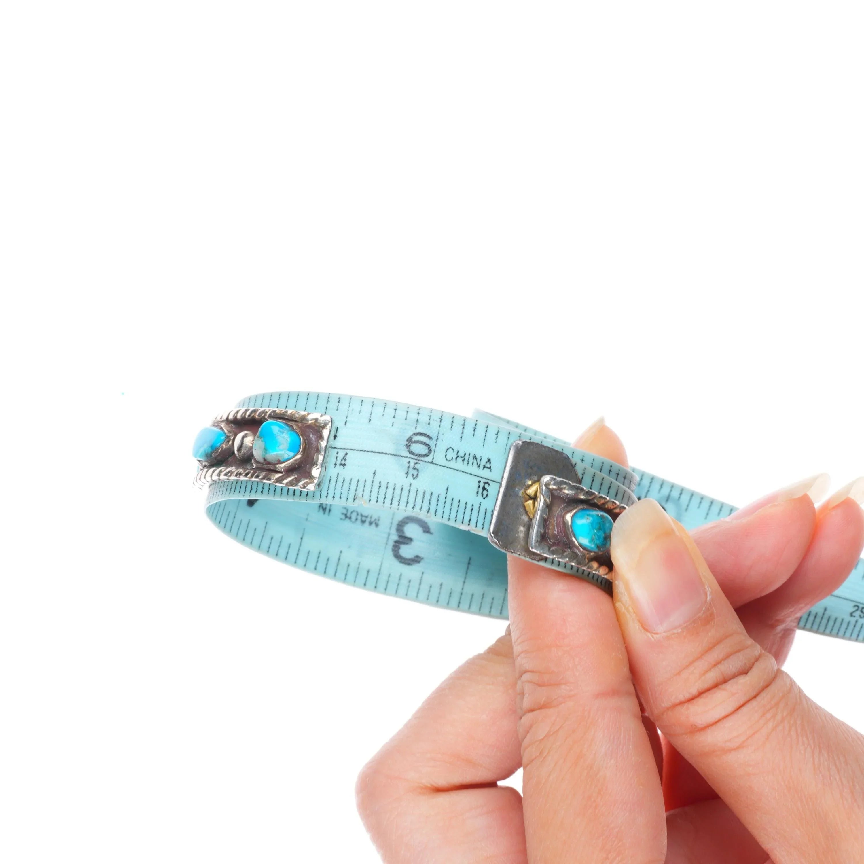 6.25" Vintage sterling silver rope border turquoise row cuff bracelet. Tested and guaranteed solid sterling silver with minimal wear, no damage. Weight and measurements in pictures. Circa third quarter of the 20th century. unmarked.