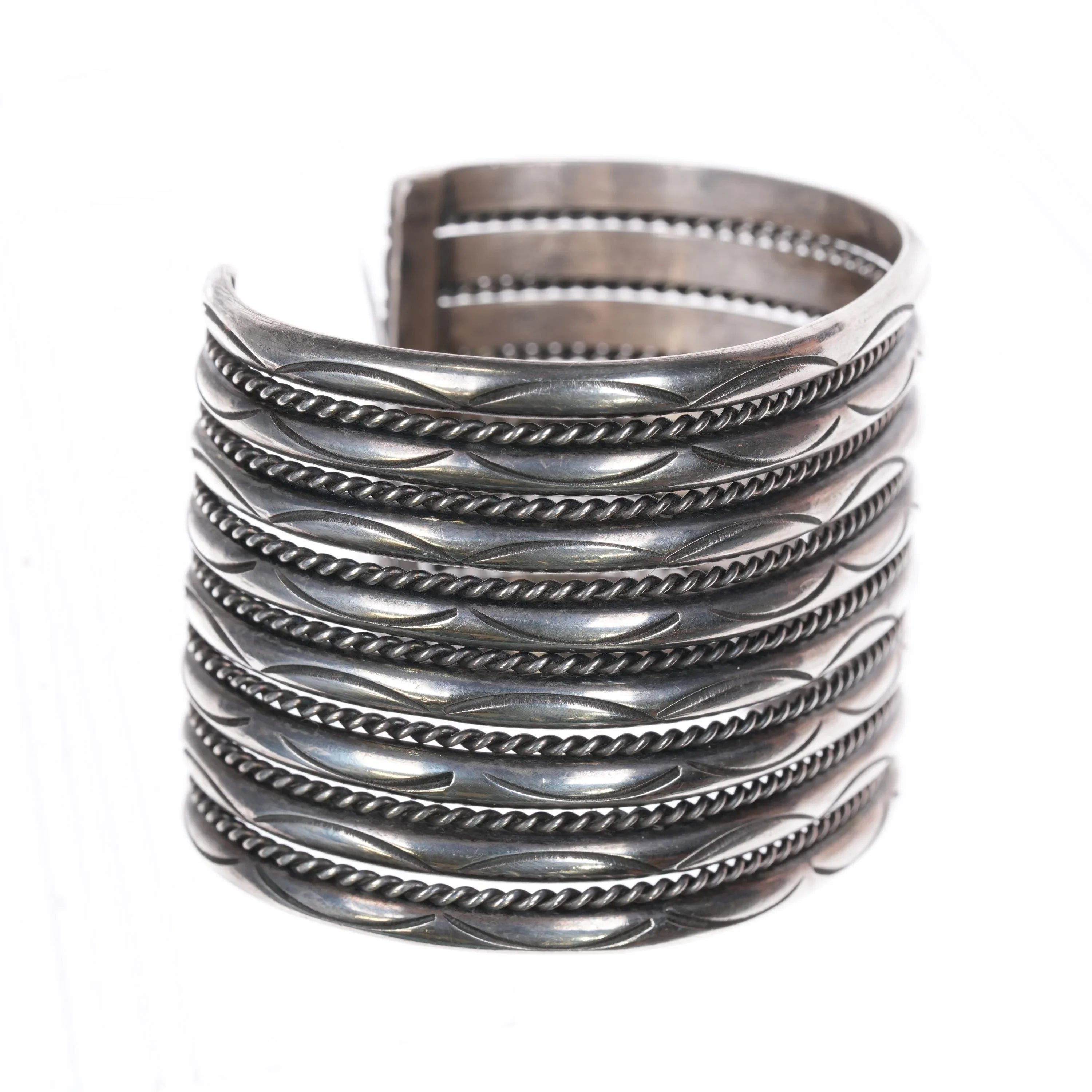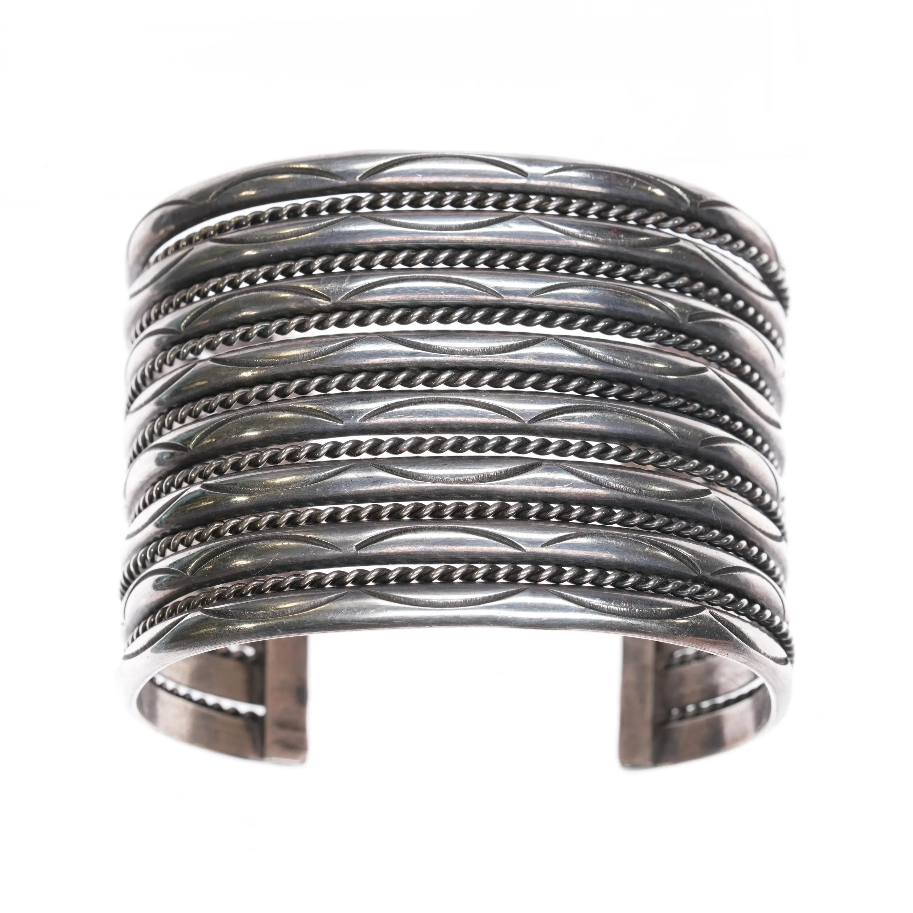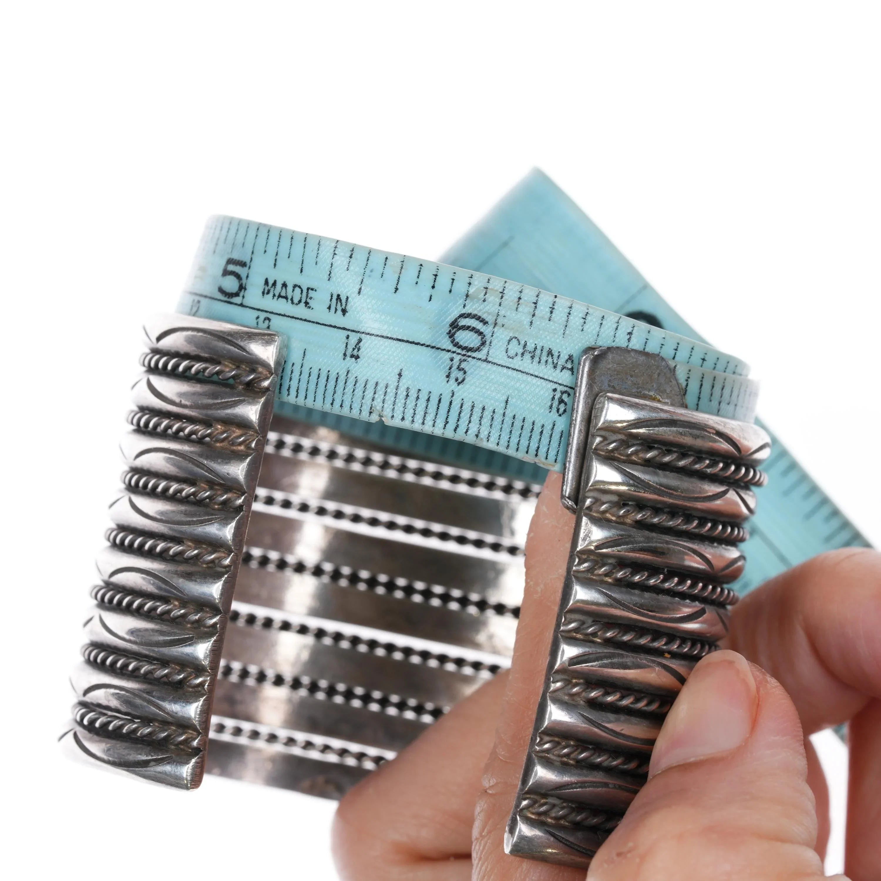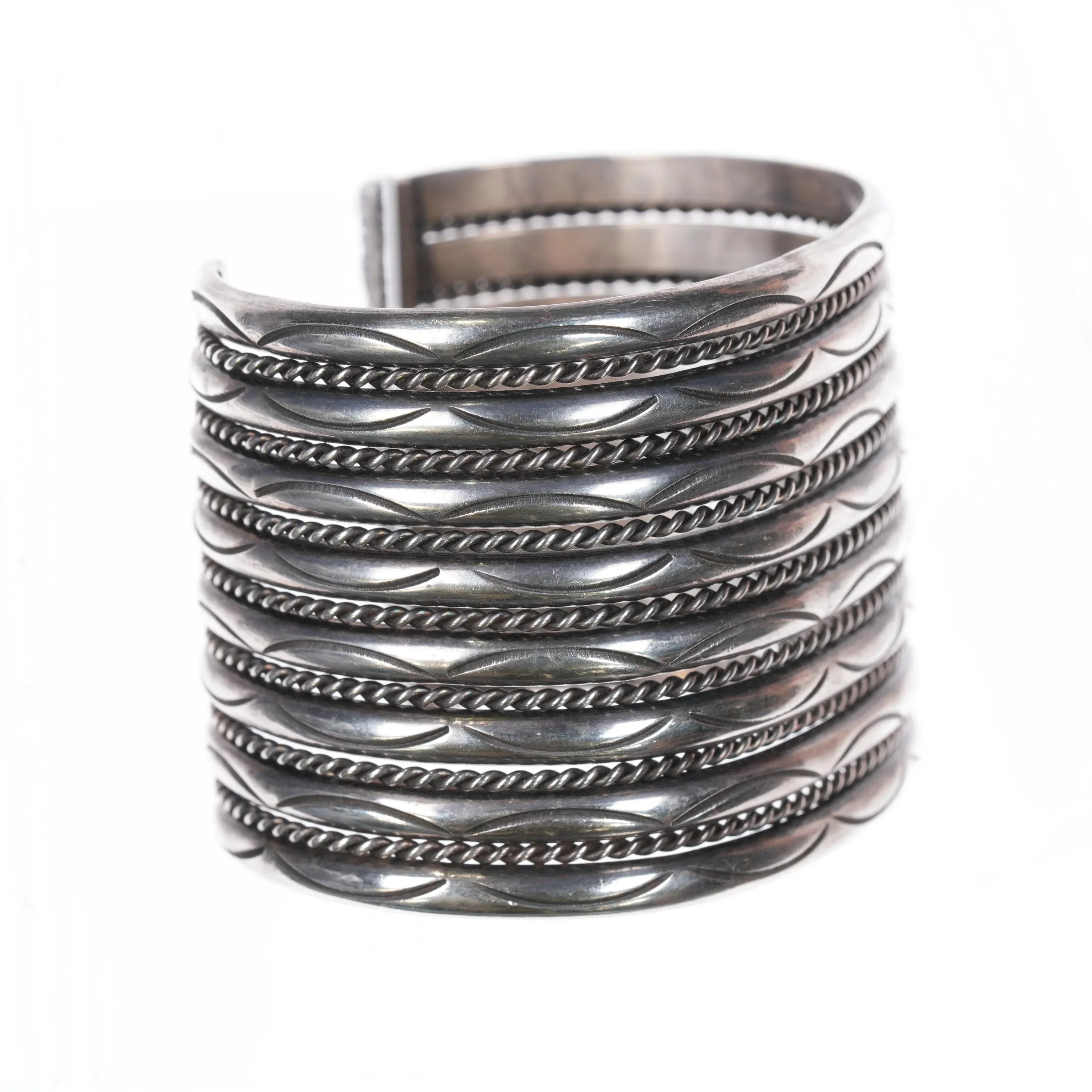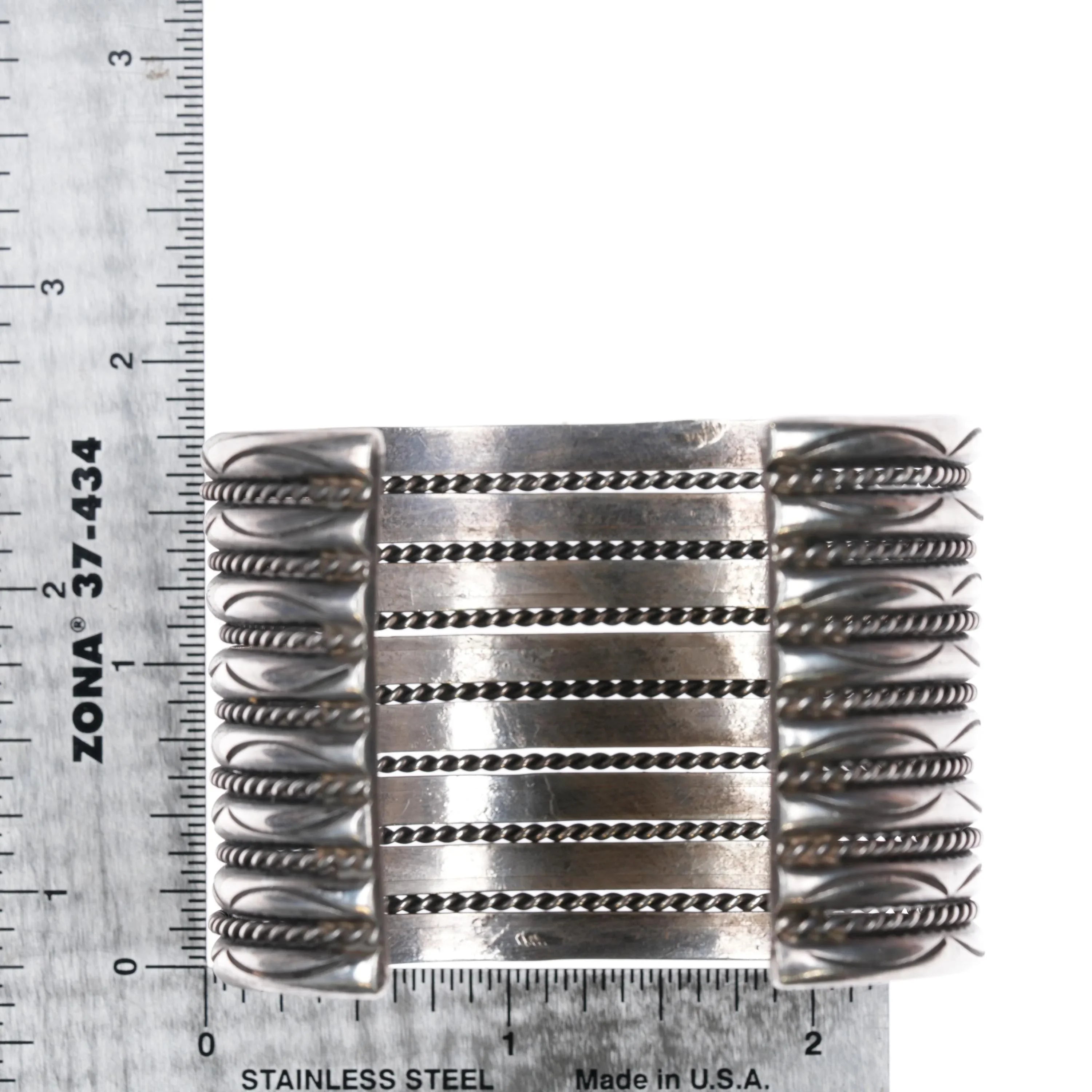 6.25" Vintage Tahe Navajo multi Band sterling silver twisted wire cuff bracelet