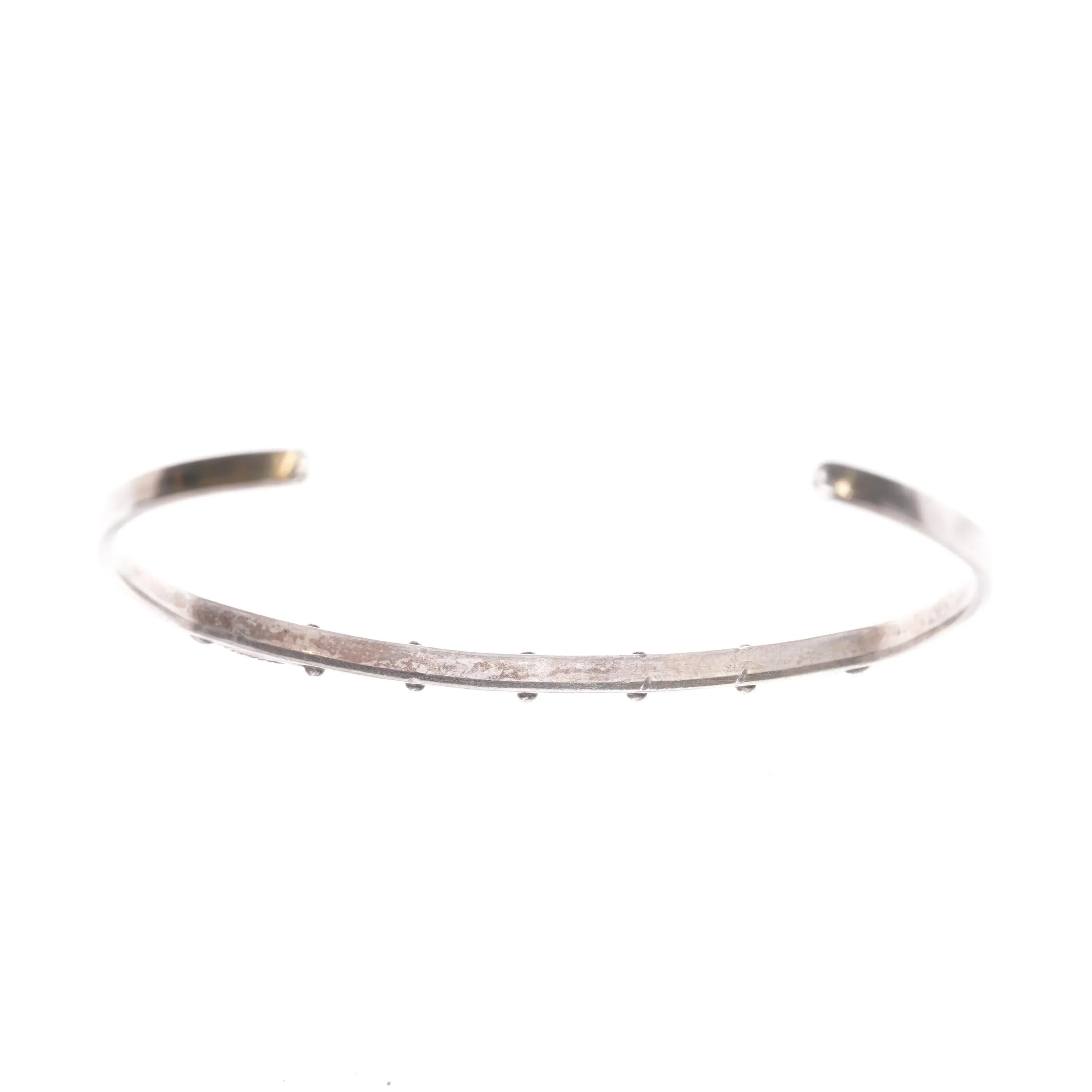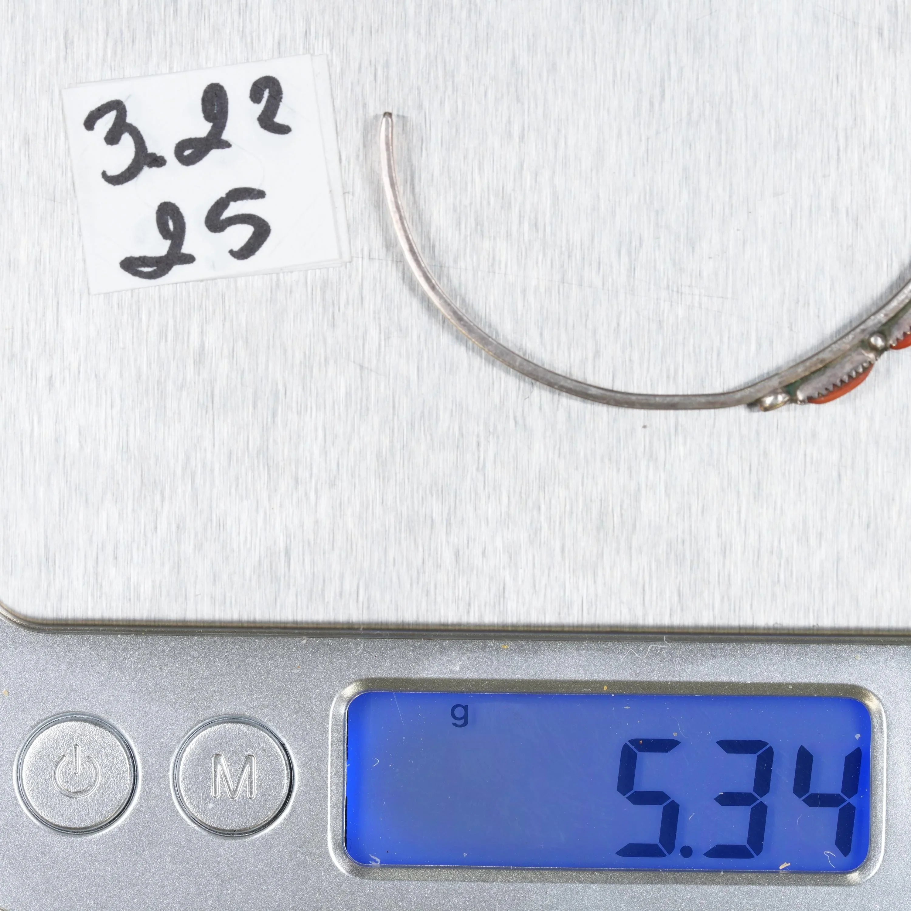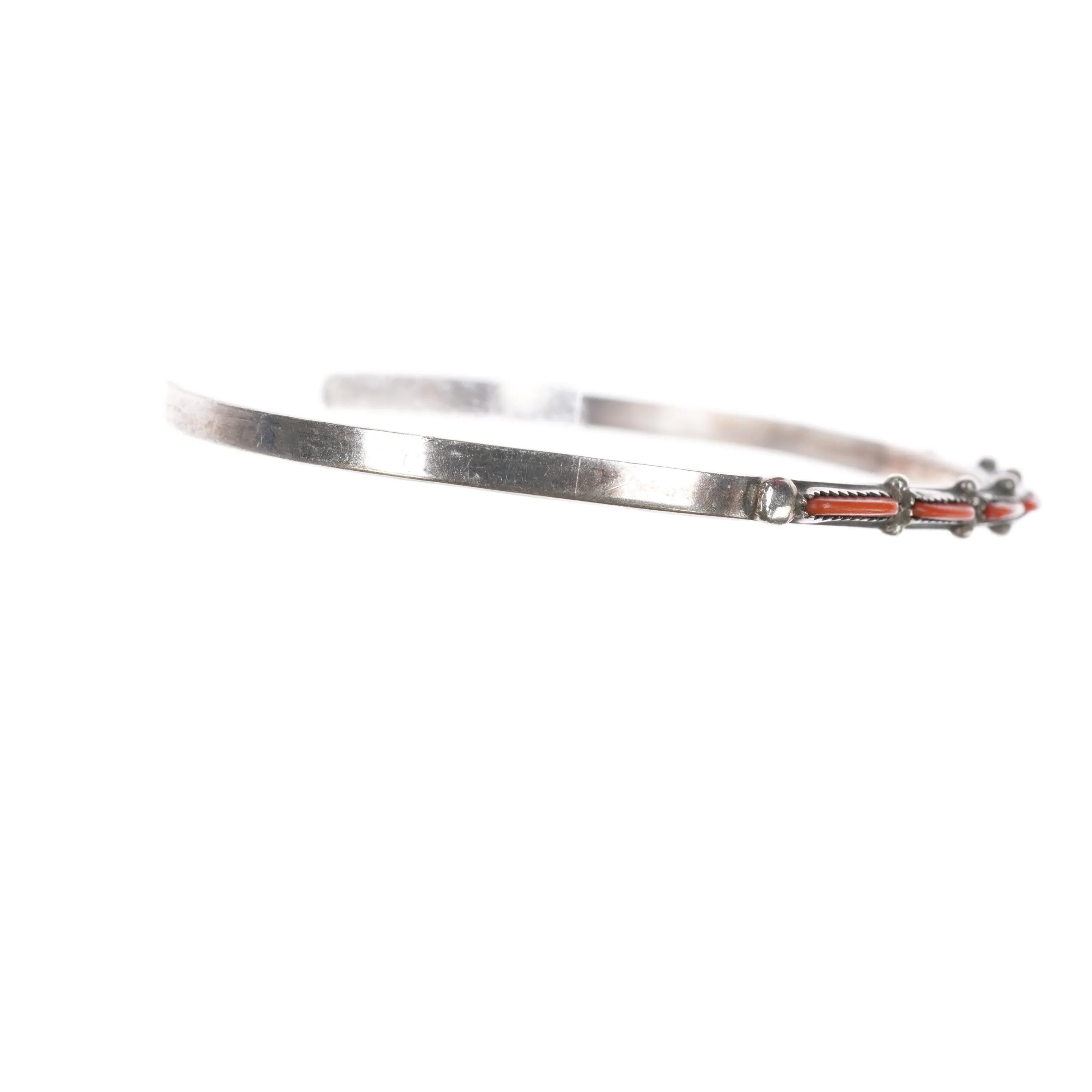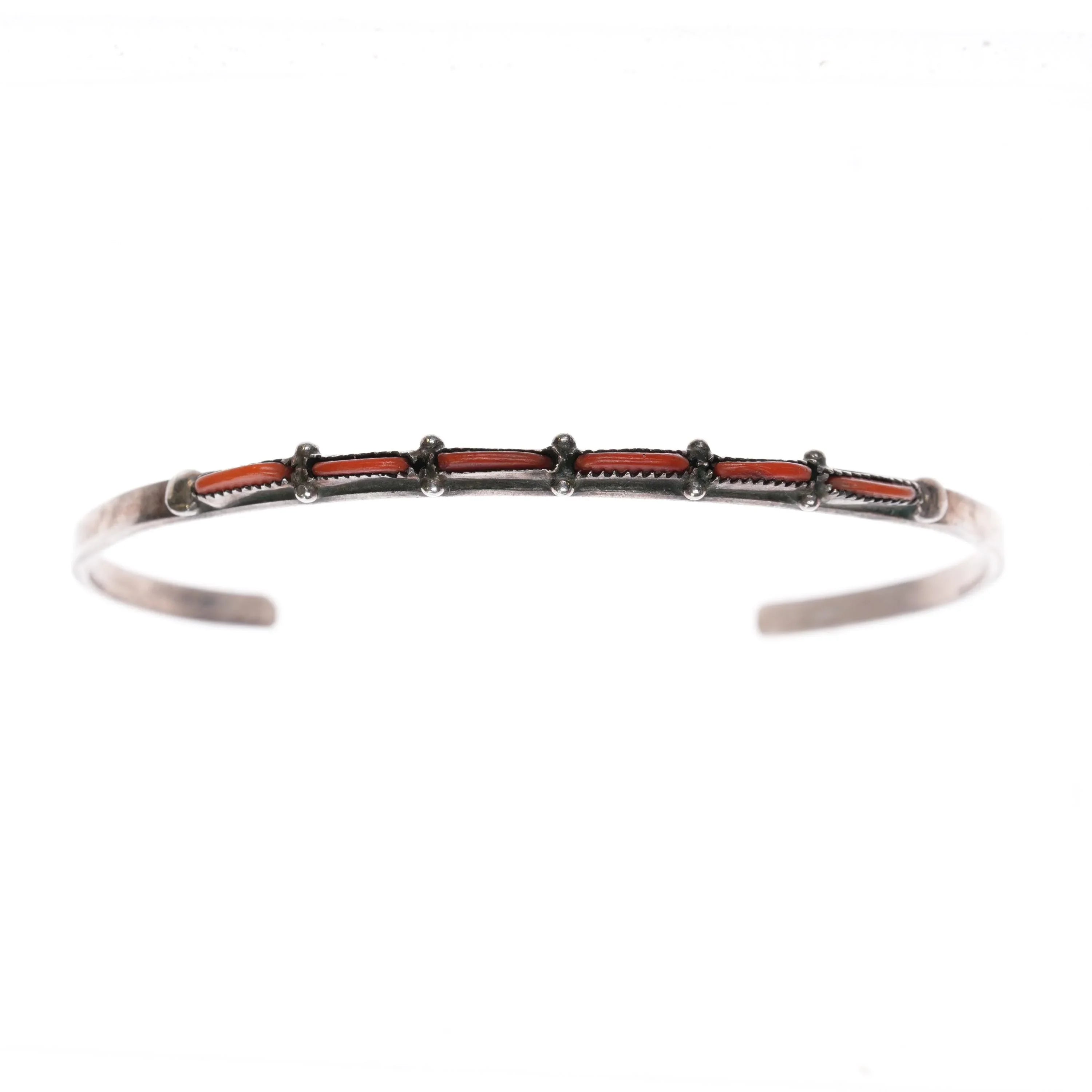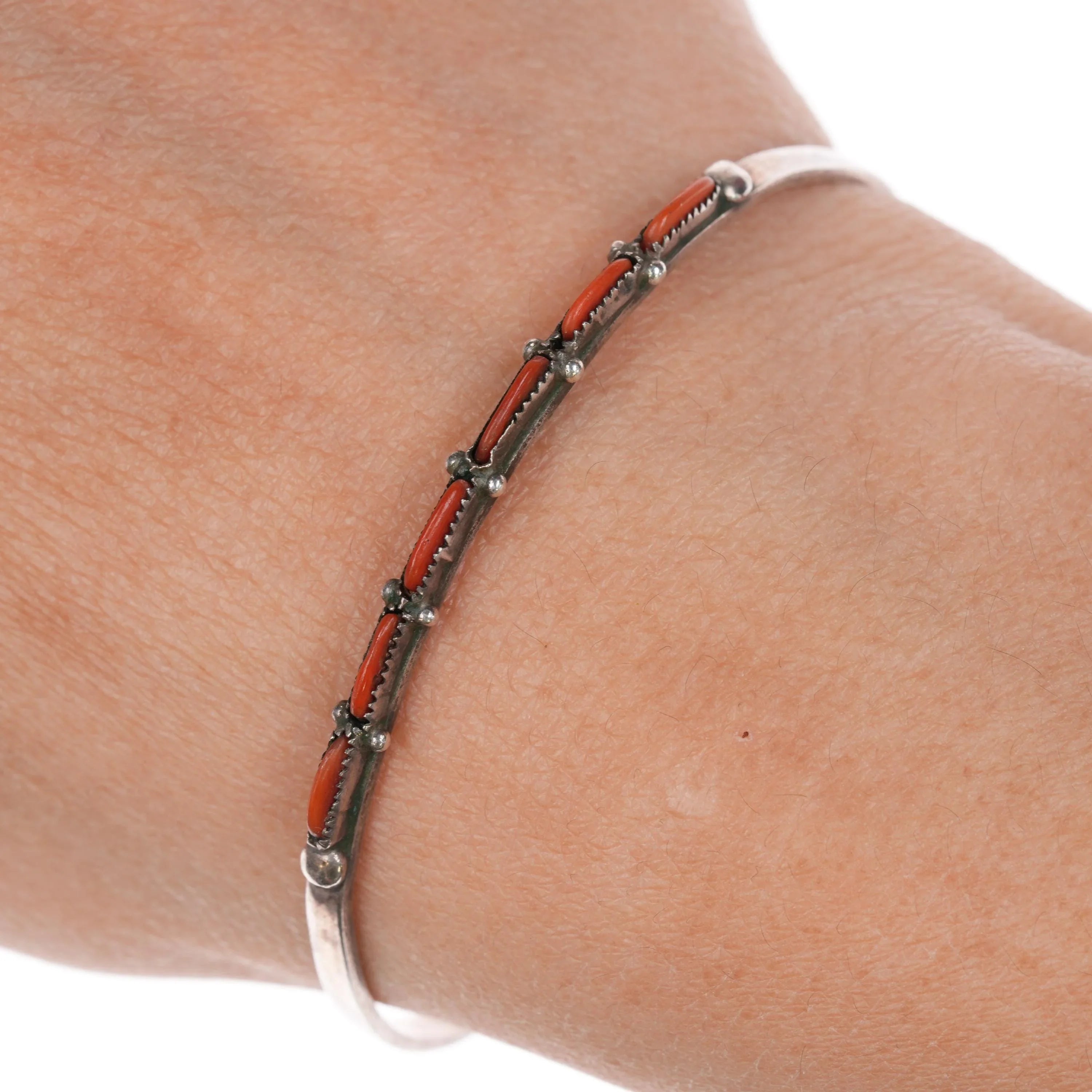 6.25" Vintage Zuni slim silver turquoise needlepoint cuff bracelet. No issues, solid sterling, weight and measurements in pictures. Unmarked piece from the third quarter of the 20th century.