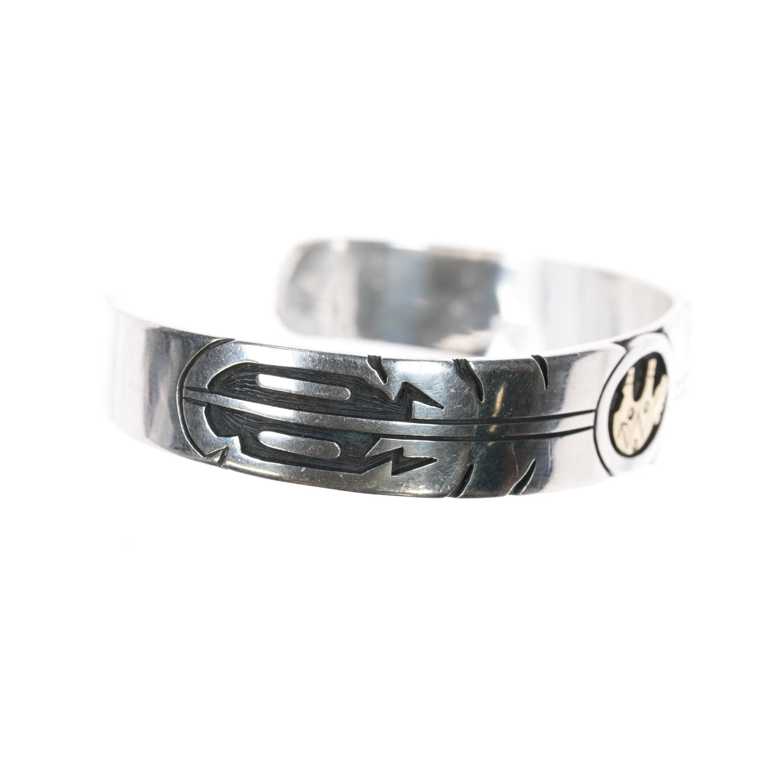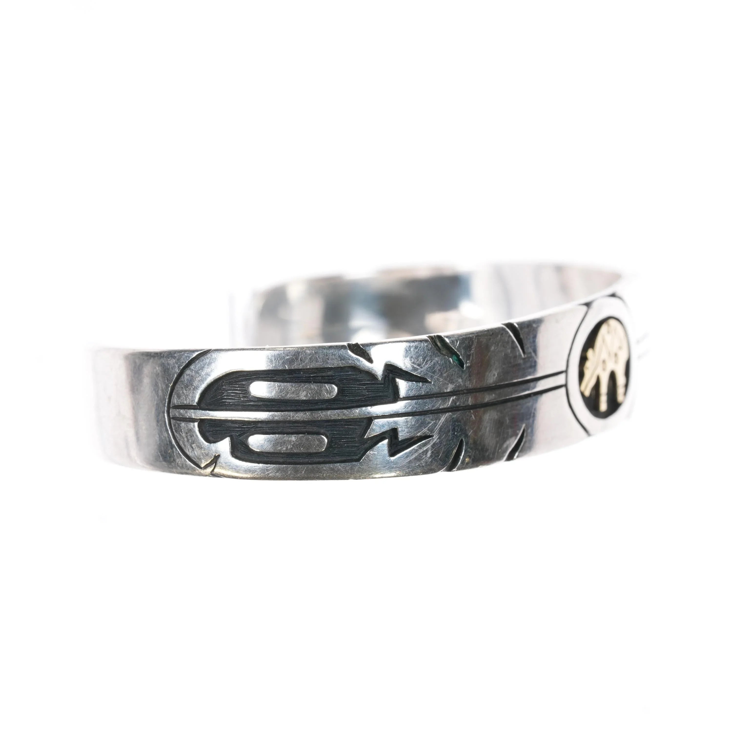 6.375" John Coochyumptewa Hopi 18k/ Sterling bear cuff bracelet overlay style