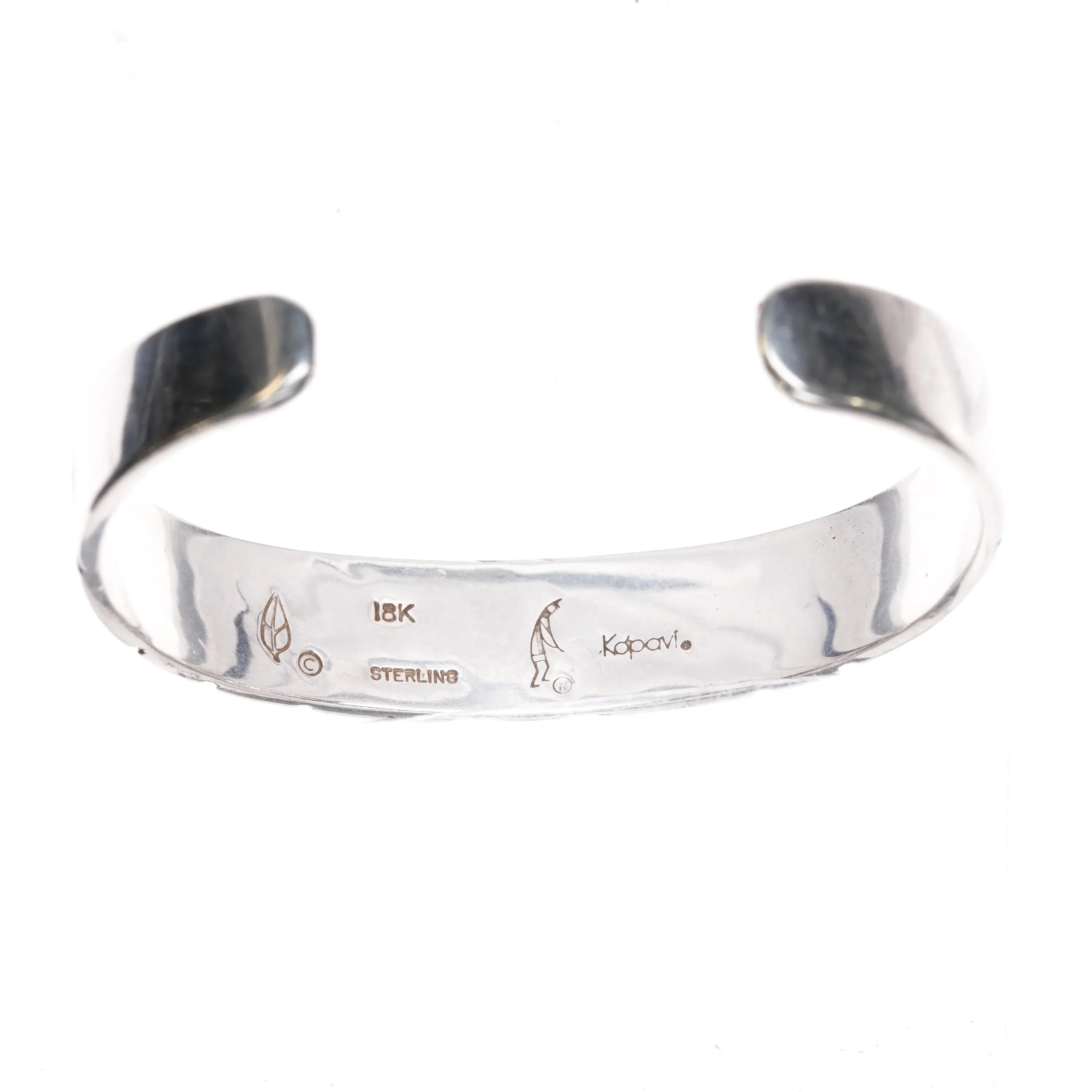 John Coochyumptewa Hopi 18k/ Sterling bear cuff bracelet overlay style. Solid 18k bear, rest sterling silver guaranteed, weight and measurement in pics. Lightly worn contemporary cuff bracelet