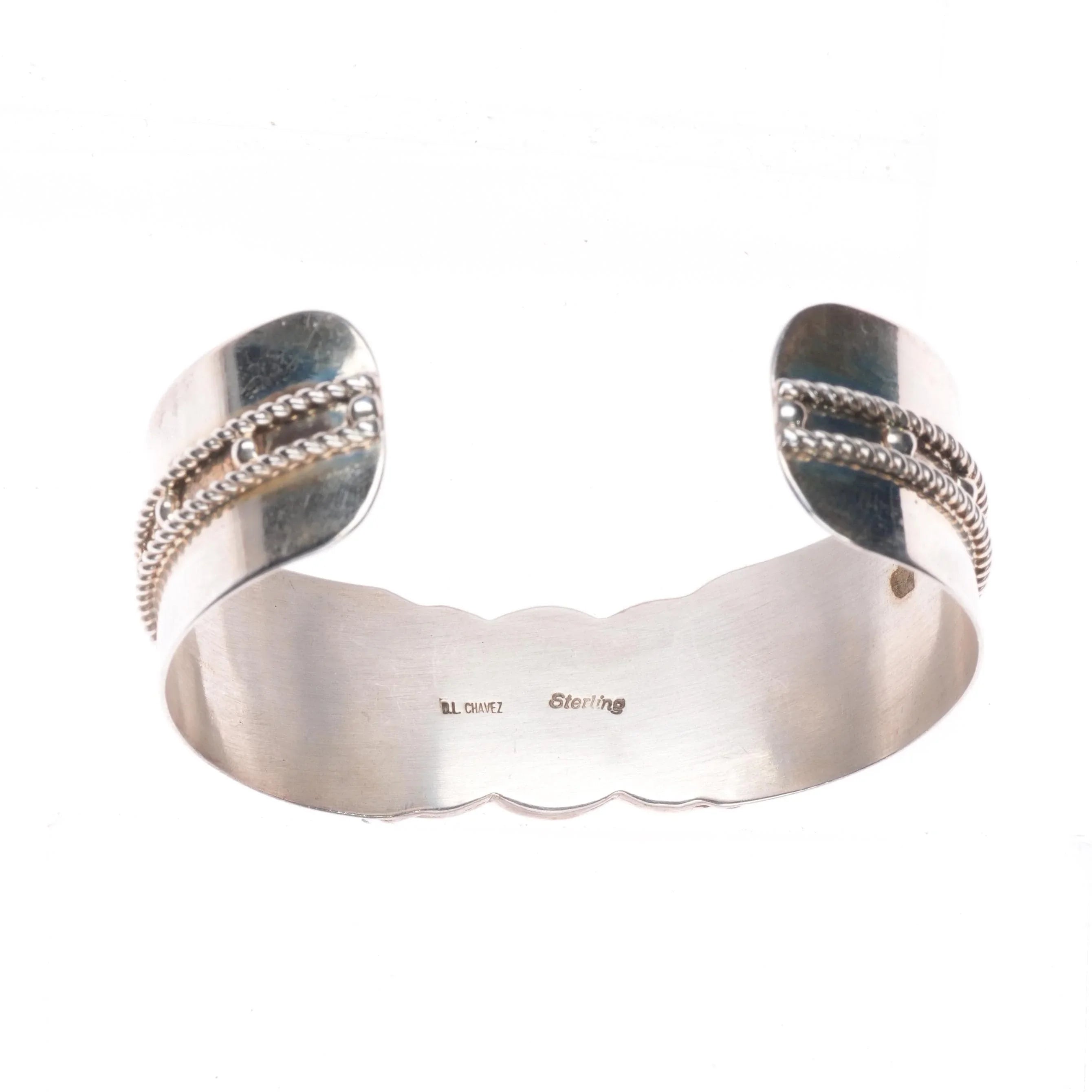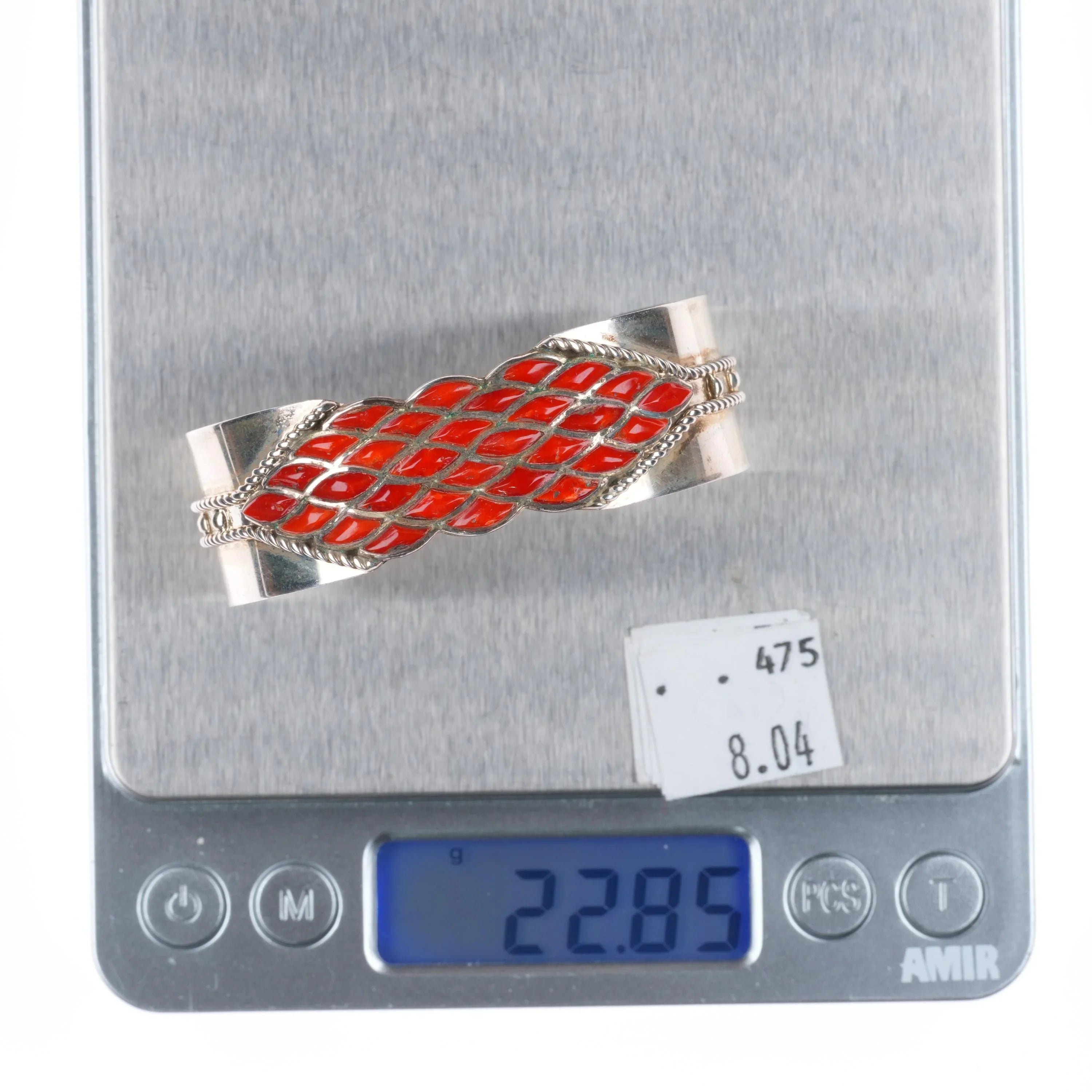 6.3" Derrick-Lorelia Chavez Zuni sterling silver coral raise inlay cuff bracelet. Tested and guaranteed solid sterling silver with weight and measurements in pictures. Circa last quarter of the 20th century with appropriate wear.