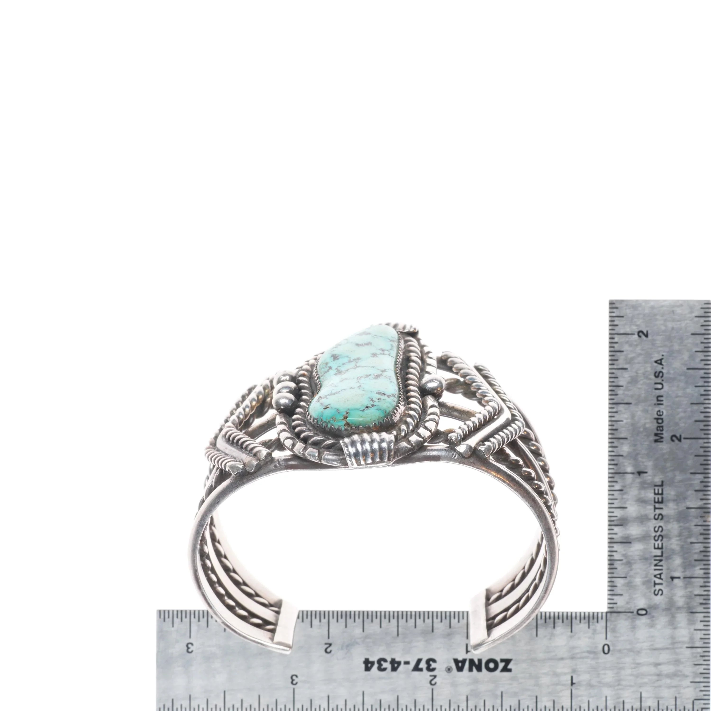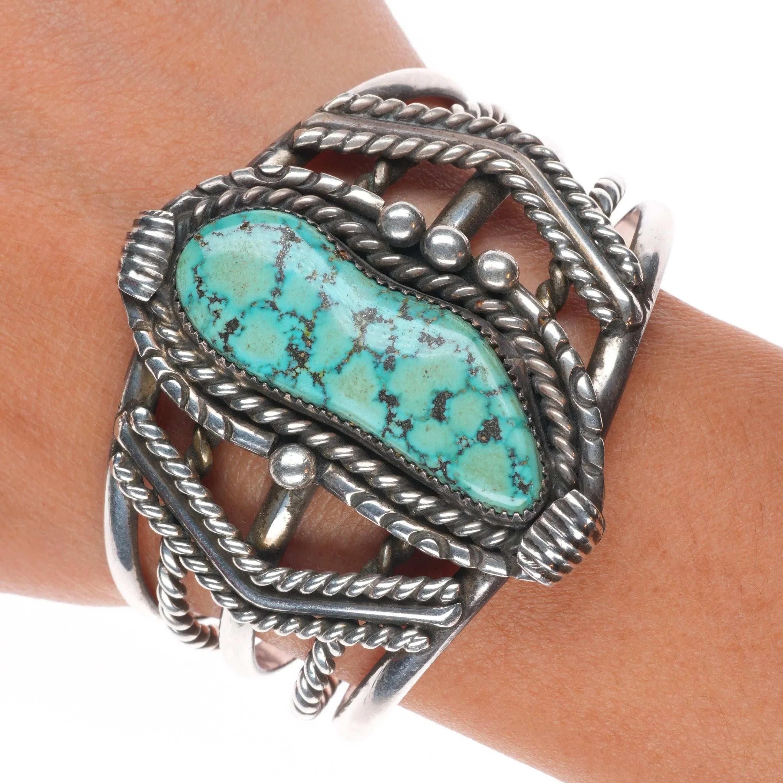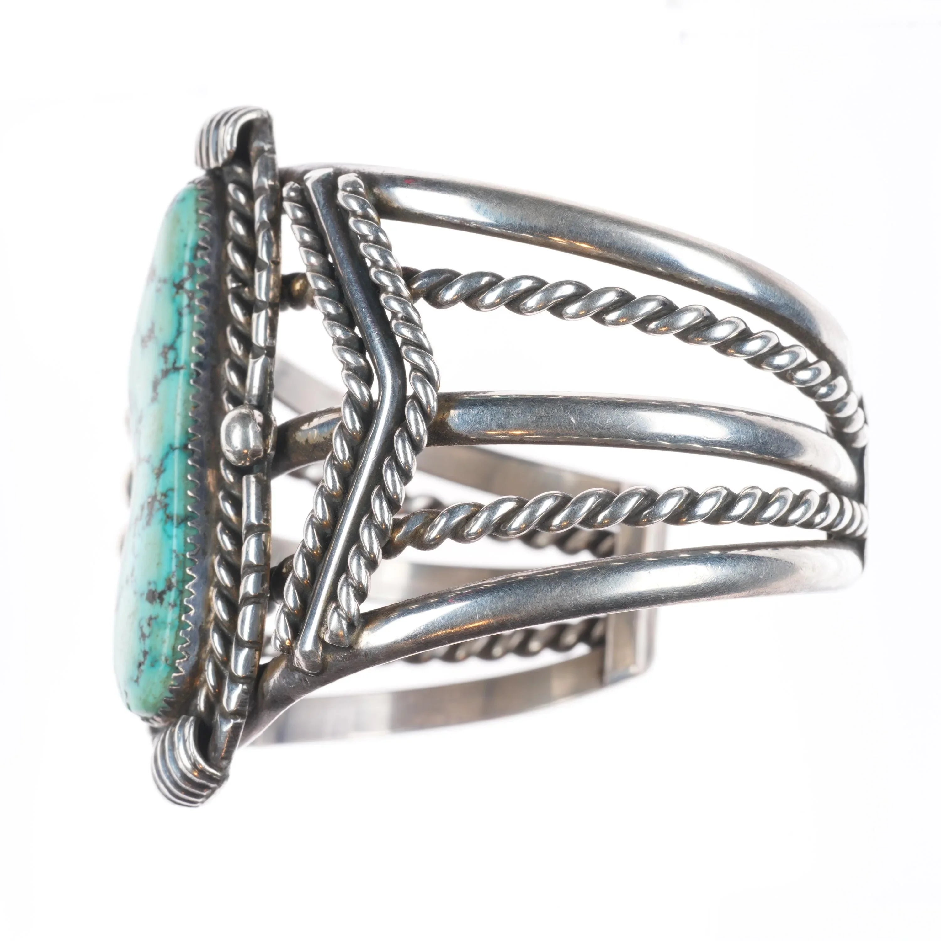 6.4" Mary Matt Navajo sterling silver spiderweb turquoise cuff bracelet