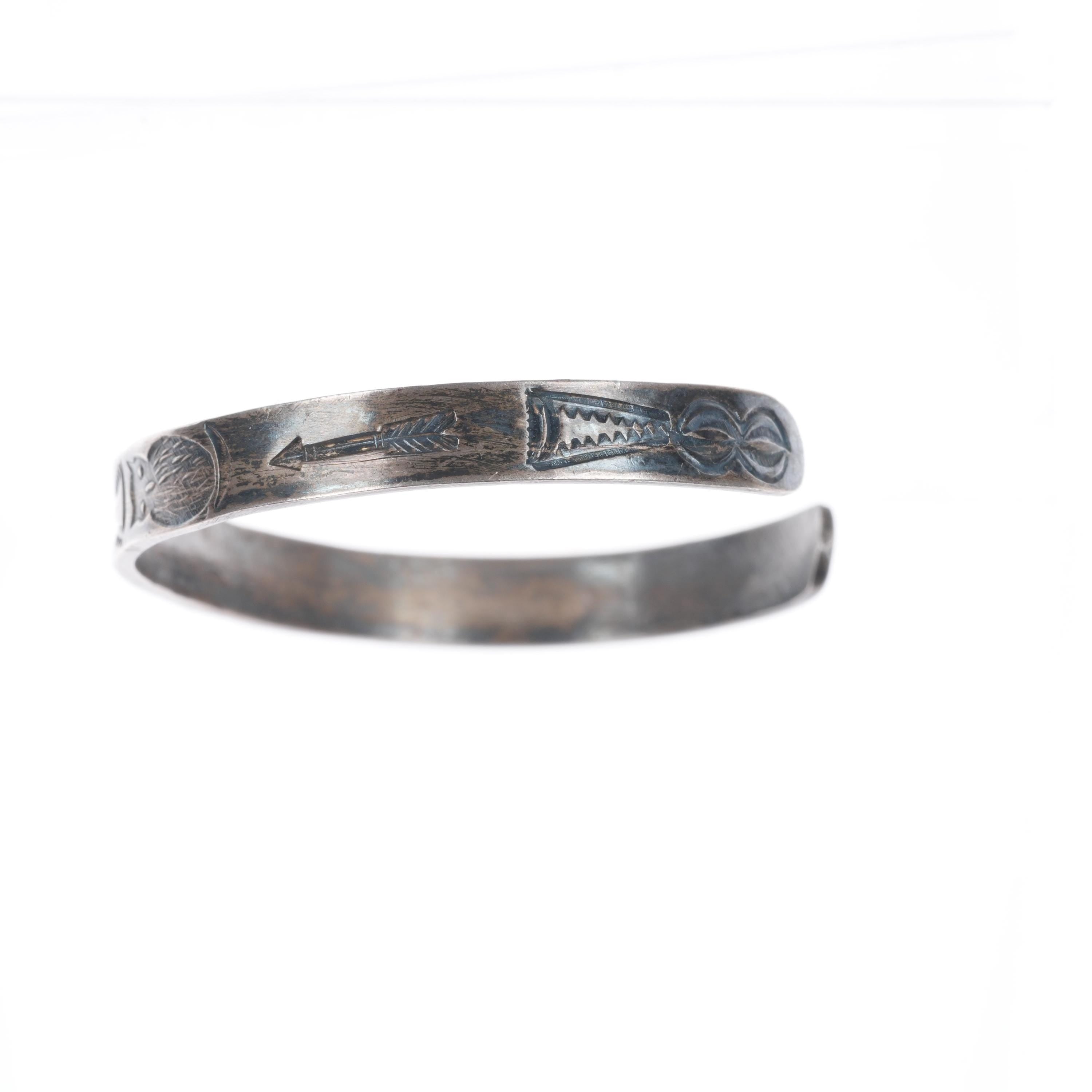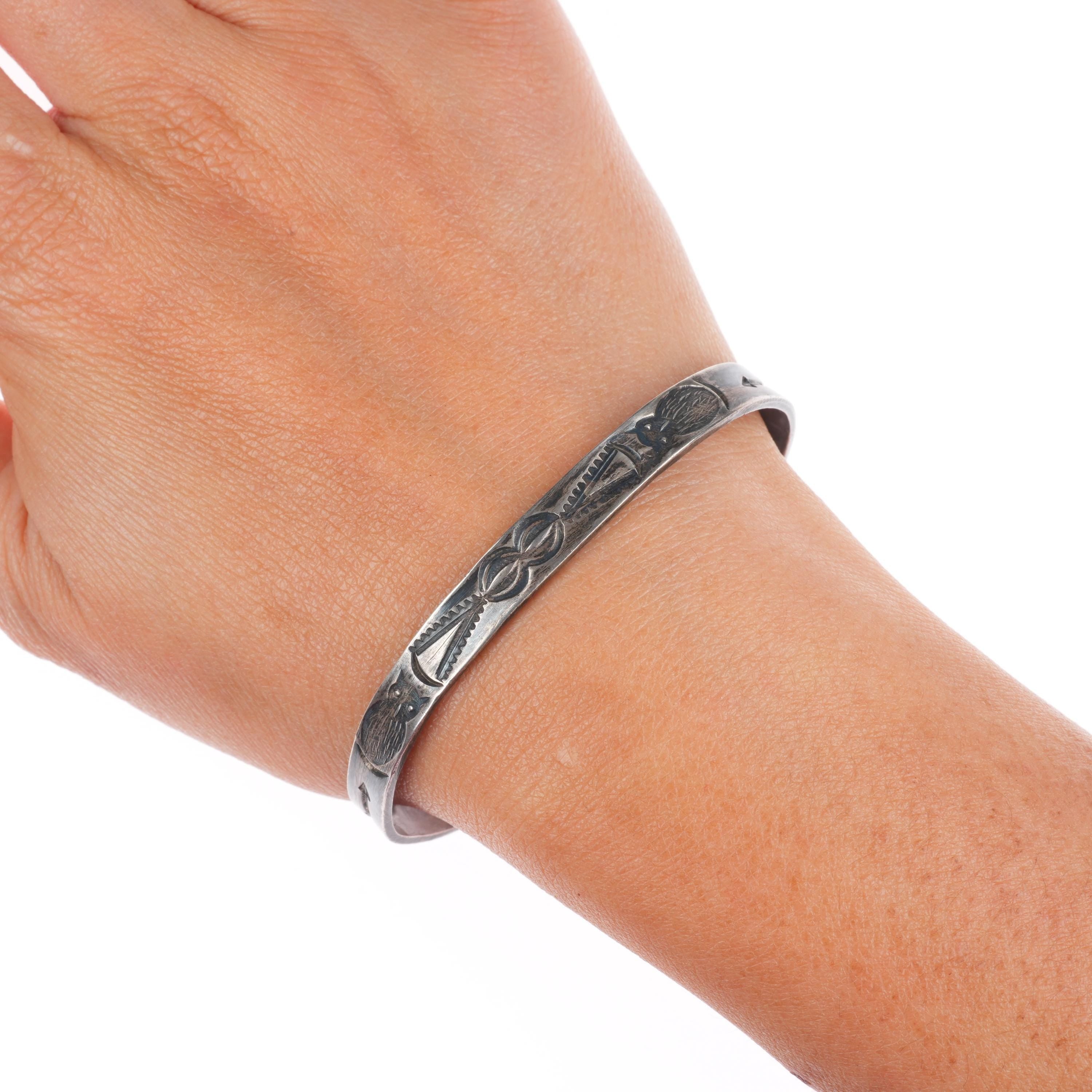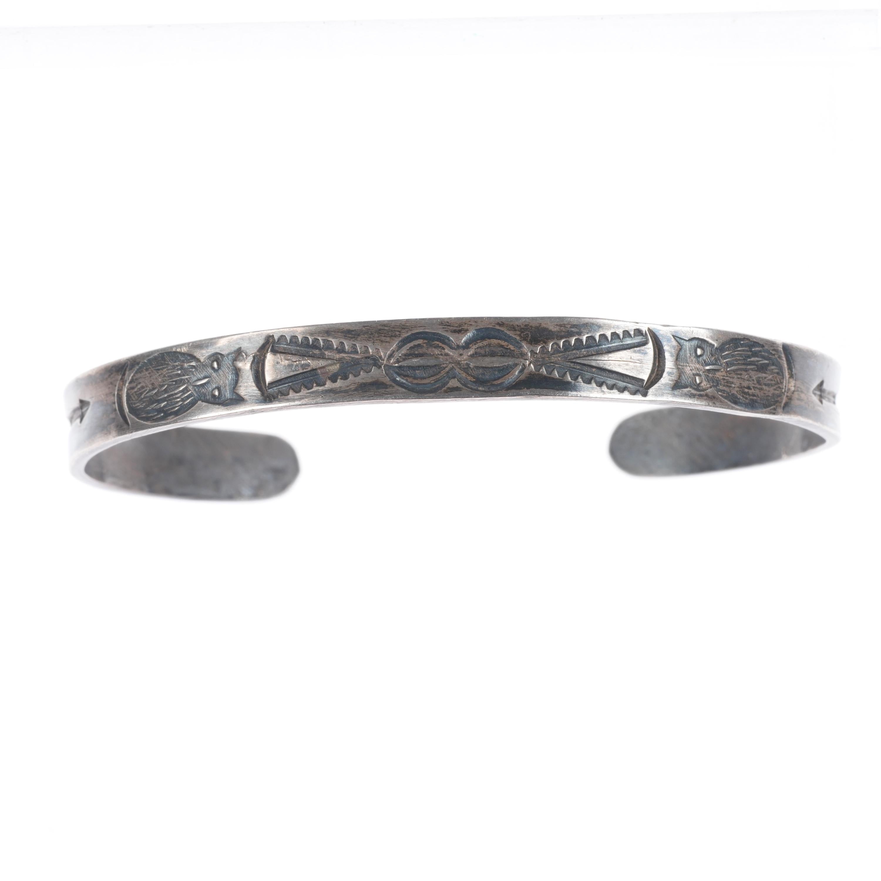 6.5" 1930‘s Vintage Navajo stamped owls ingot silver slim stacker cuff bracelet. Tested and guaranteed solid sterling silver with weight and measurements in pictures. Circa second quarter of the 20th century with age appropriate wear..