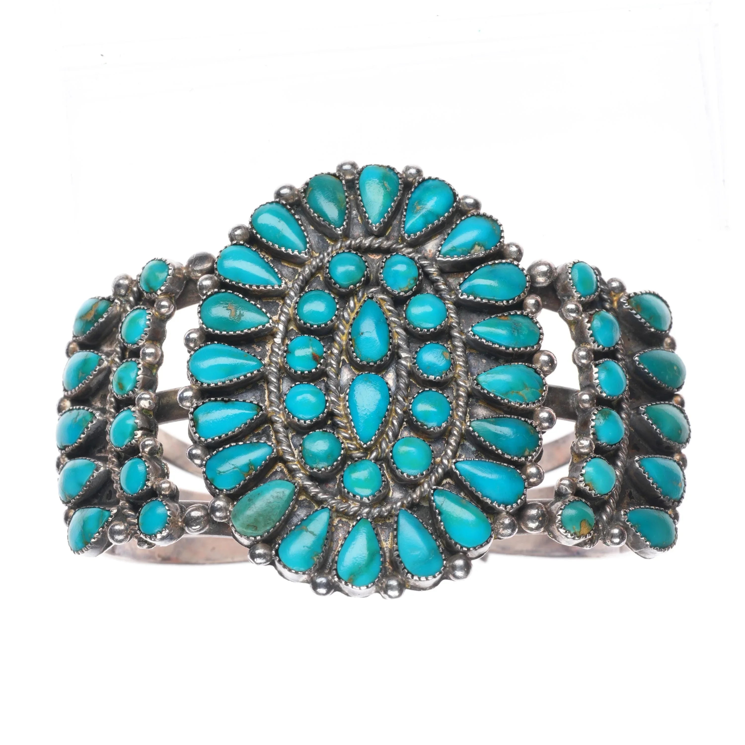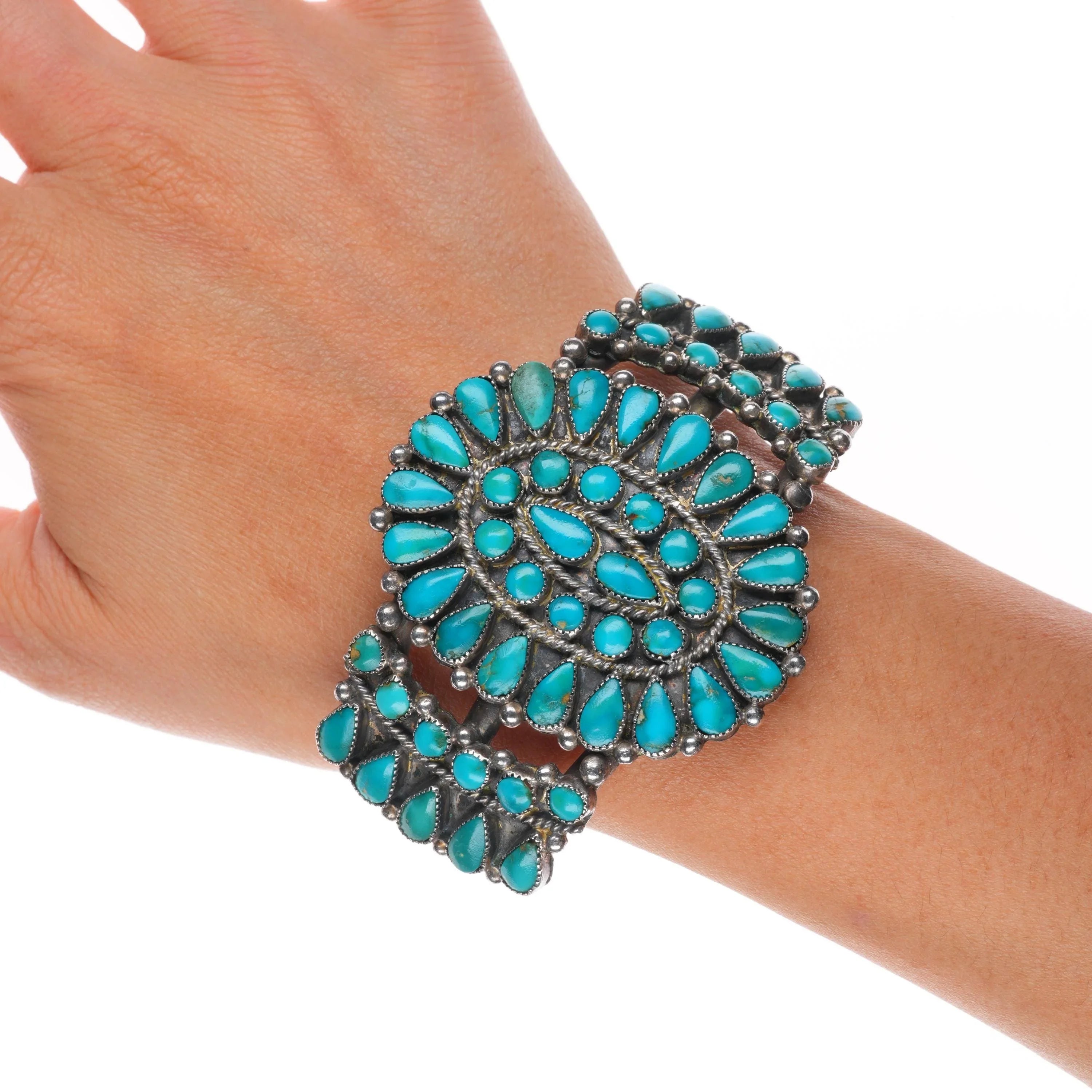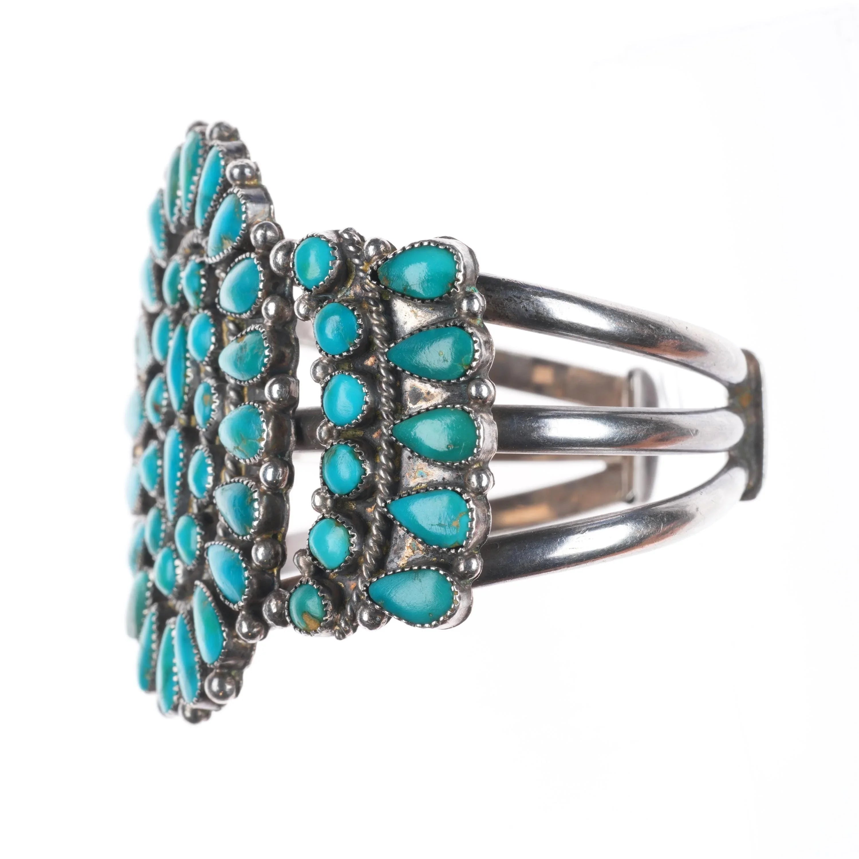 6.5" 50's-60's Zuni Blue Gem turquoise cluster cuff bracelet sterling silver