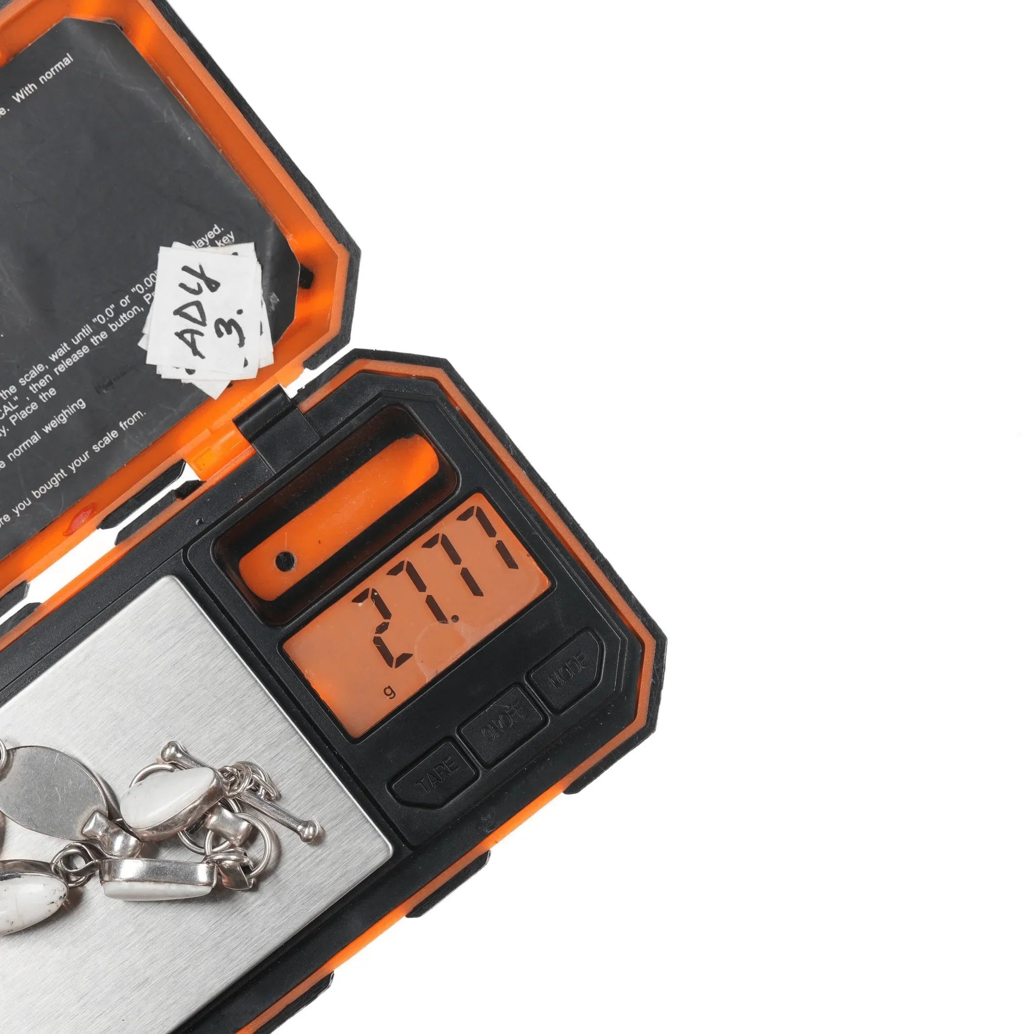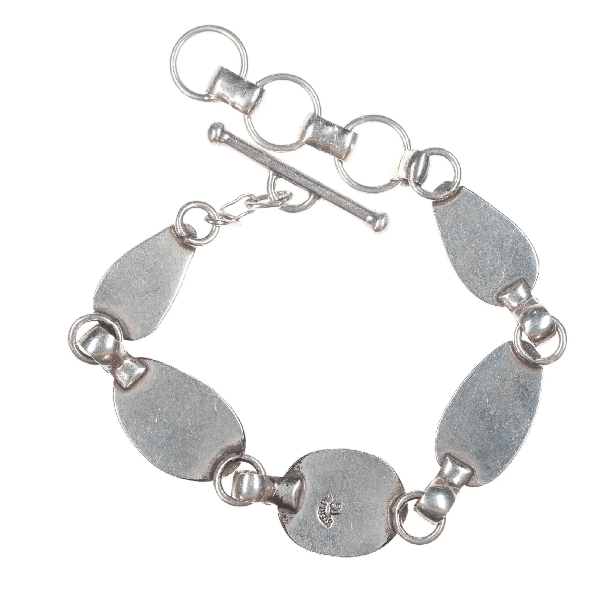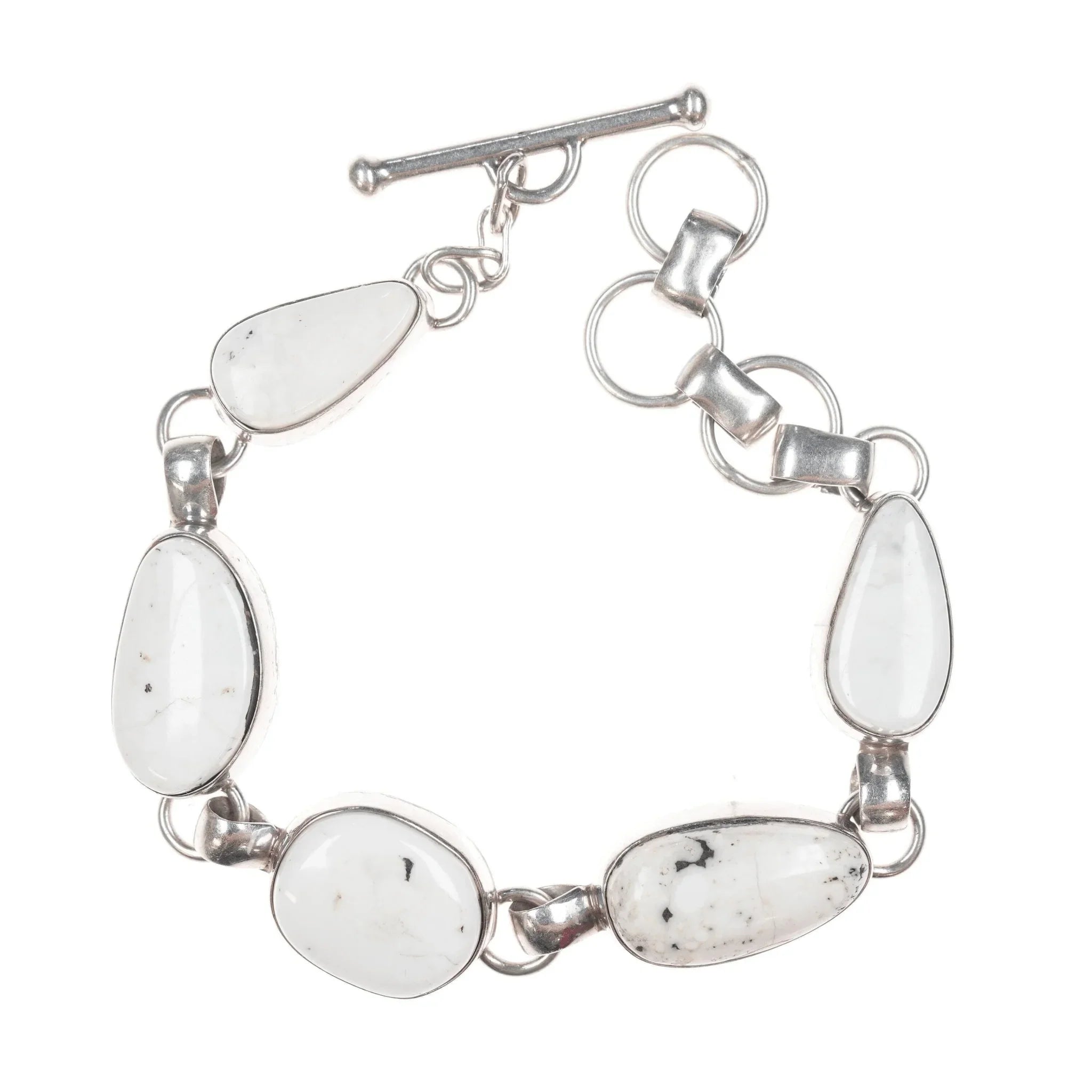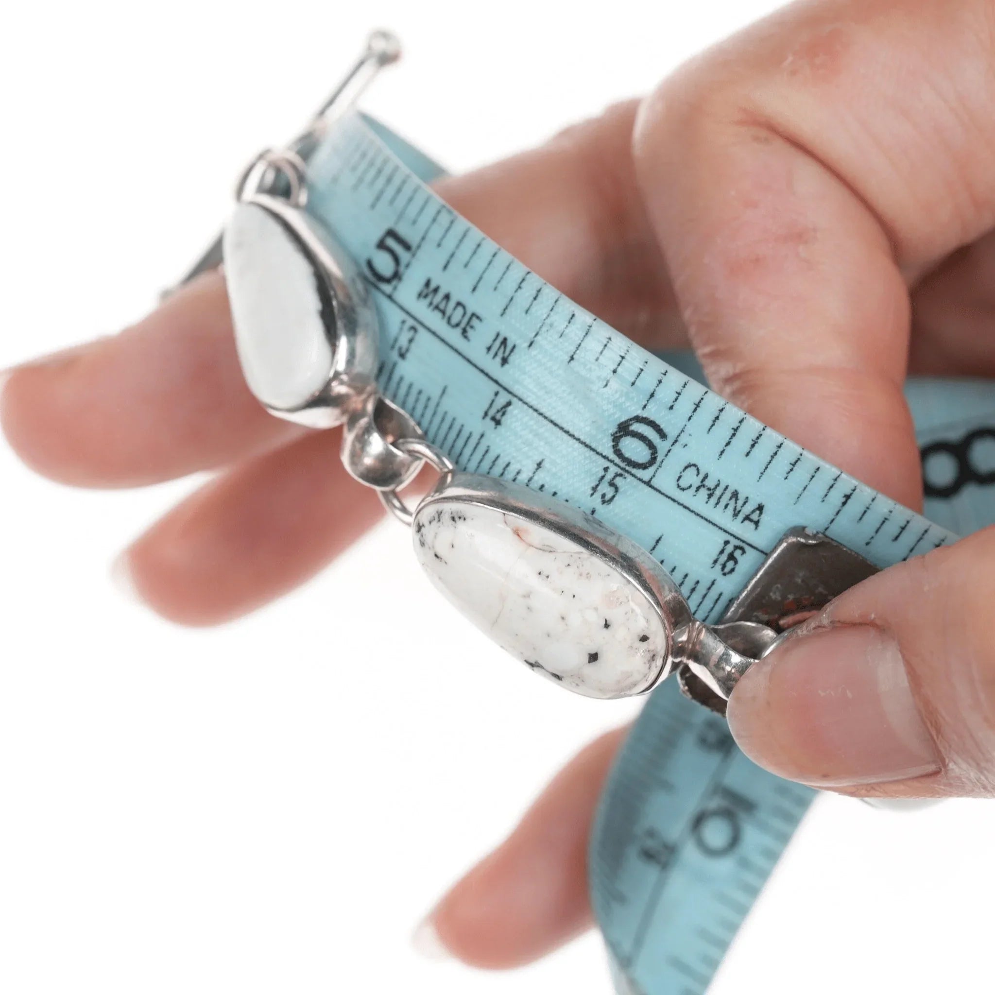 6.5"-8" TG Sterling White Buffalo link bracelet<br><br>Marked or unmarked as shown in pics, weight and other measurements in pics. Sorry but my jewelry is stored in a secure location and cannot be accessed for more pictures,<br>videos, or measurements until sold. If you look at pictures/description your<br>question should be answered. Thank you so much for your time and consideration! If you would like to chat, that would be great, but lets chat about something that isn't answered in this listing that we put so much effort into already :)<br><br>All precious metals are tested and guaranteed. A Native American jewelry piece referred to as "silver" or "ingot" is guaranteed to be at least 90% silver. I rarely use the word "sterling" when referring to older Native American silver or really any older silver jewelry as silver contents vary and "sterling" is 92.5% silver. No older jewelry is going to be exactly 92.5% silver, some a little over, some a little under. It wasn't an exact thing with handmade jewelry. I've seen thousands of pieces xrf'd to prove this. Bracelets are photographed on a 6" women's wrist.<br><br>anderas