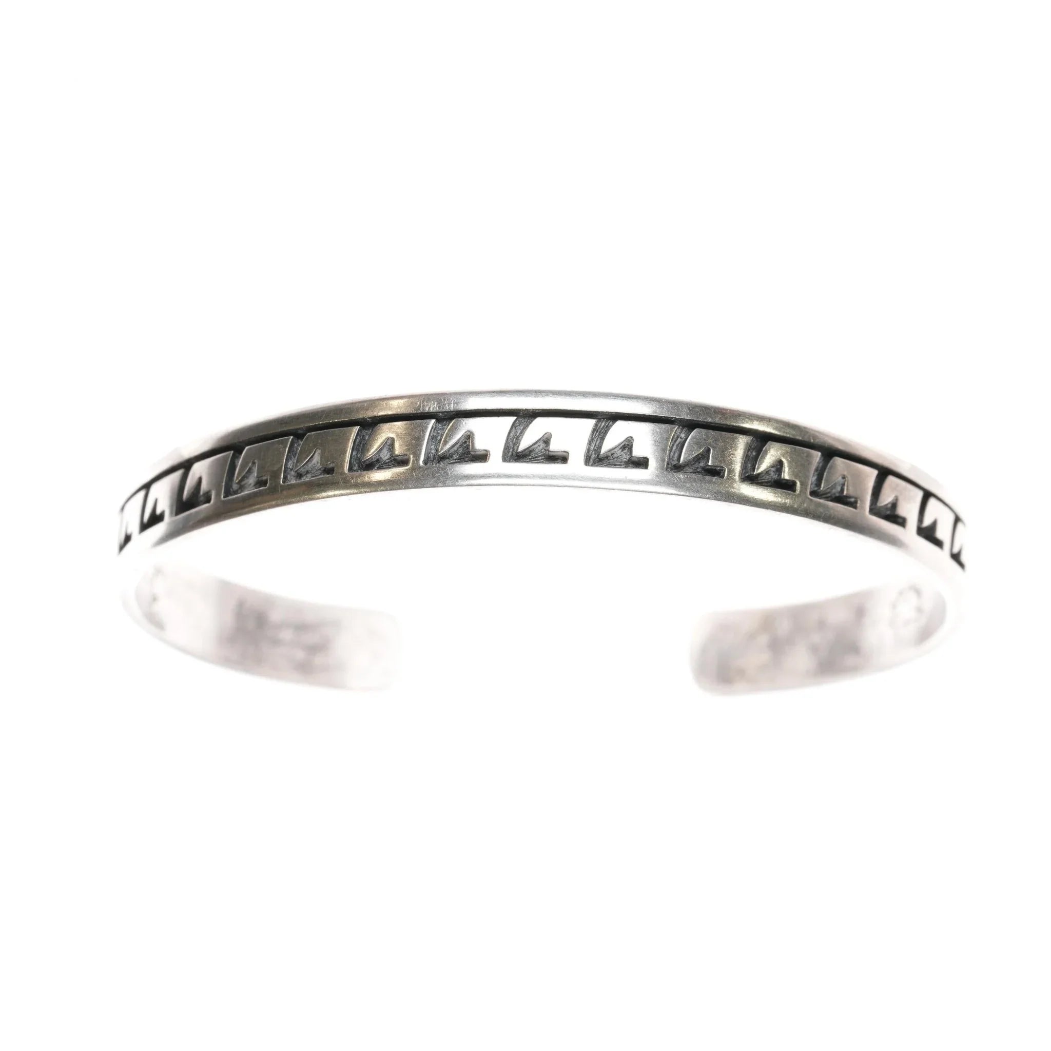 6.5" Arthur Allen Lomayestewa Hopi slim sterling cuff bracelet overlay style. Weight and measurements in pics.
