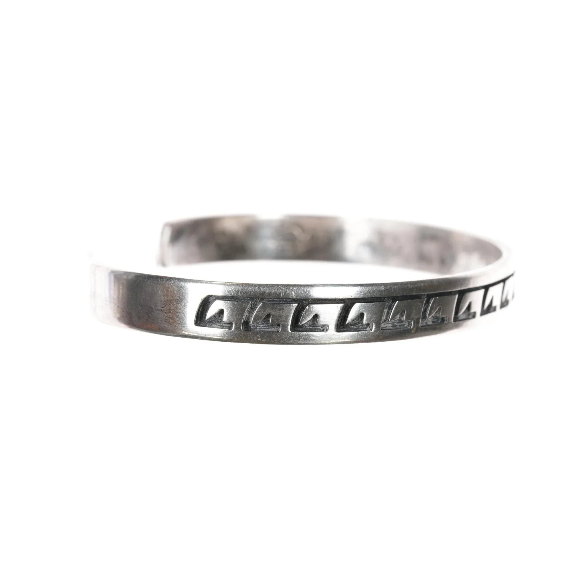 Marked or unmarked as shown in pics, weight<br>and other measurements in pics. Sorry but my jewelry is stored in a secure<br>location and cannot be accessed for more pictures, videos, or measurements until<br>sold. If you look at pictures/description your question should be answered.<br>Thank you so much for your time and consideration!<br><br>All precious metals are tested and guaranteed, any Native American jewelry<br>referred to as Silver or Sterling is guaranteed to be a minimum of 90% (coin)<br>silver and possibly higher content. Anything marked is guaranteed to be what<br>it‘s marked, most bracelets are photographed on a 6" wrist (non hairy), rings<br>photographed on the appropriate sized finger when possible. With bracelets if<br>the measurement is not given in the description then inside circumference is<br>shown where the metal meets the number on the the cloth tape measure.