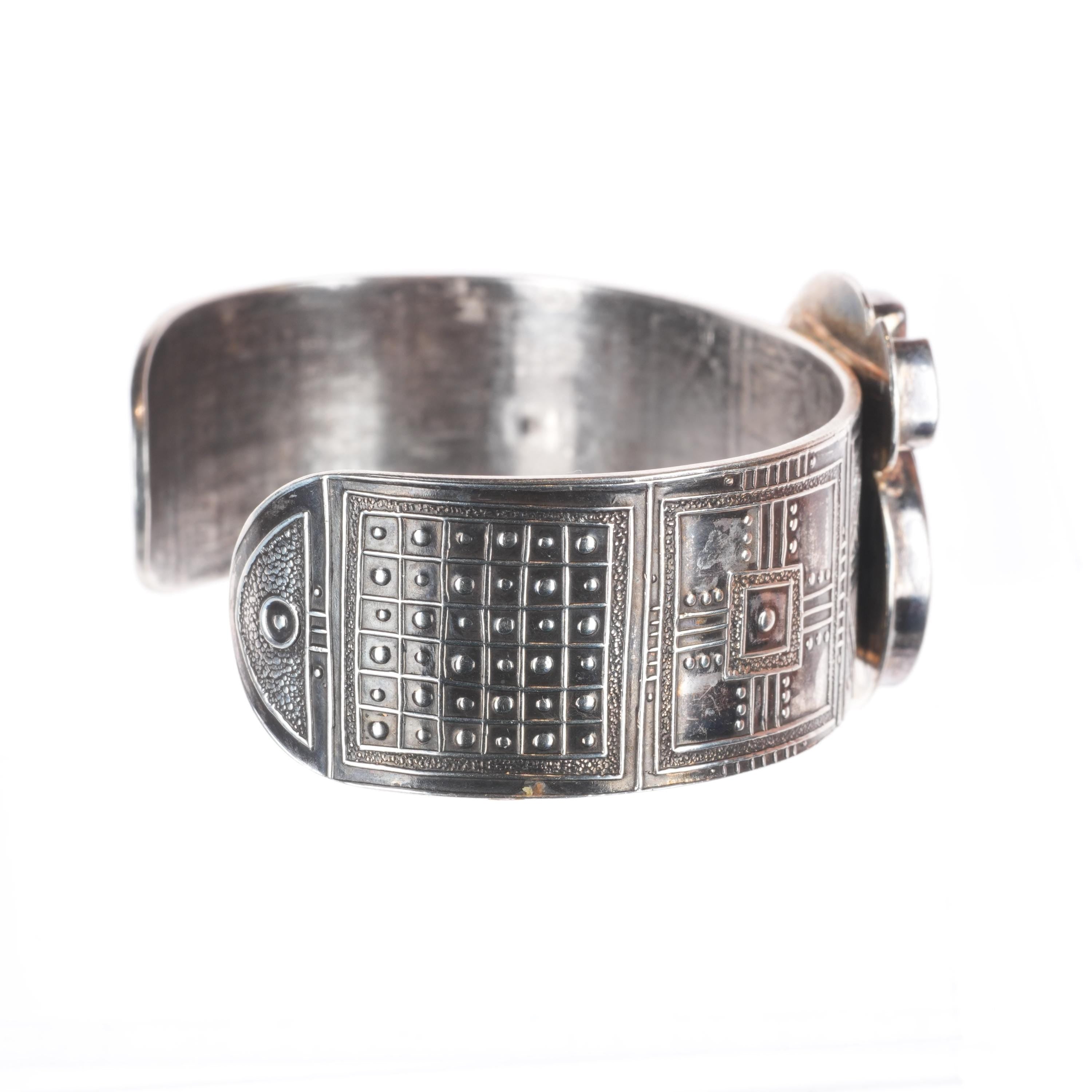 6.5" Retro Tabra Sterling silver Ammonite fossil Garnet cuff bracelet. Tested and guaranteed solid sterling silver with weight and measurements in pictures. Good condition.