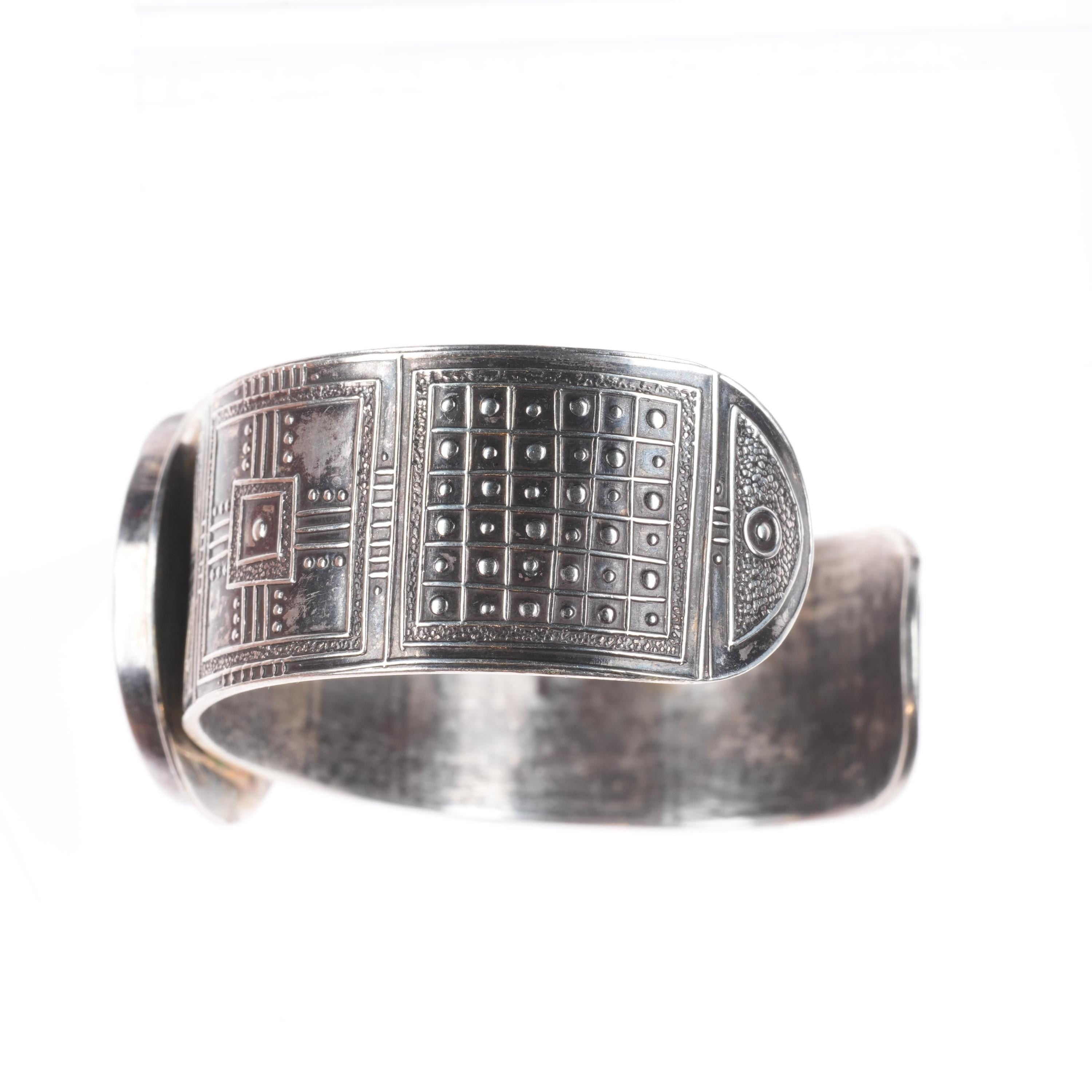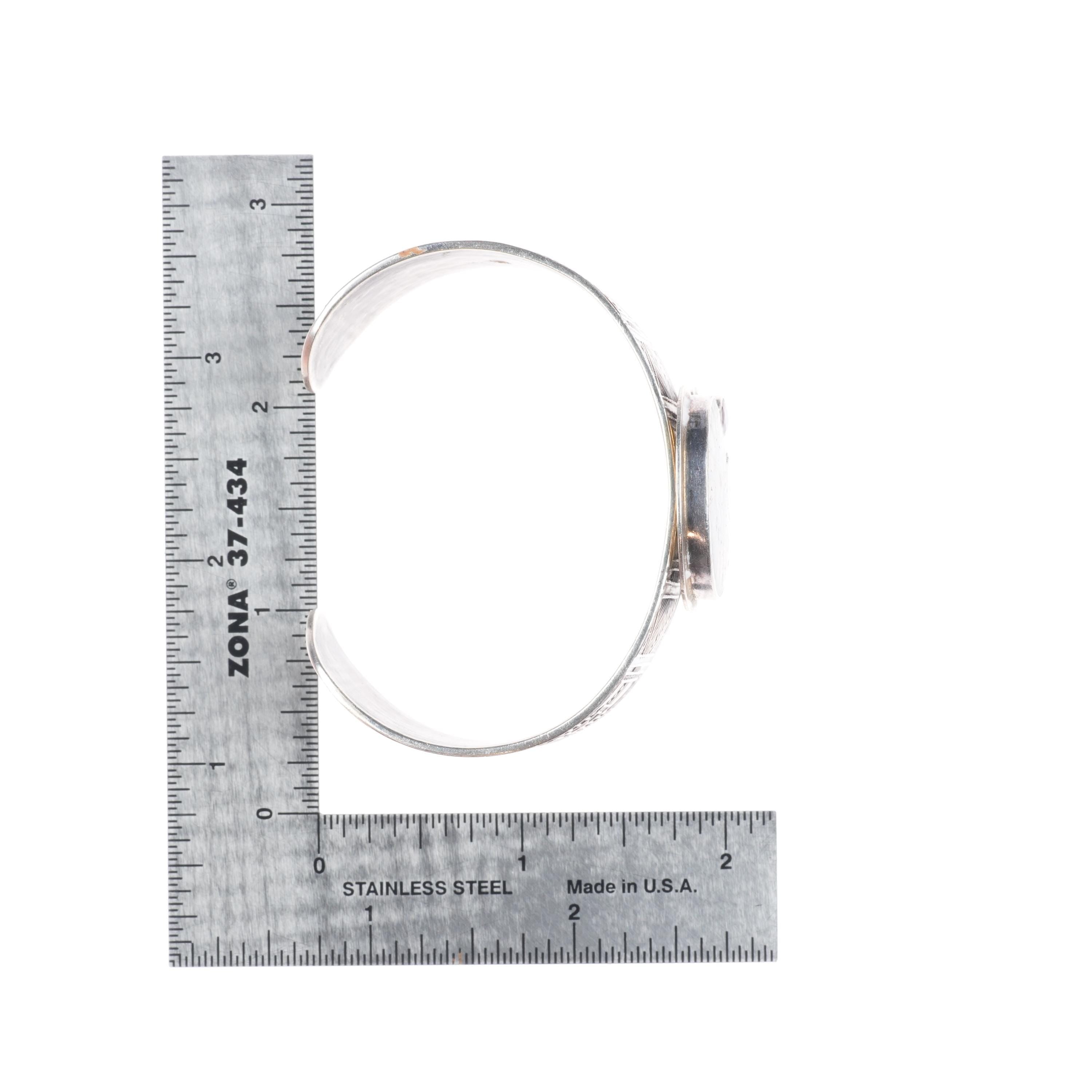 6.5" Retro Tabra Sterling silver Ammonite fossil Garnet cuff bracelet