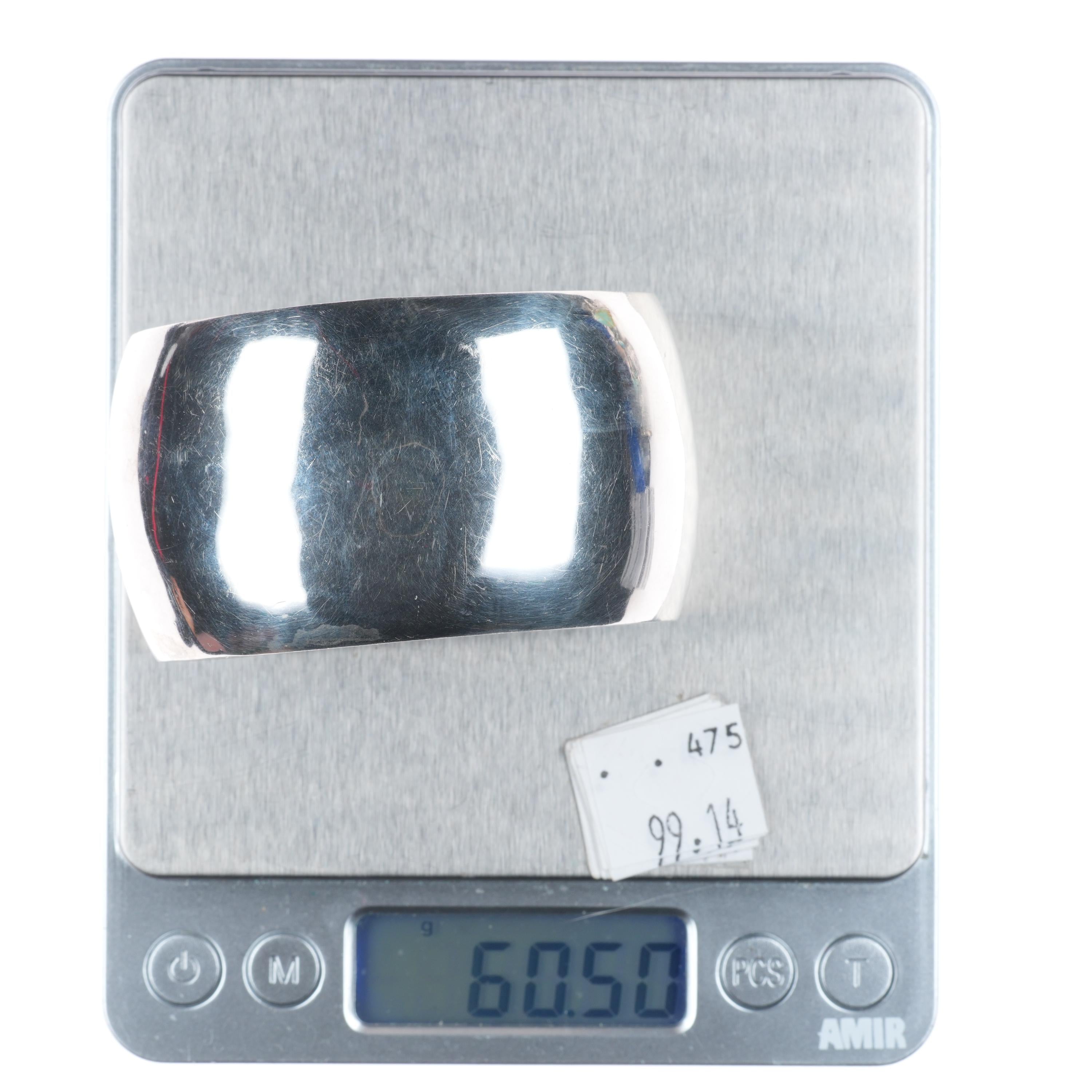 6.5" Sarah Cly Navajo wide band sterling silver domed cuff bracelet. Tested and guaranteed solid sterling silver with weight and measurements in pictures. Circa last quarter of the 20th century.
