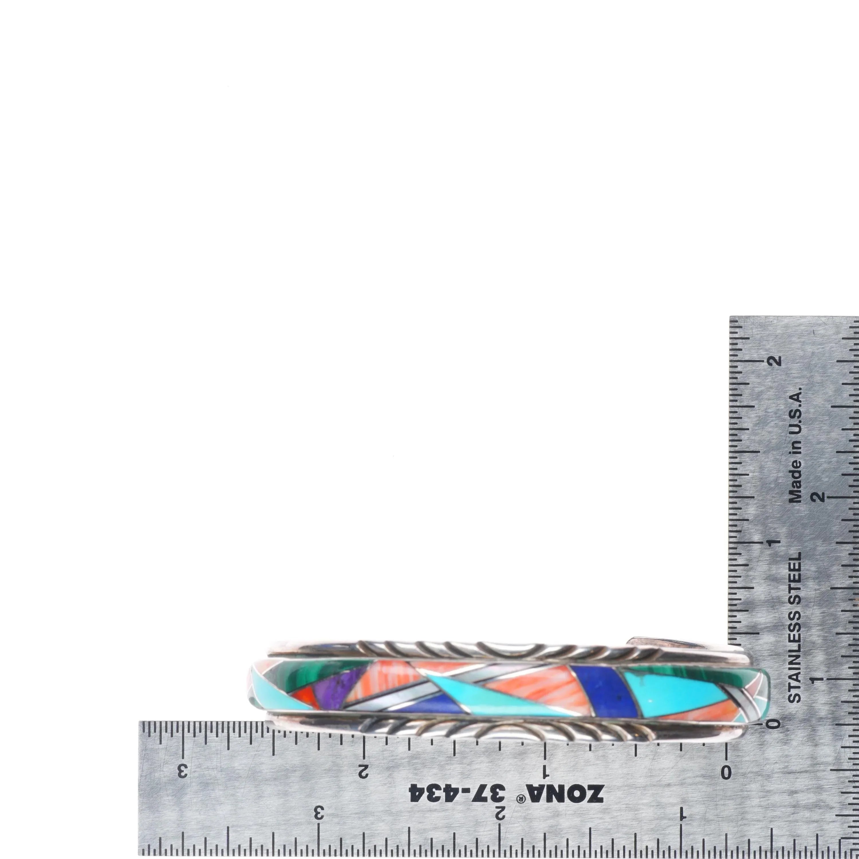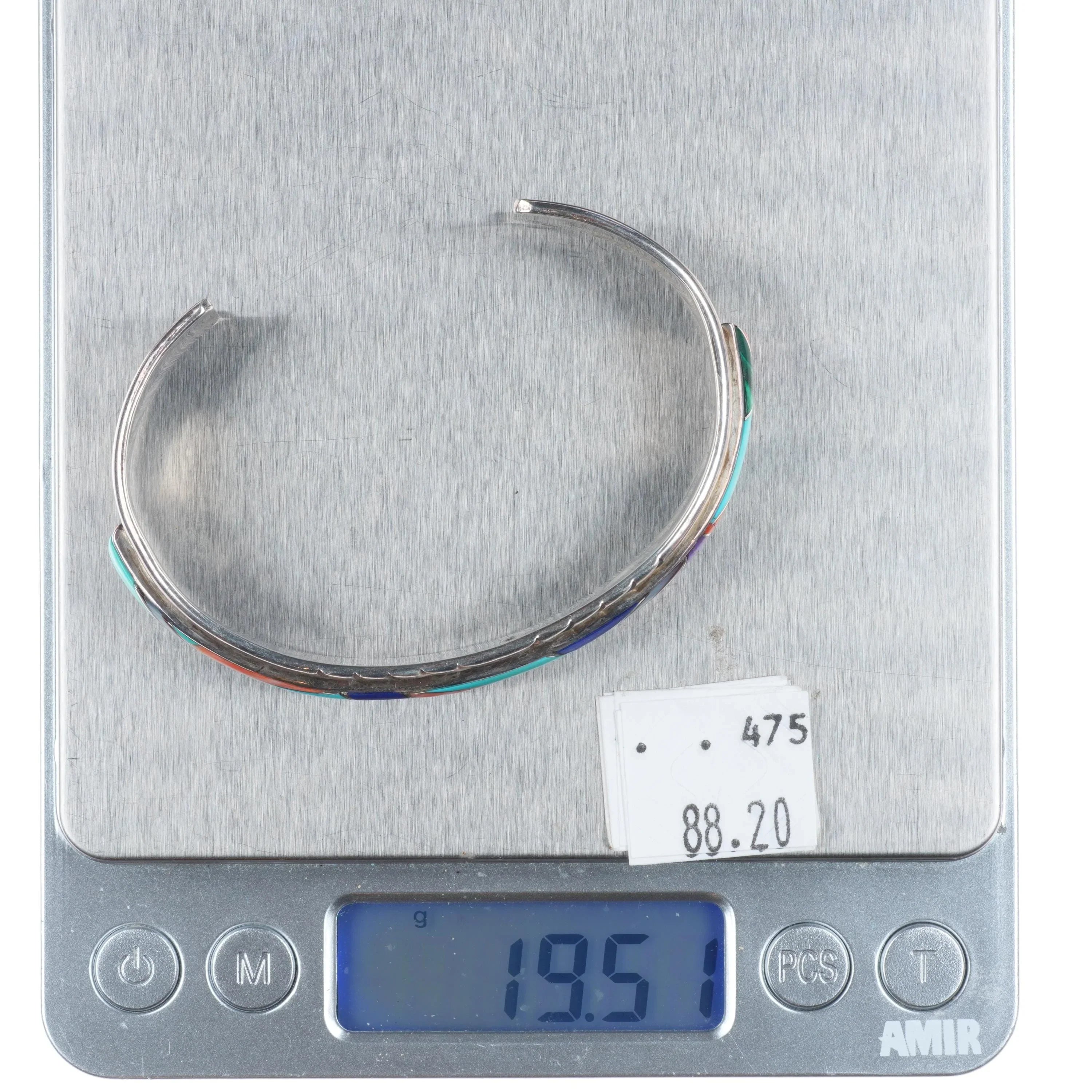 6.5" Vintage southwestern sterling silver multistone channel inlay cuff bracelet