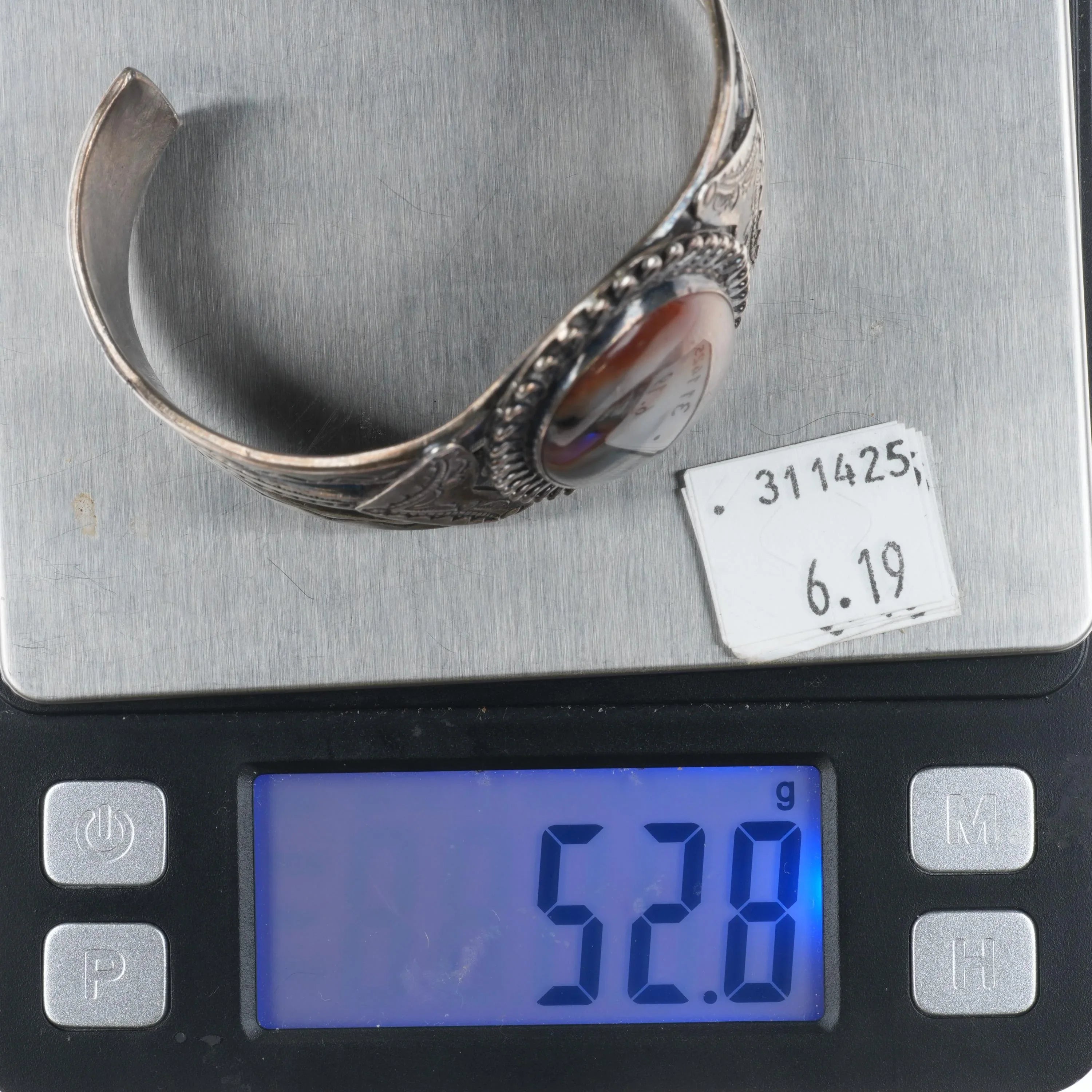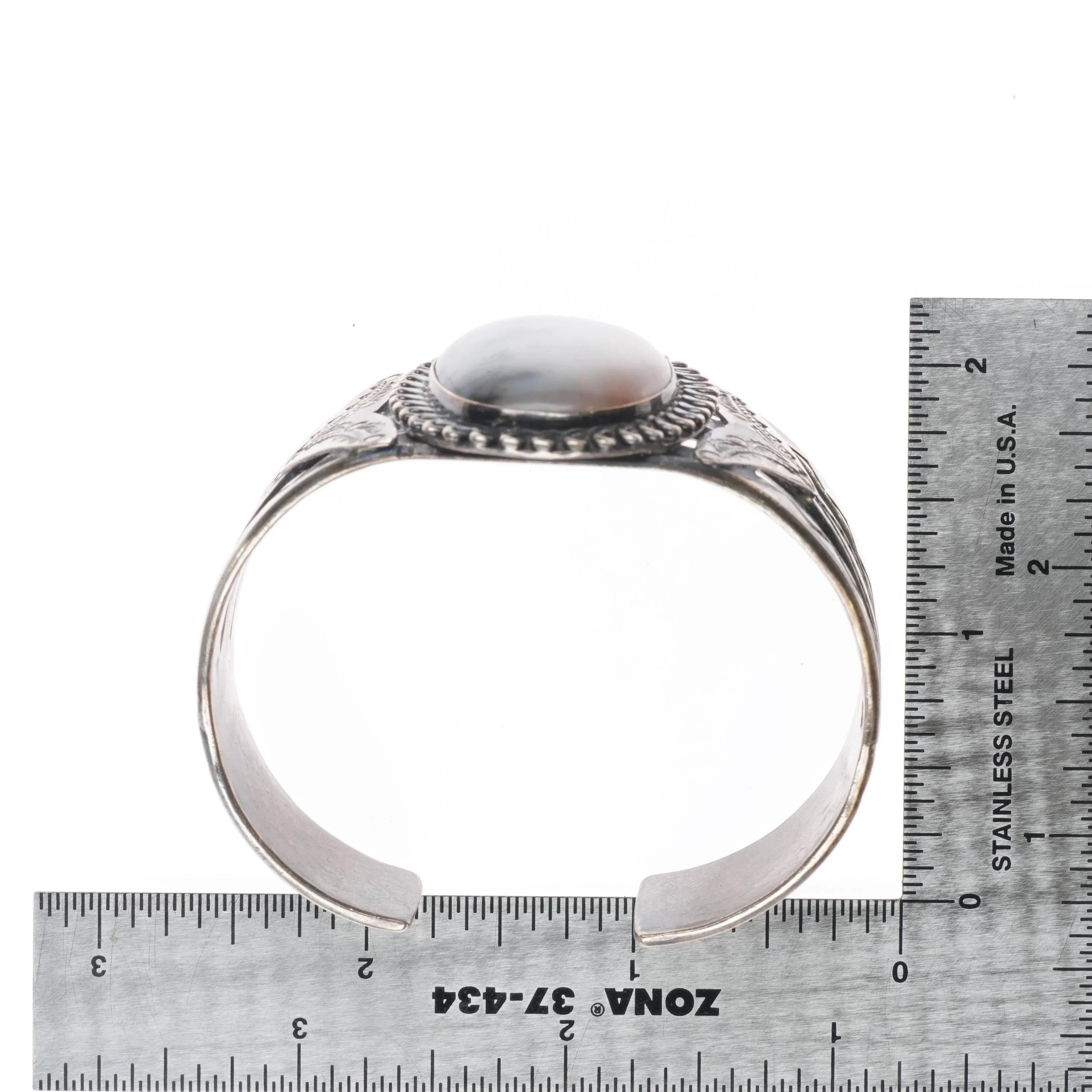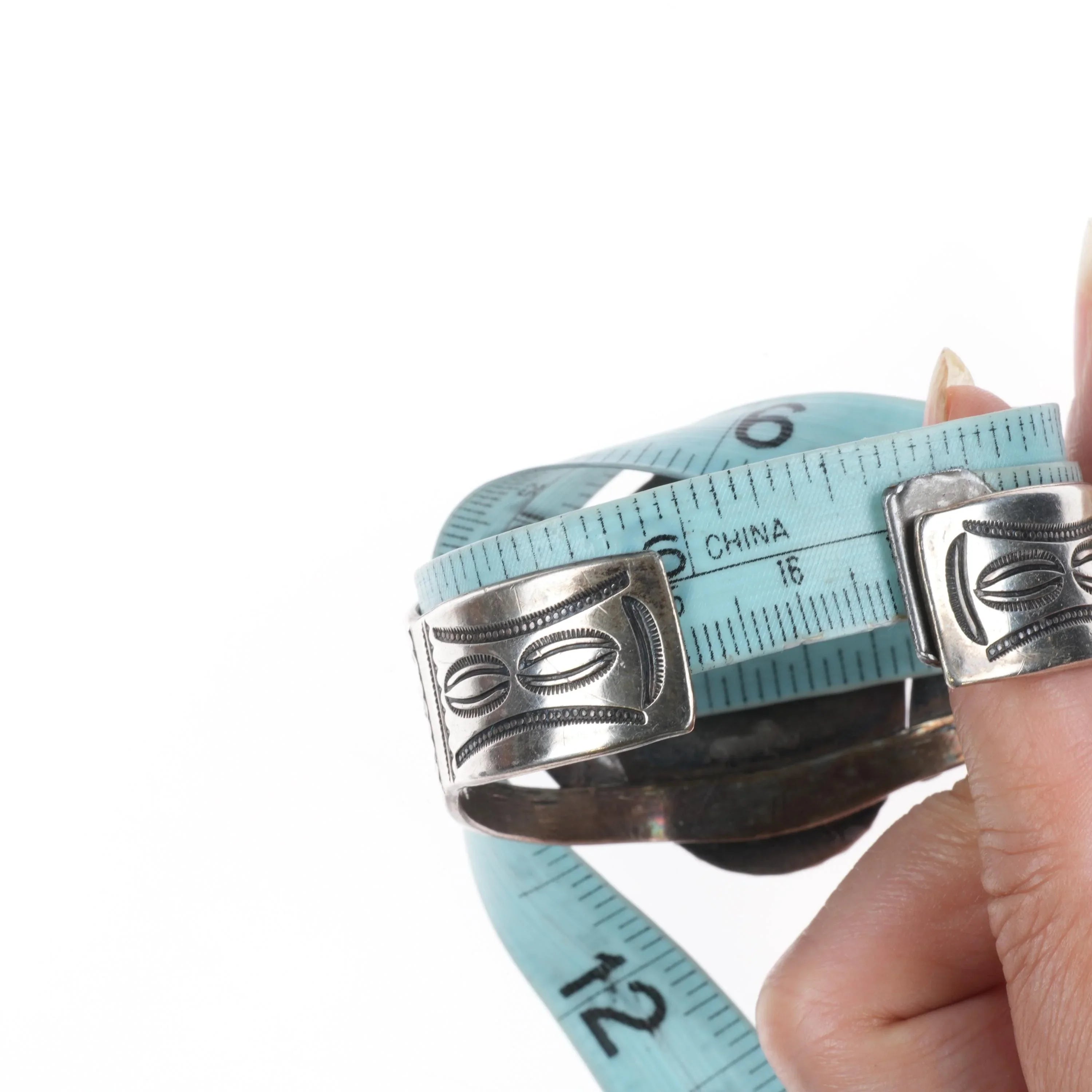 6.6" 1940's Navajo sterling silver hand stamped petrified wood cuff bracelet