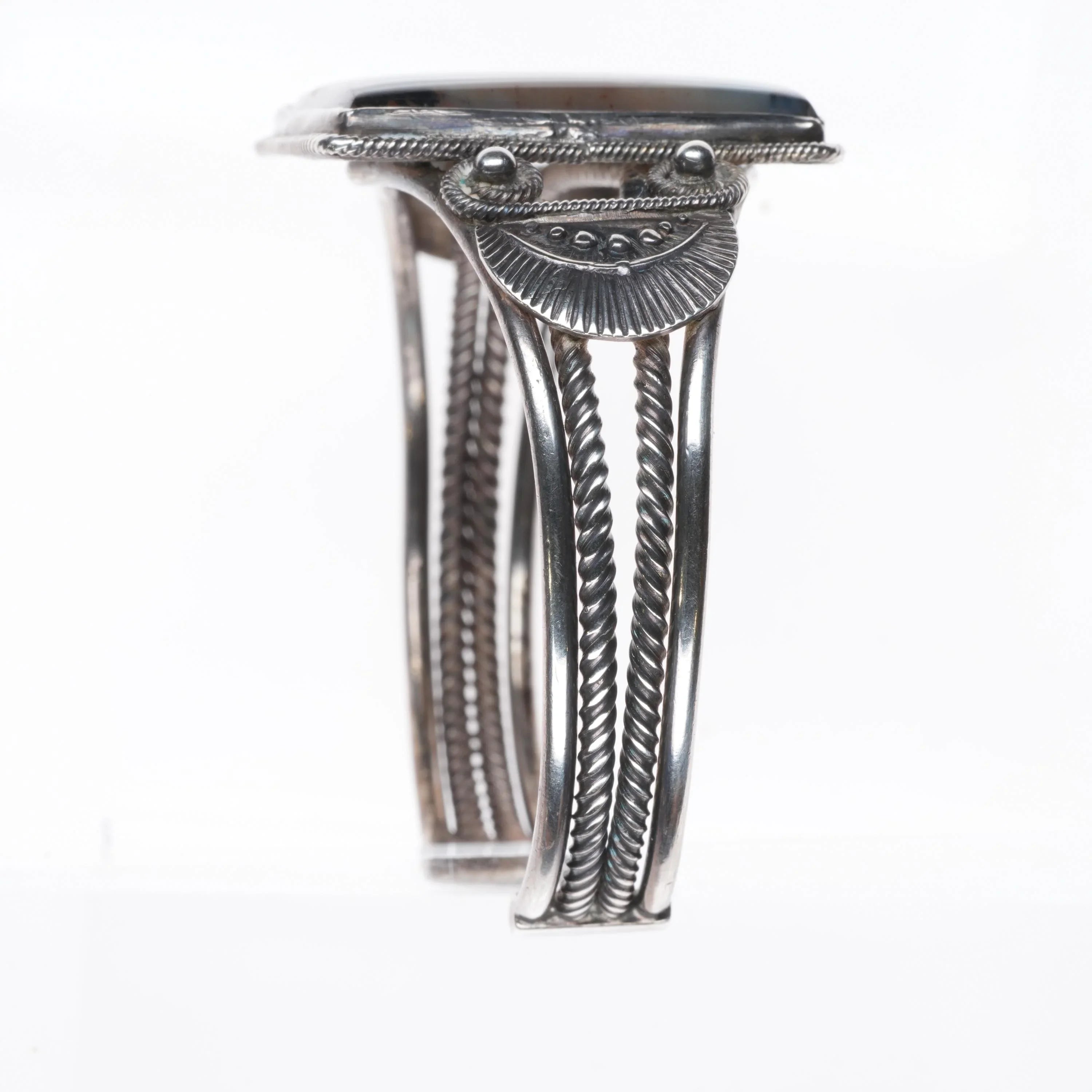 6.6" 30's-40's Navajo petrified wood twisted sterling silver wire cuff bracelet
