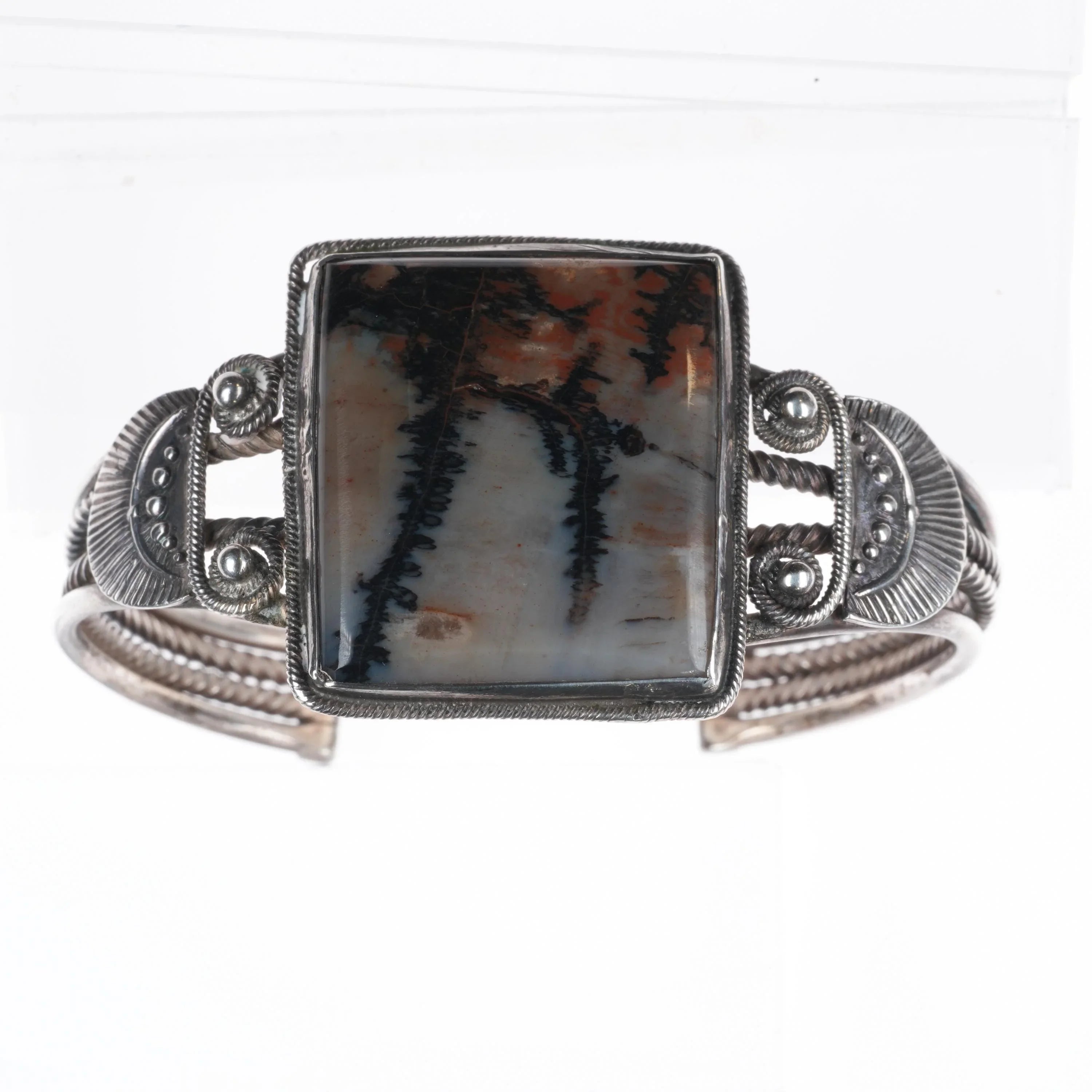 6.6" 30‘s-40‘s Navajo petrified wood twisted sterling silver wire cuff bracelet. Tested and guaranteed solid sterling silver with no markings whatsoever. Well cared for piece from the second quarter of the 20th century with no issues.