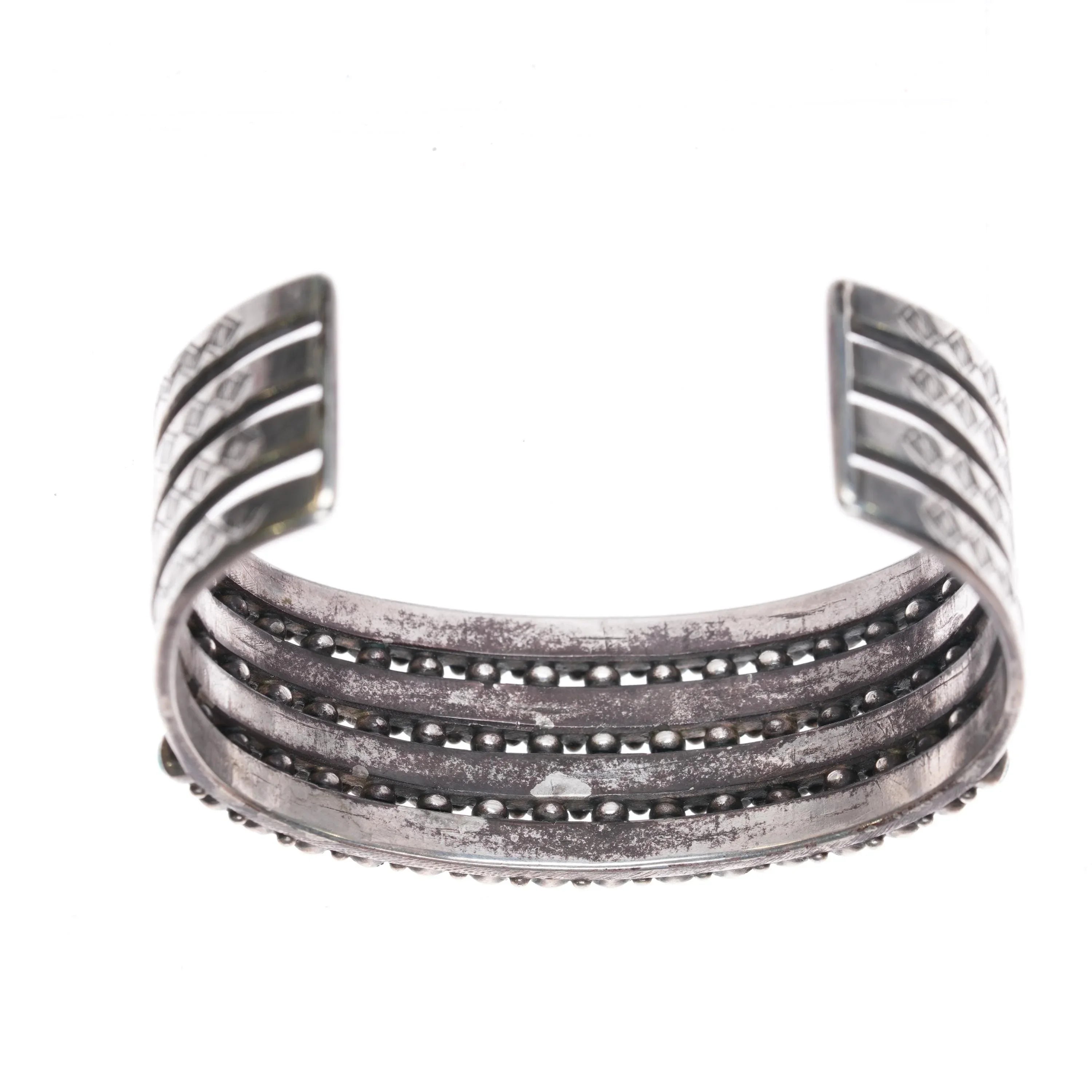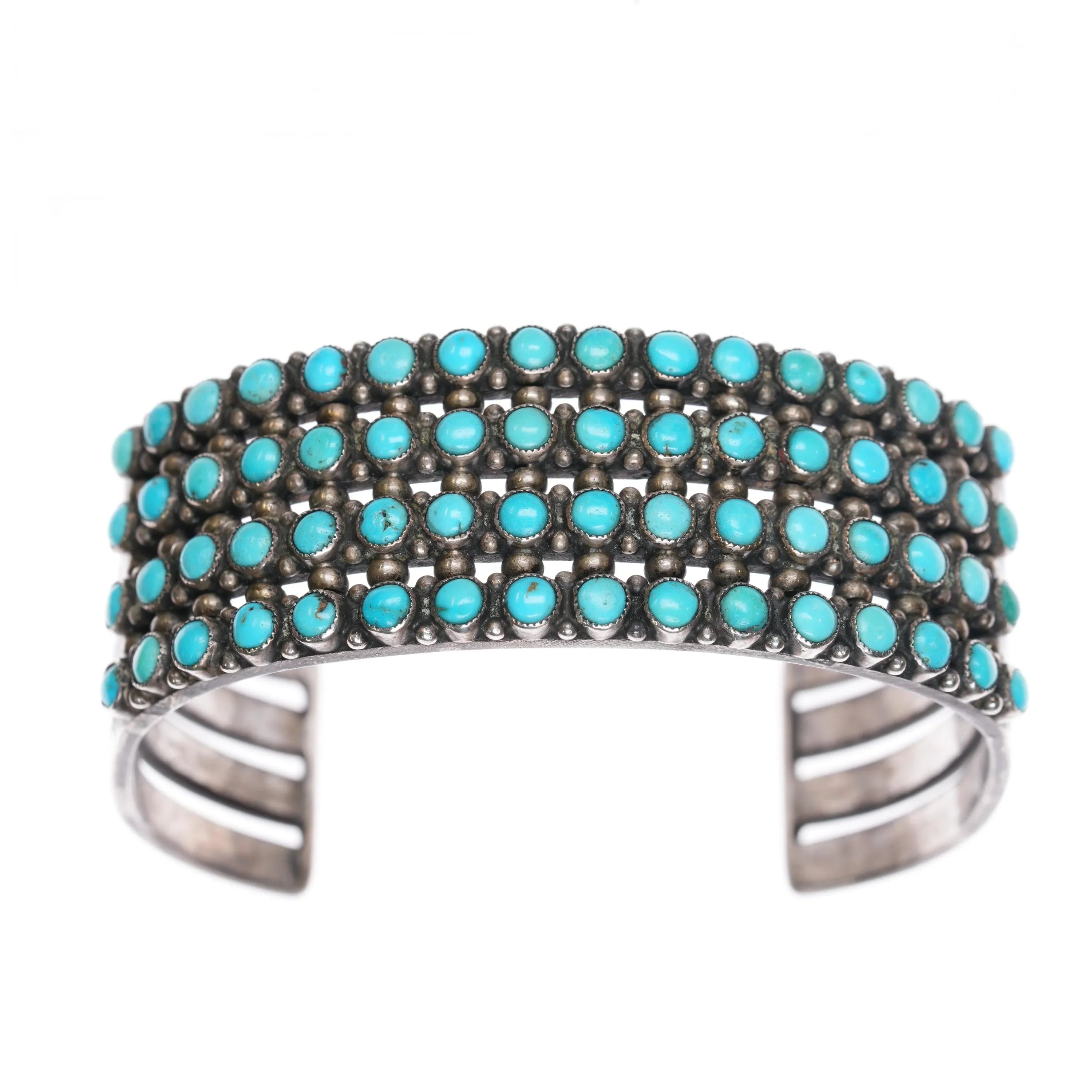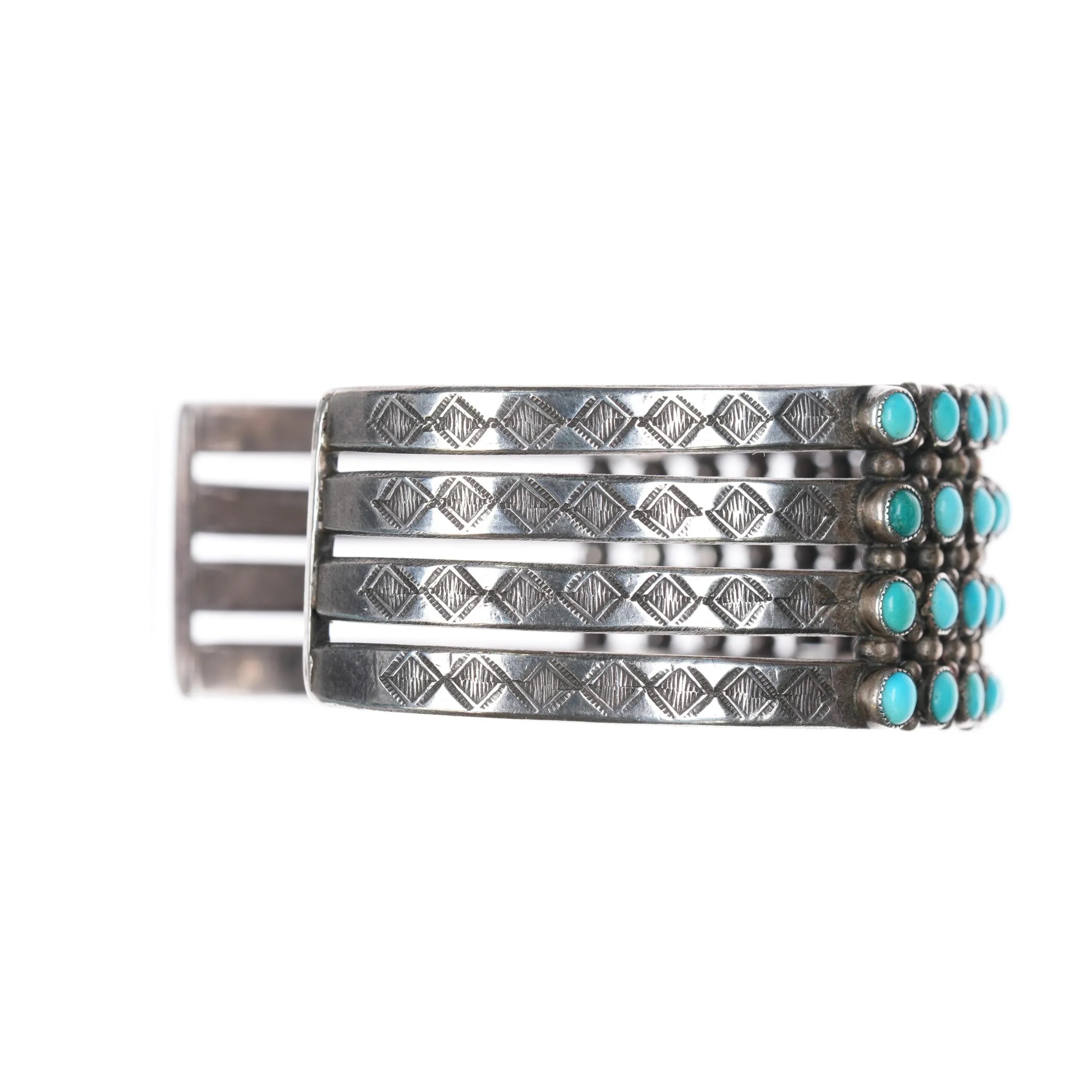 6.6" 30's-40's Zuni sterling silver 3 row snake eye turquoise cuff bracelet