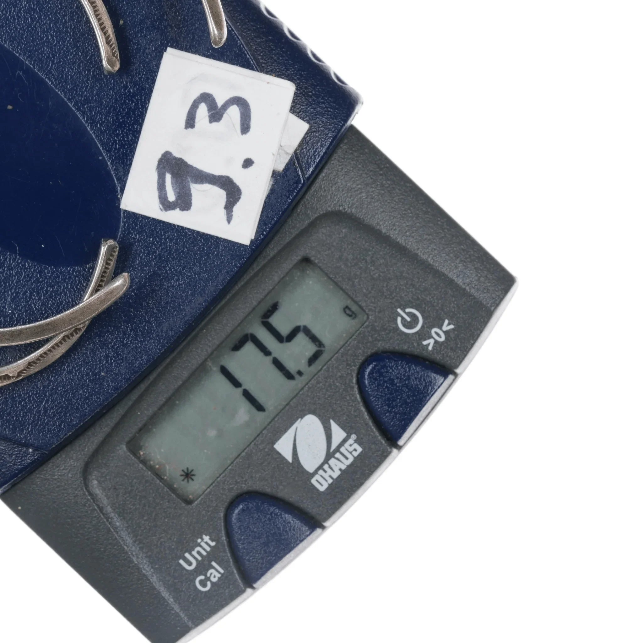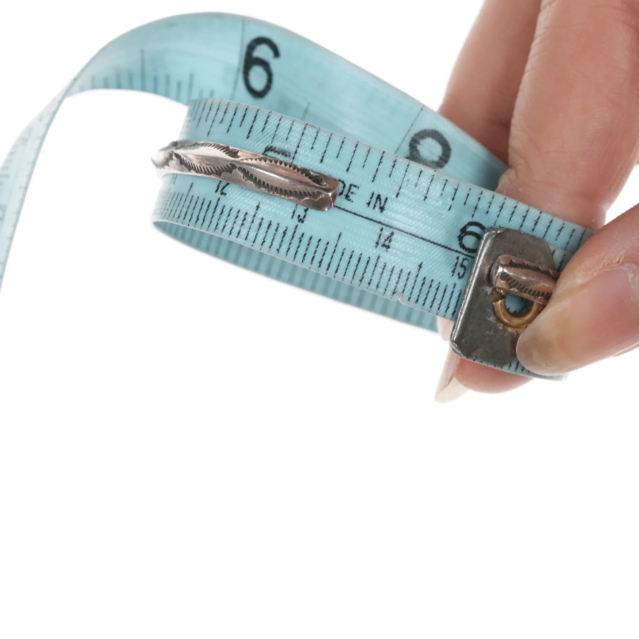 Marked or unmarked as shown in pics, weight and other measurements in pics. Sorry but my jewelry is stored in a secure location and cannot be accessed for more pictures, videos, or measurements until sold. If you look at pictures/description your<br>question should be answered. Thank you so much for your time and consideration! If you would like to chat, that would be great, but lets chat about something that isn't answered in this listing that we put so much effort into already :). All precious metals are tested and guaranteed. A Native American jewelry piece referred to as "silver" or "ingot" is guaranteed to be at least 90% silver. I rarely use the word "sterling" when referring to older Native American silver or really any older silver jewelry as silver contents vary and "sterling" is 92.5% silver. No older jewelry is going to be exactly 92.5% silver, some a little over, some a little under. It wasn't an exact thing with handmade jewelry. I've seen thousands of pieces xrf'd to prove this. Bracelets are photographed on a 6" women's wrist.