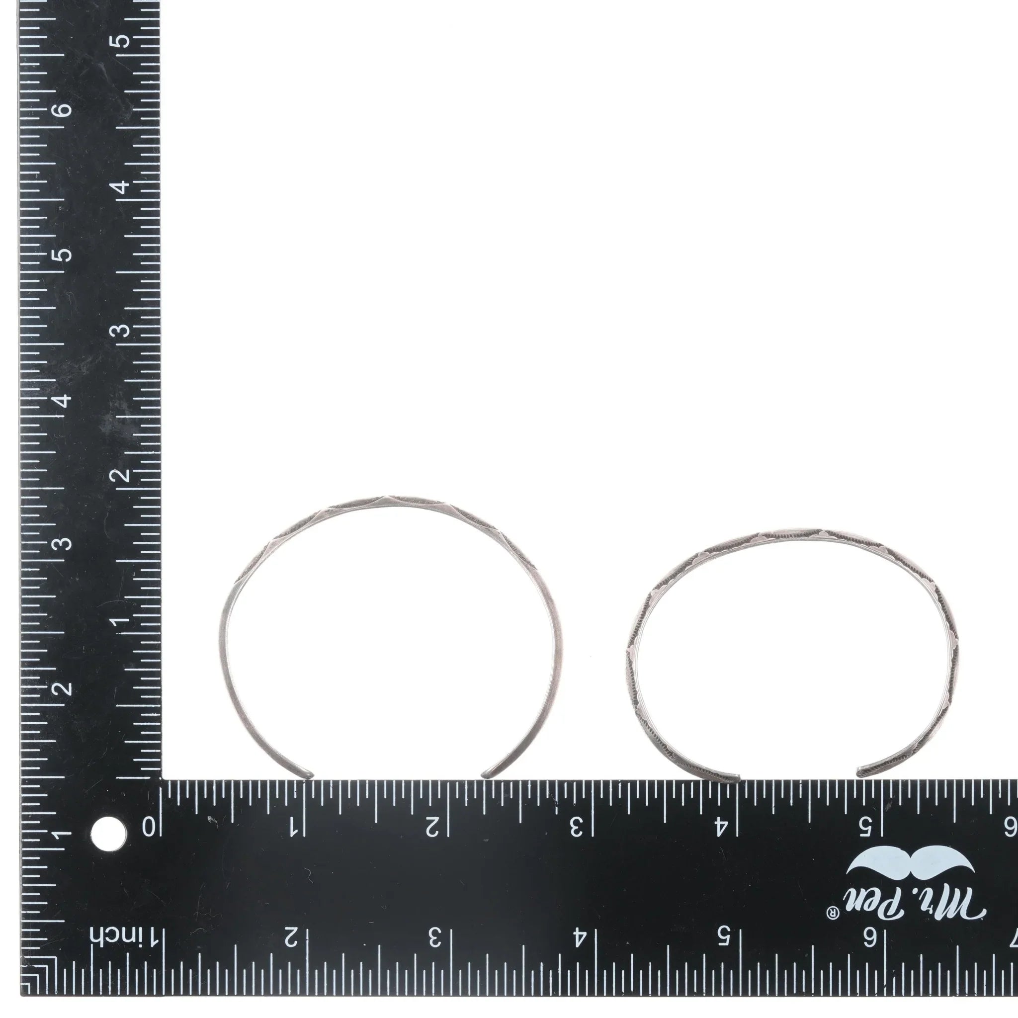 6"-6.5" Vintage Navajo hand stamped silver stacking cuff bracelets. Selling the two bracelets shown, solid silver with no issues