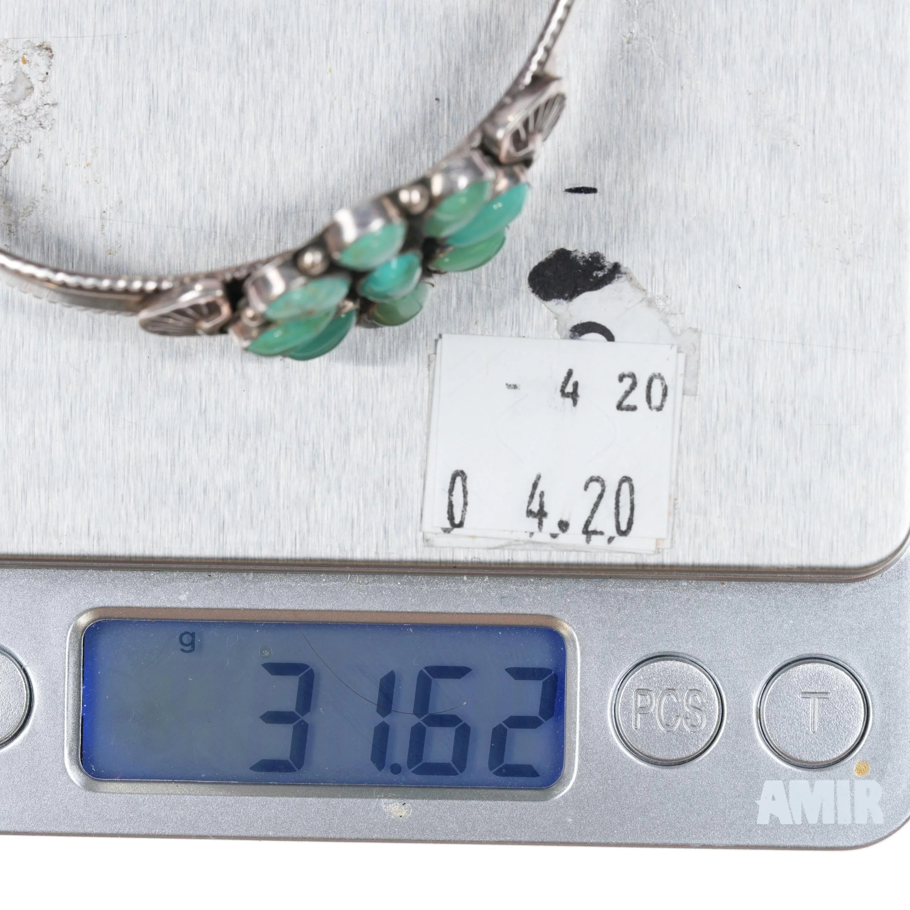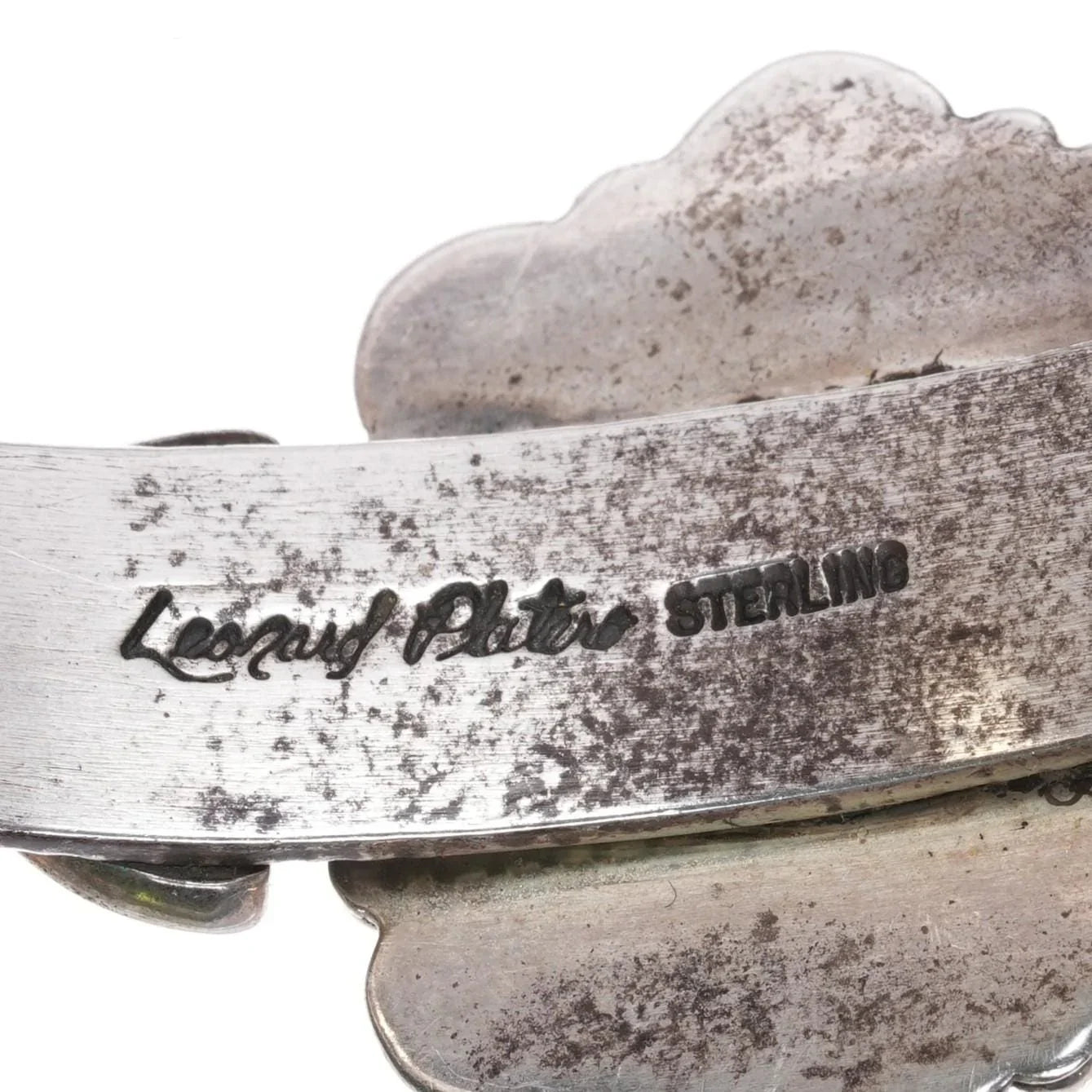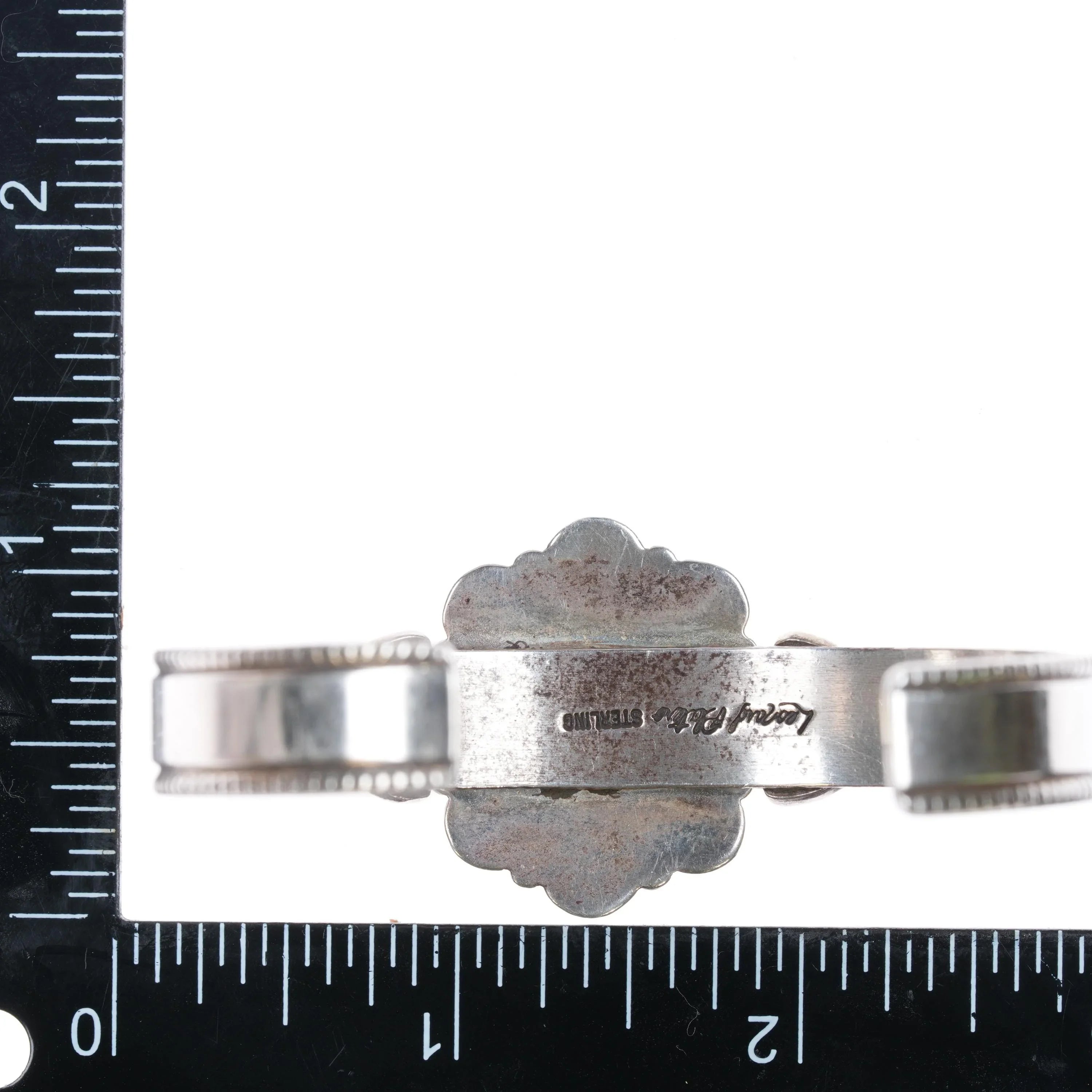6.75" Leonard Platero Navajo sterling and turquoise cluster cuff bracelet. Weight and measurements in pictures, solid sterling silver with no issues.