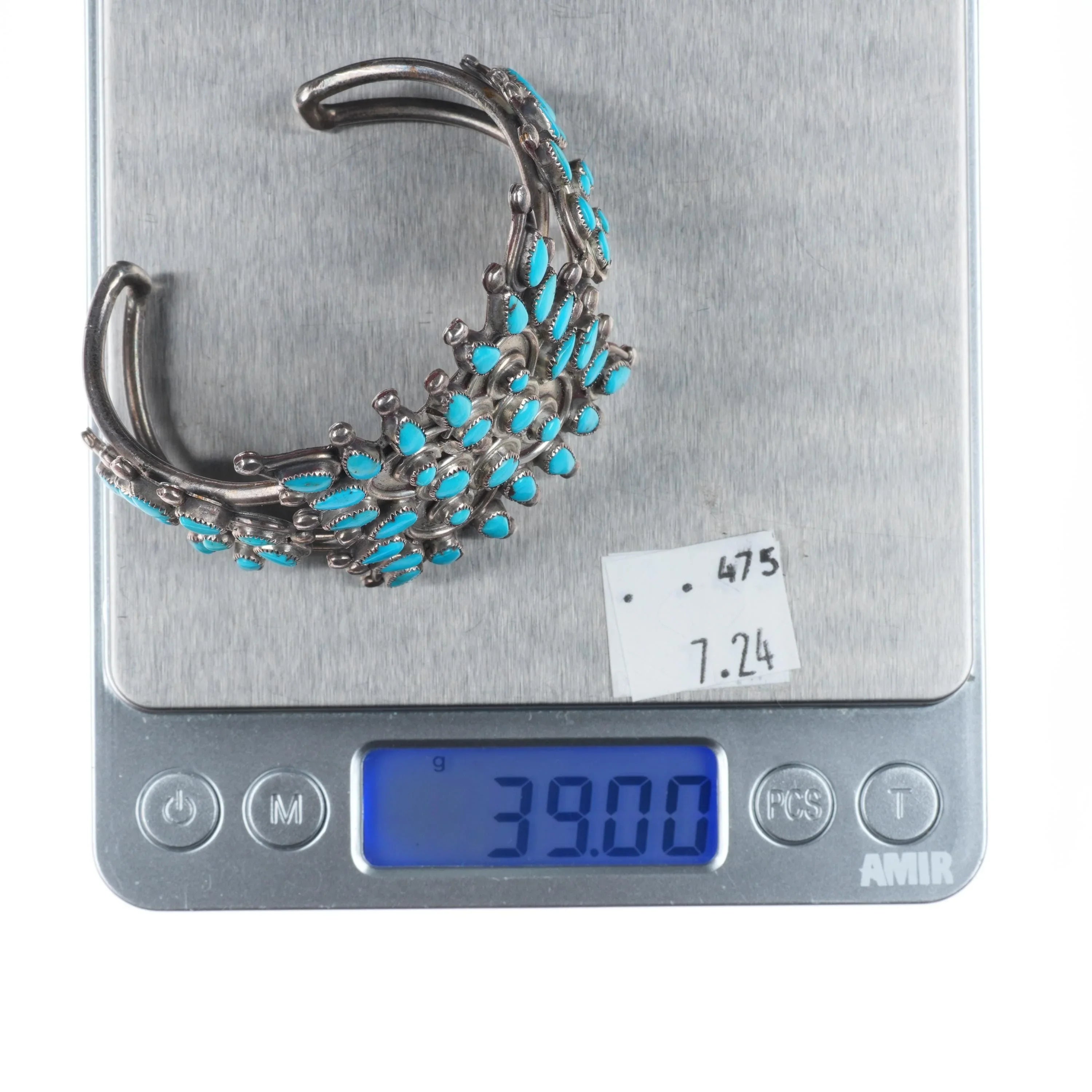 6" Vintage 40's-50's Zuni sterling silver petit point turquoise cuff bracelet