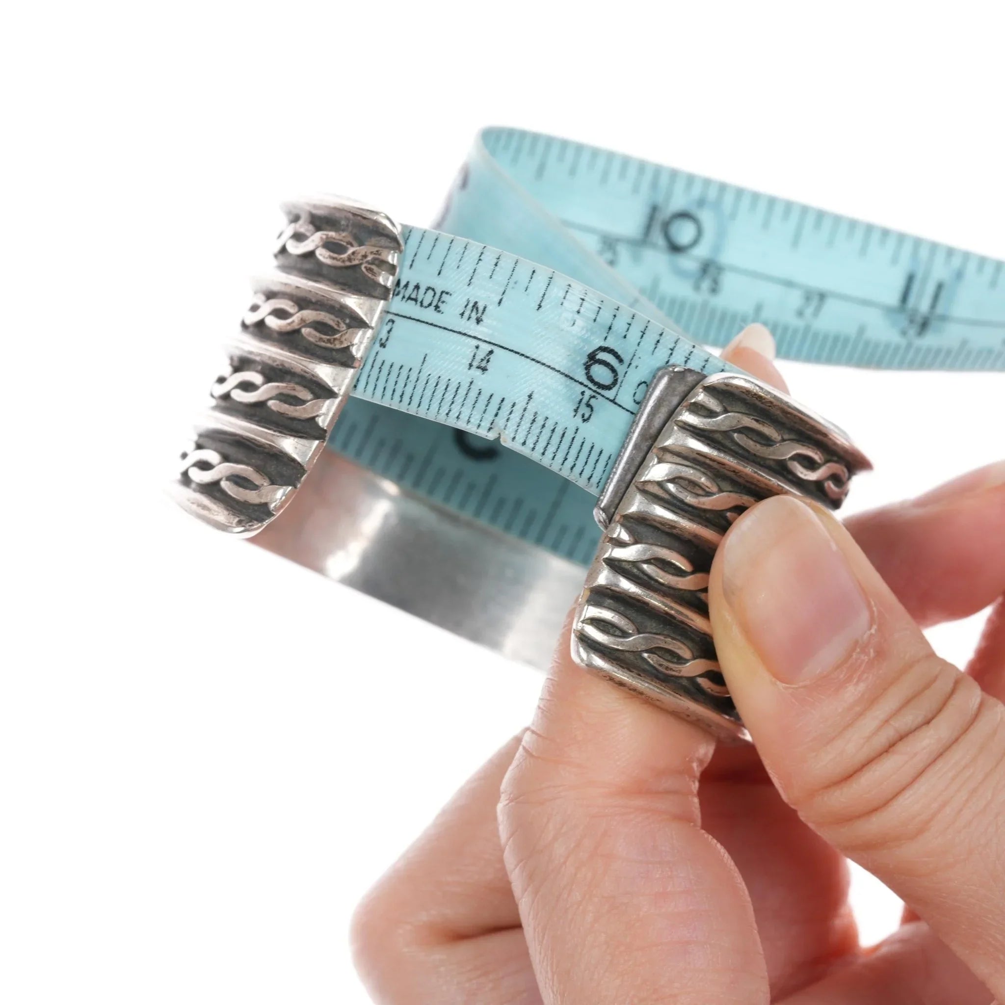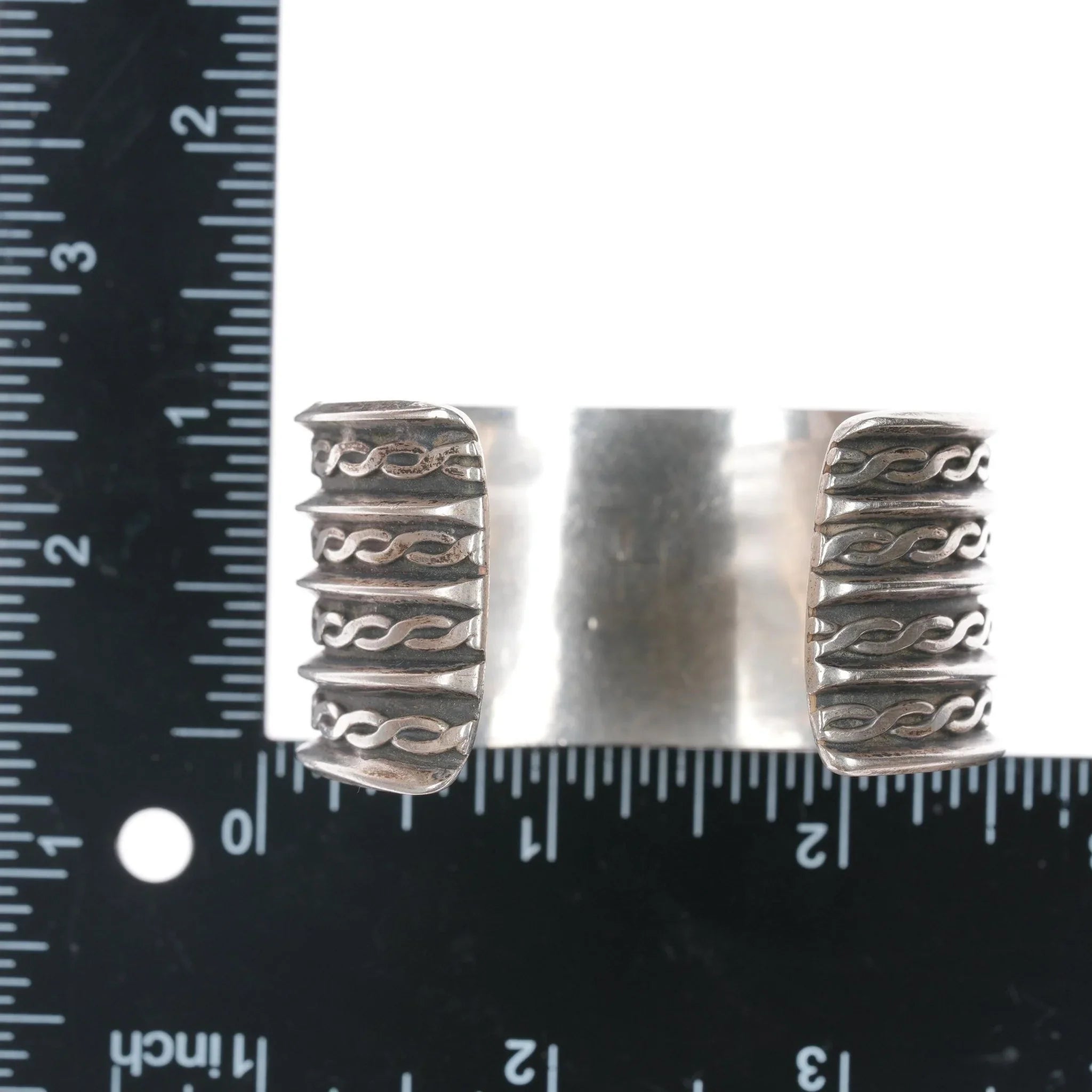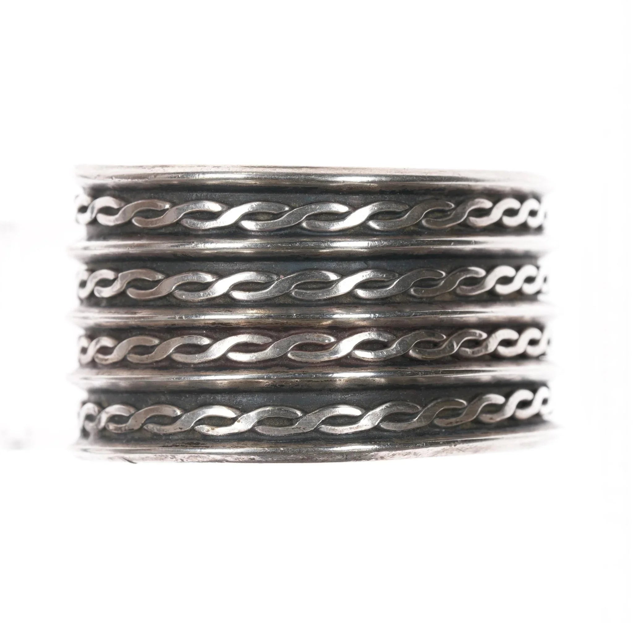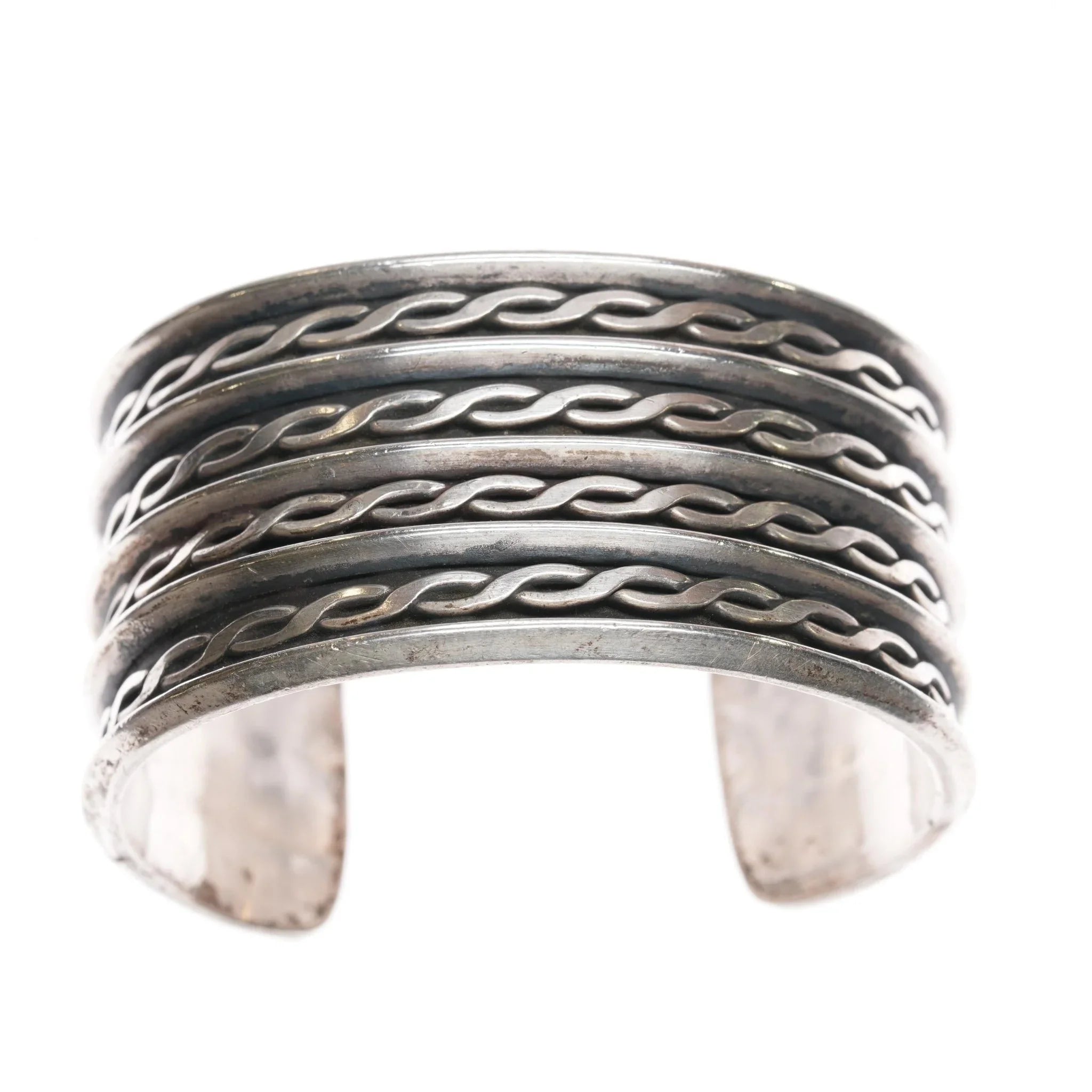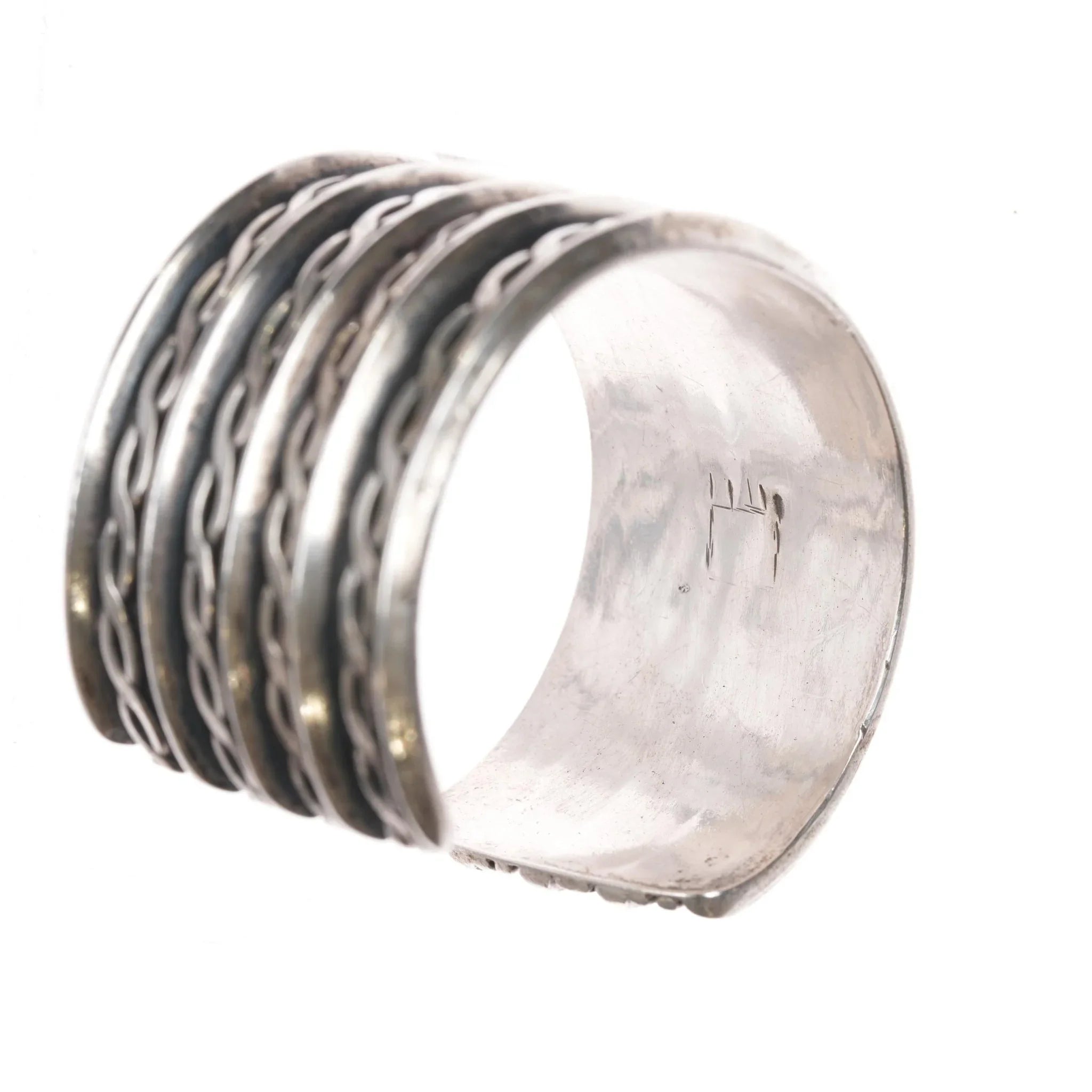6" Vintage Native American twisted wire carinated silver cuff bracelet. Weight and measurements in pics. Illegibly signed in two places in interior, solid sterling. Circa third quarter of 20th century.