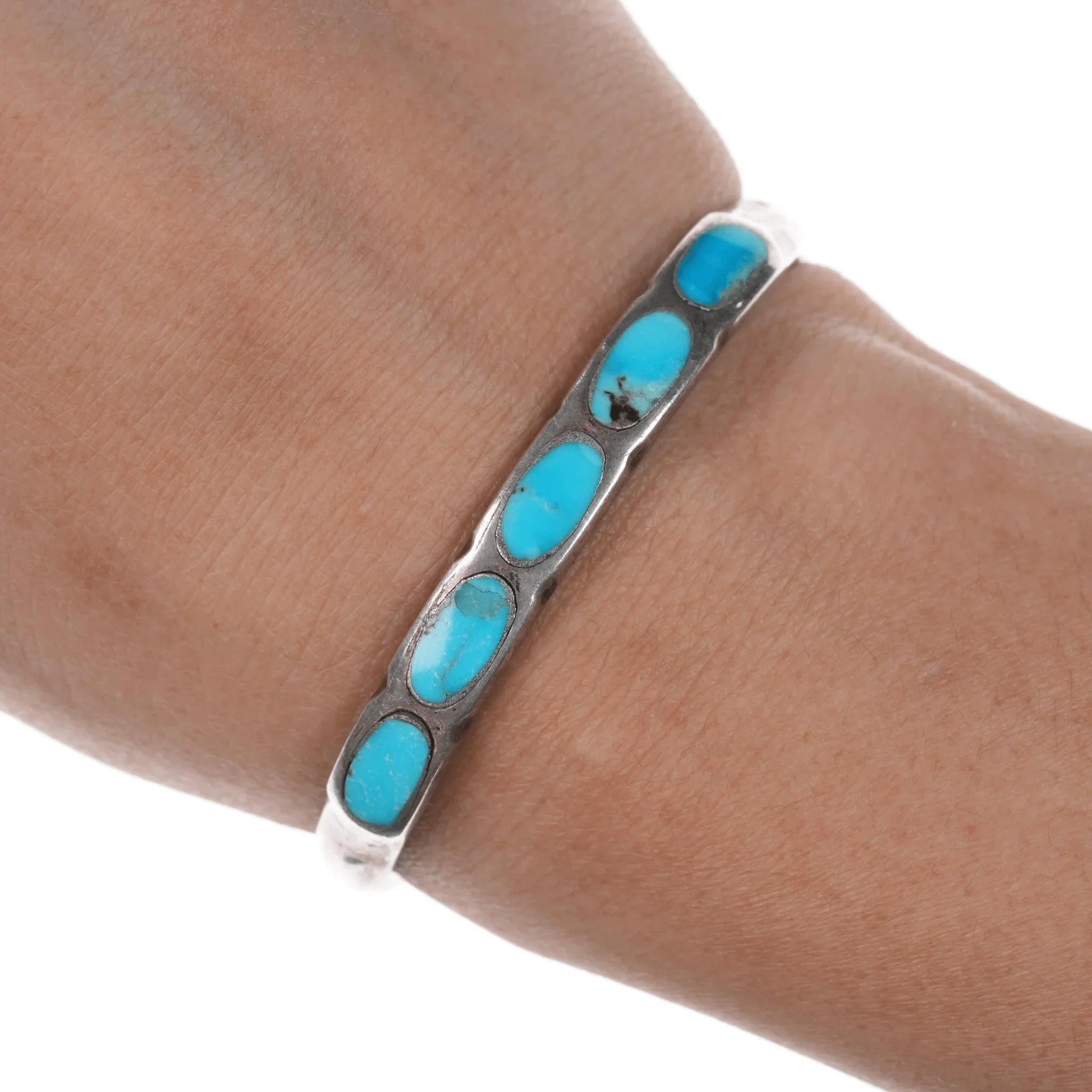 6" Vintage Zuni silver and oval turquoise channel inlay cuff bracelet