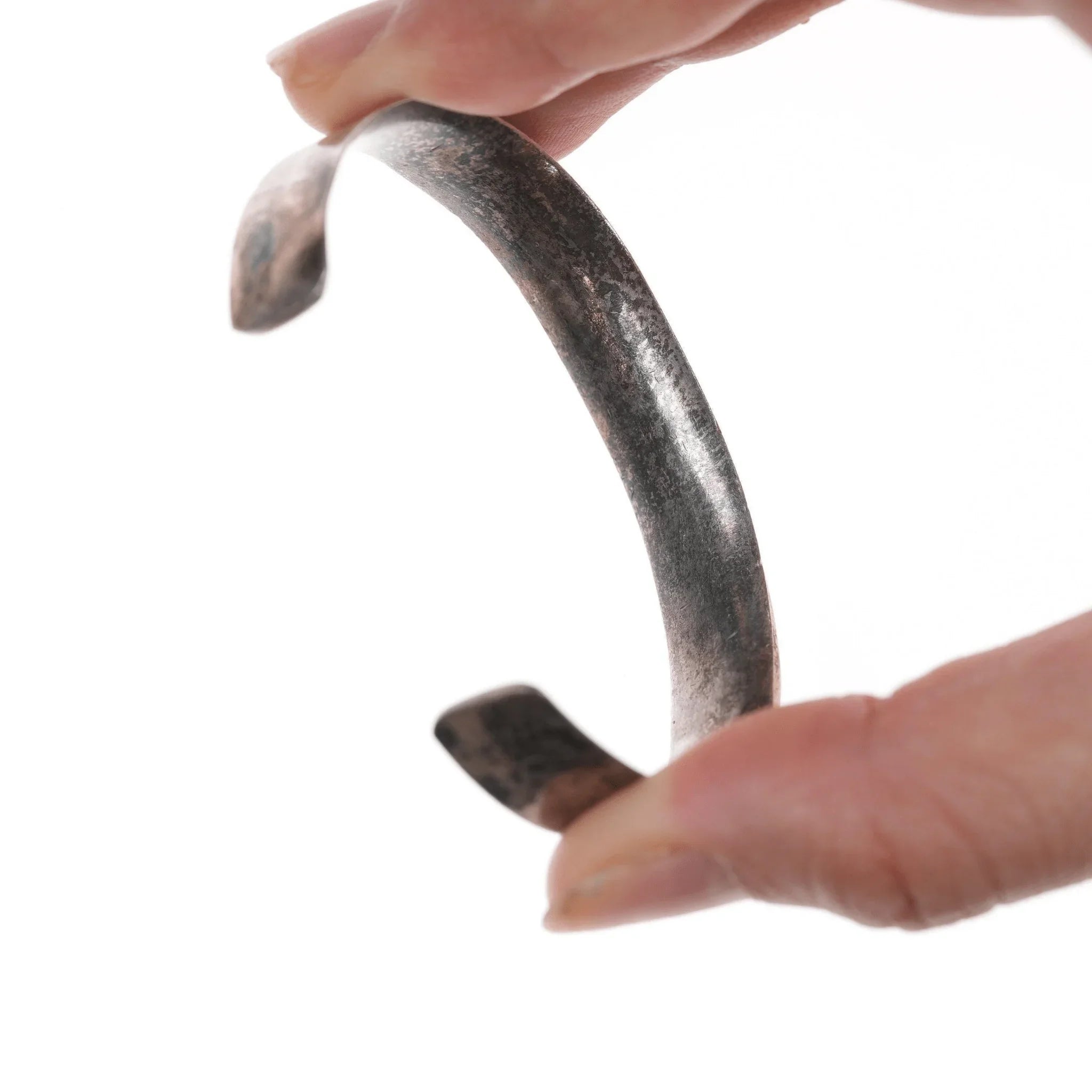 All precious metals are tested and guaranteed. A Native American jewelry piece referred to as "silver" or "ingot" is guaranteed to be at least 90% silver. I rarely use the word "sterling" when referring to older Native American silver or really any older silver jewelry as silver contents vary and "sterling" is 92.5% silver. No older jewelry is going to be exactly 92.5% silver, some a little over, some a little under. It wasn't an exact thing with handmade jewelry. I've seen thousands of pieces xrf'd to prove this. Bracelets are photographed on a 6" women's wrist.