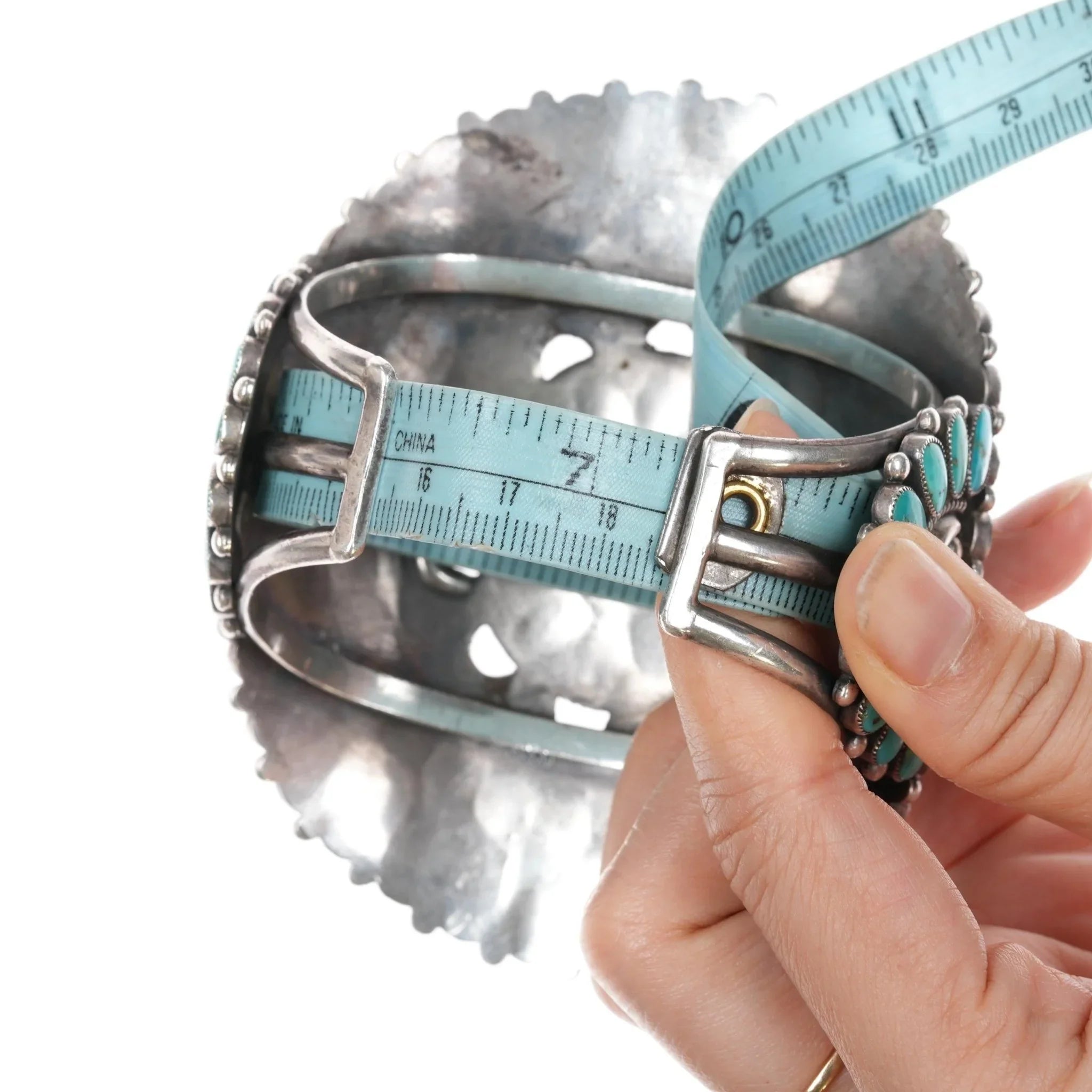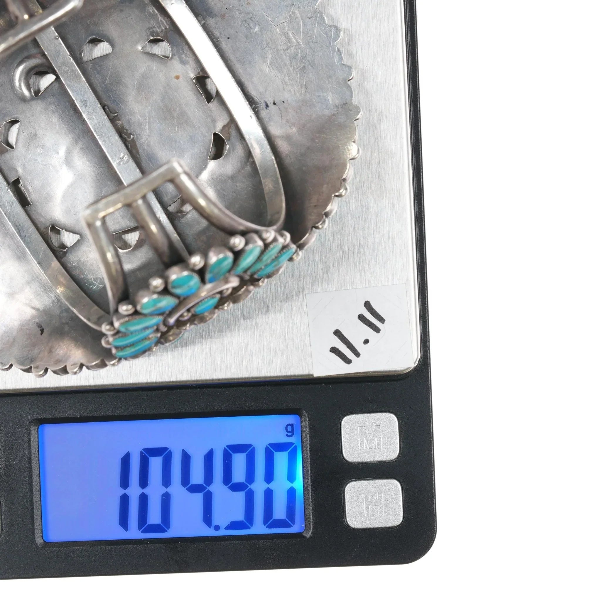 All precious metals are tested and guaranteed. A Native American jewelry piece referred to as "silver" or "ingot" is guaranteed to be at least 90% silver. I rarely use the word "sterling" when referring to older Native American silver or really any older silver jewelry as silver contents vary and "sterling" is 92.5% silver. No older jewelry is going to be exactly 92.5% silver, some a little over, some a little under. It wasn‘t an exact thing with handmade jewelry. I‘ve seen thousands of pieces xrf‘d to prove this. Bracelets are photographed on a 6" women‘s wrist.