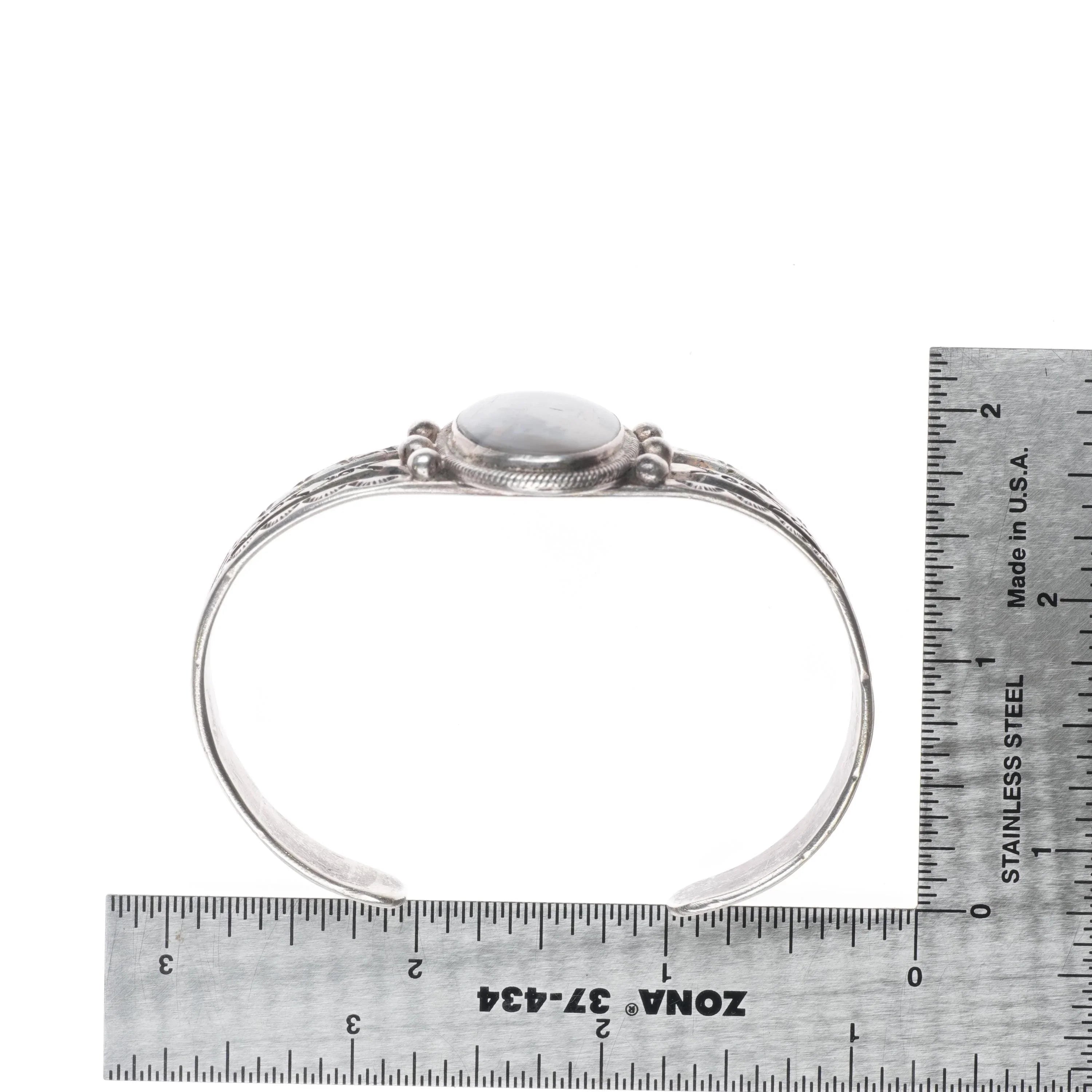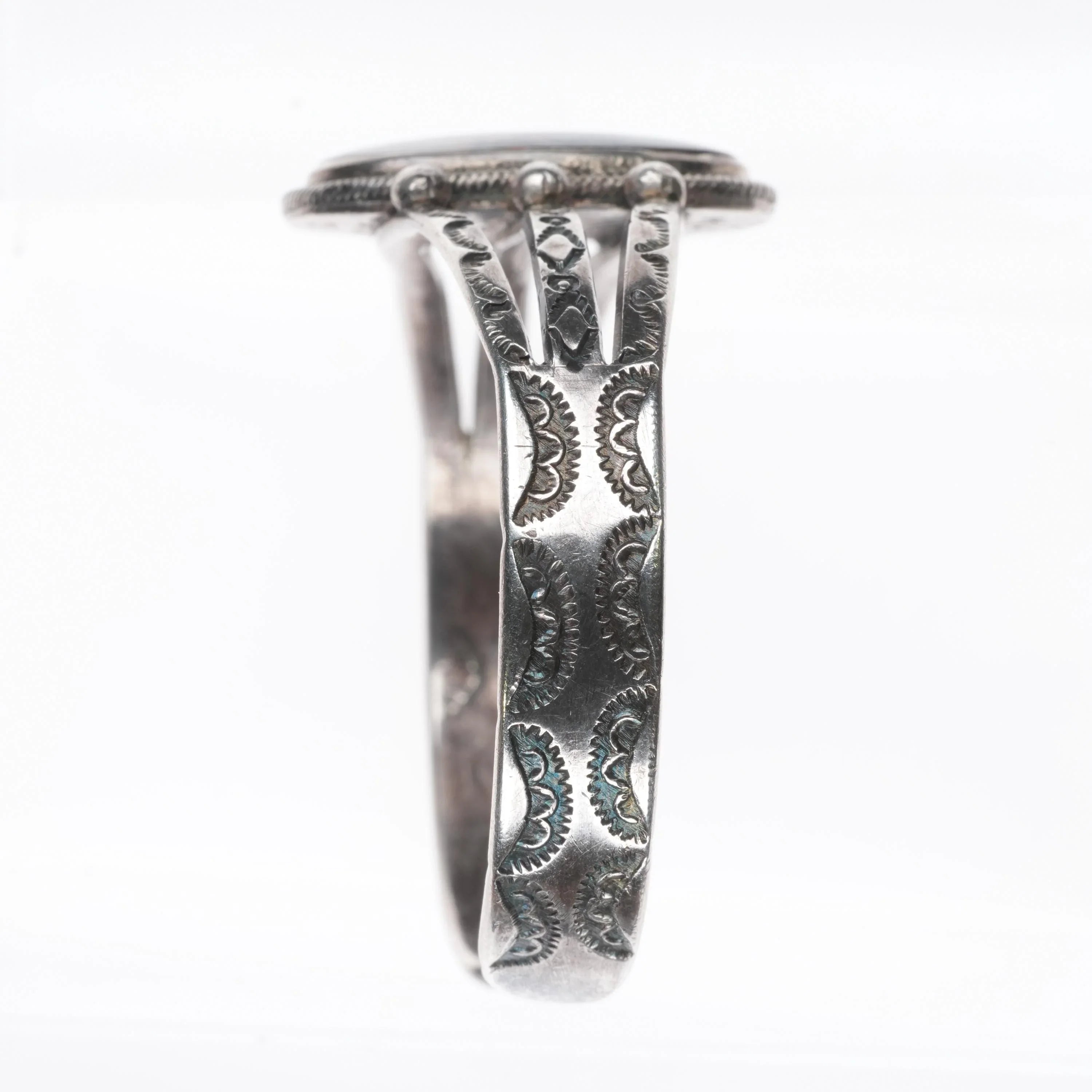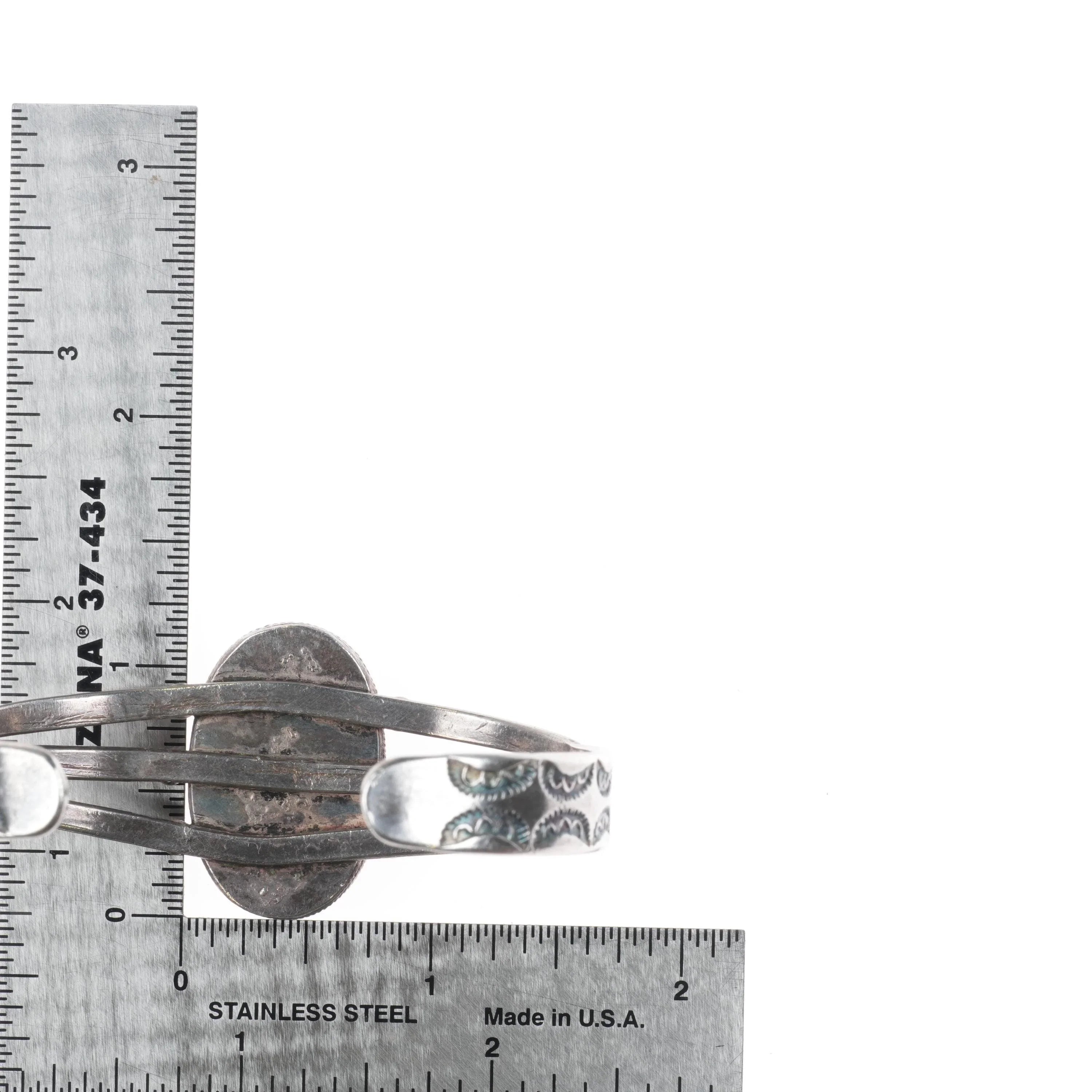 7" 30's-40's Navajo petrified wood stamped sterling silver cuff bracelet