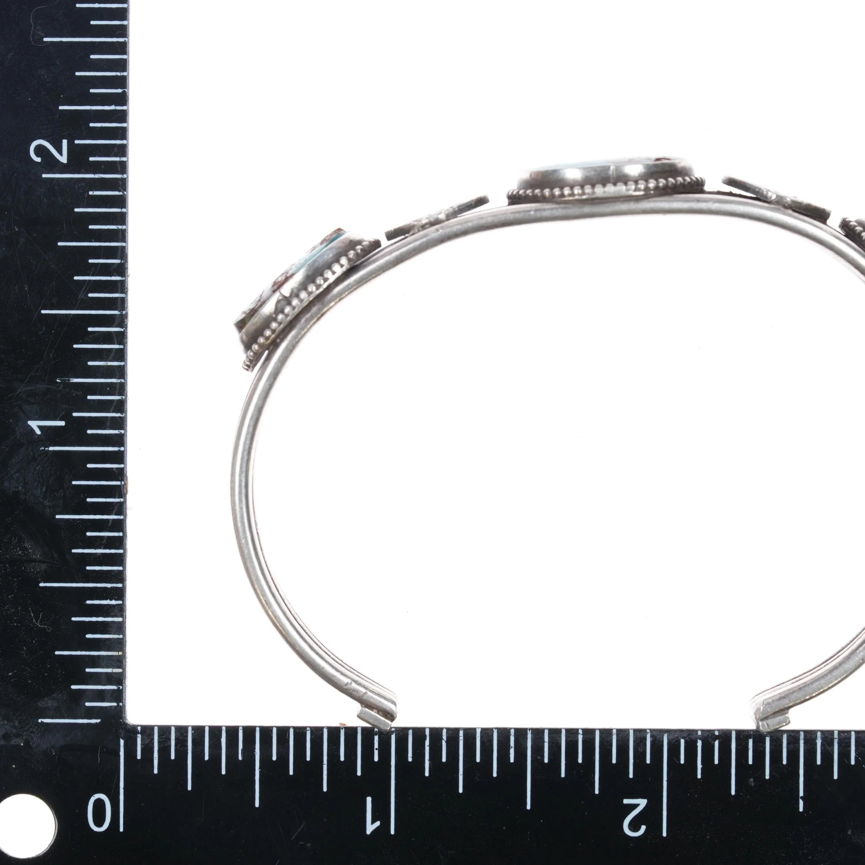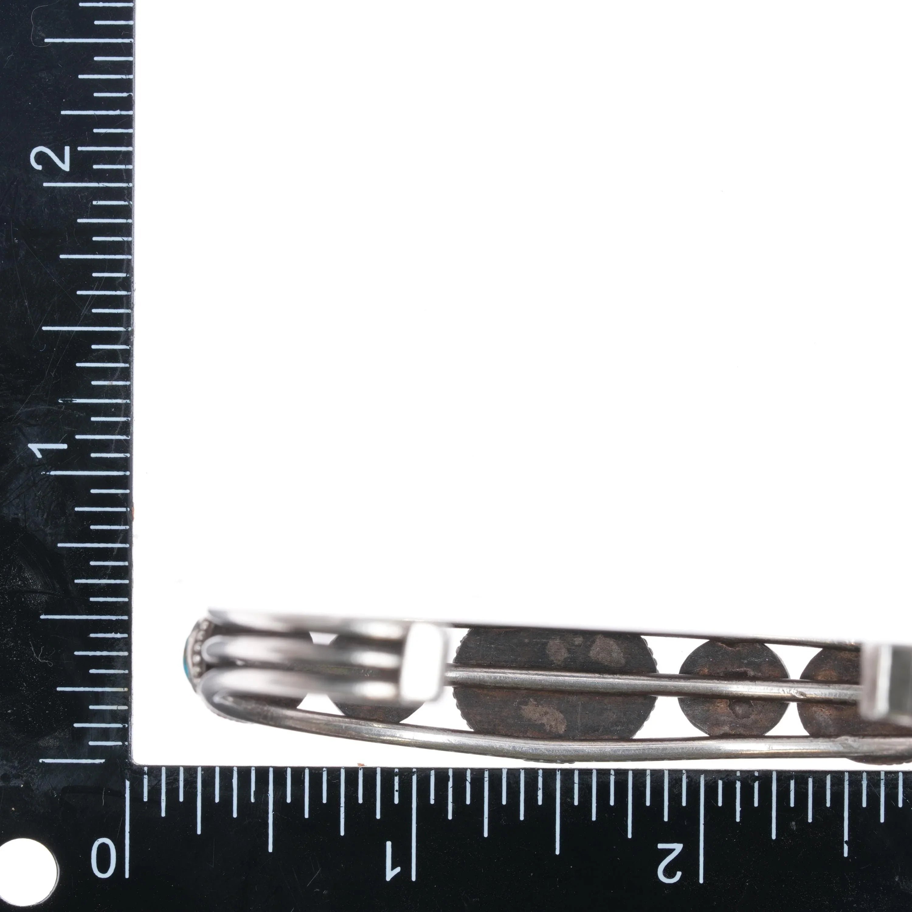 7" 30's-40's Navajo sterling silver Royston Turquoise 3 stone cuff bracelet
