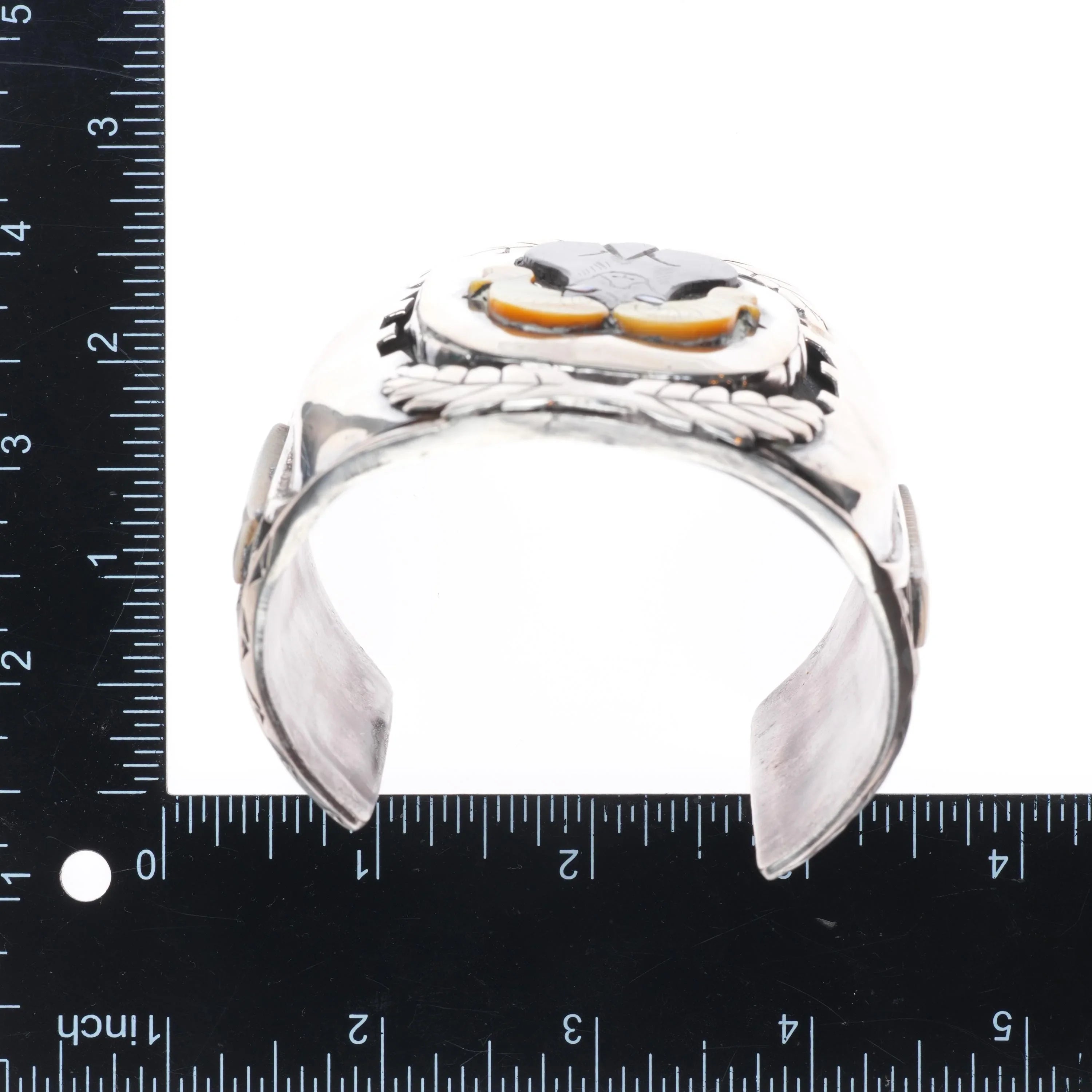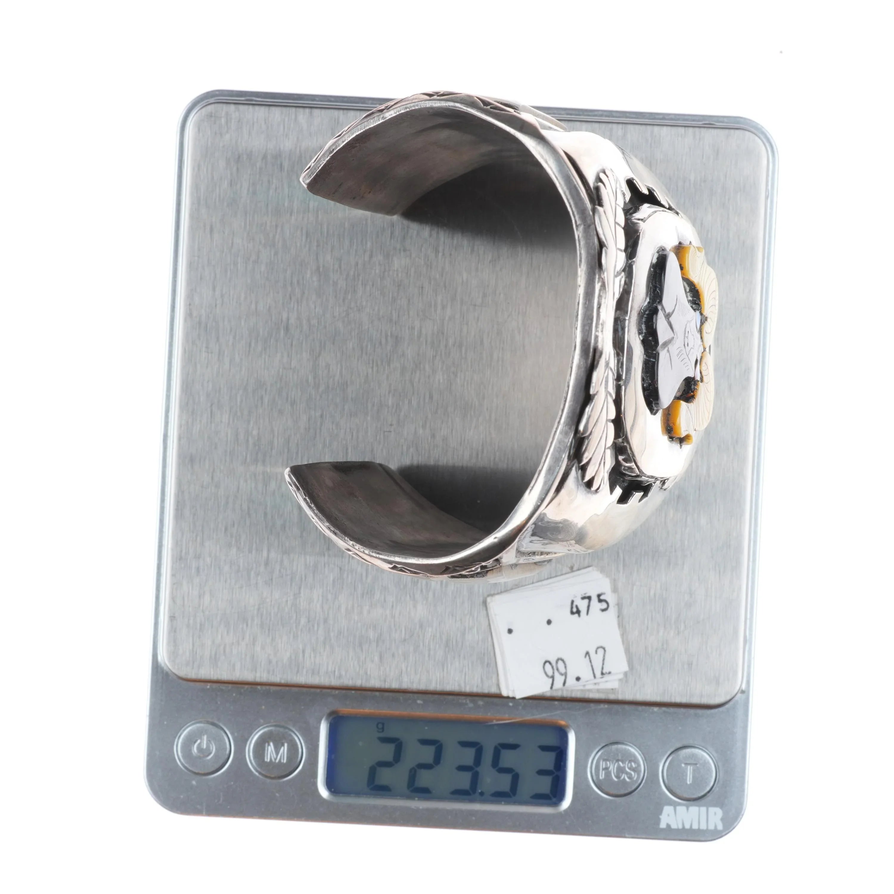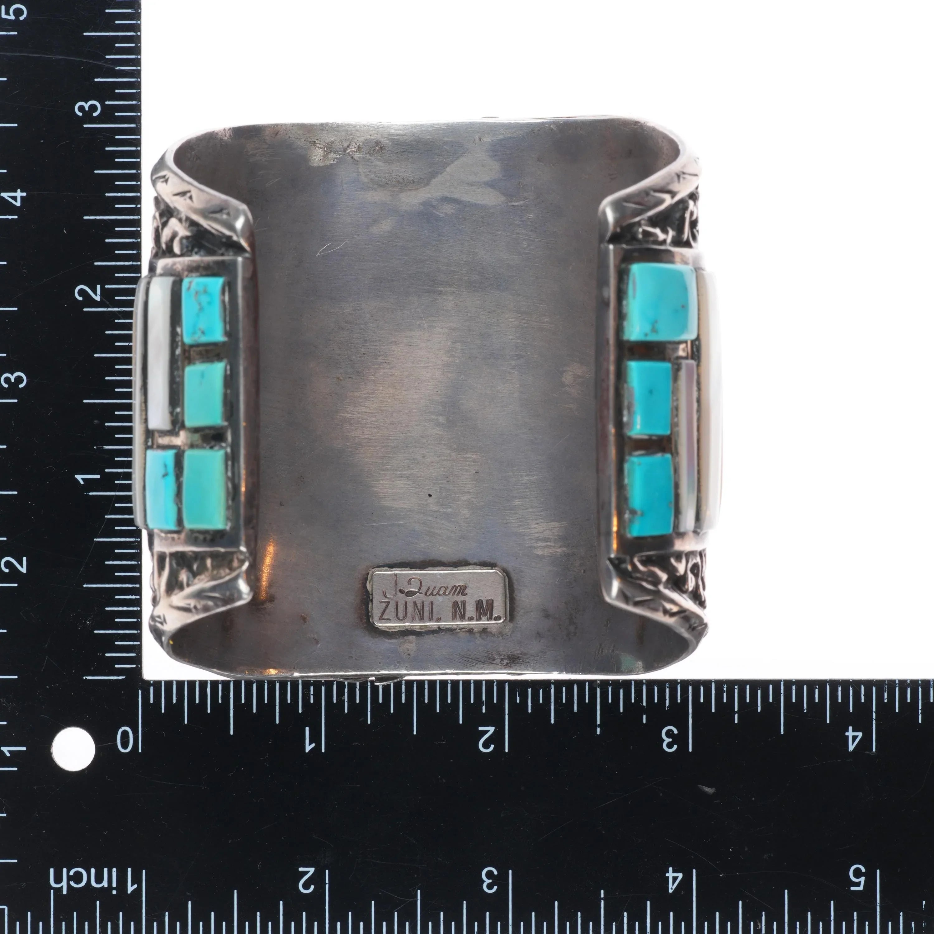 7.5" Huge J Quam Zuni Vintage Bighorn Sheep sterling silver inlay cuff bracelet