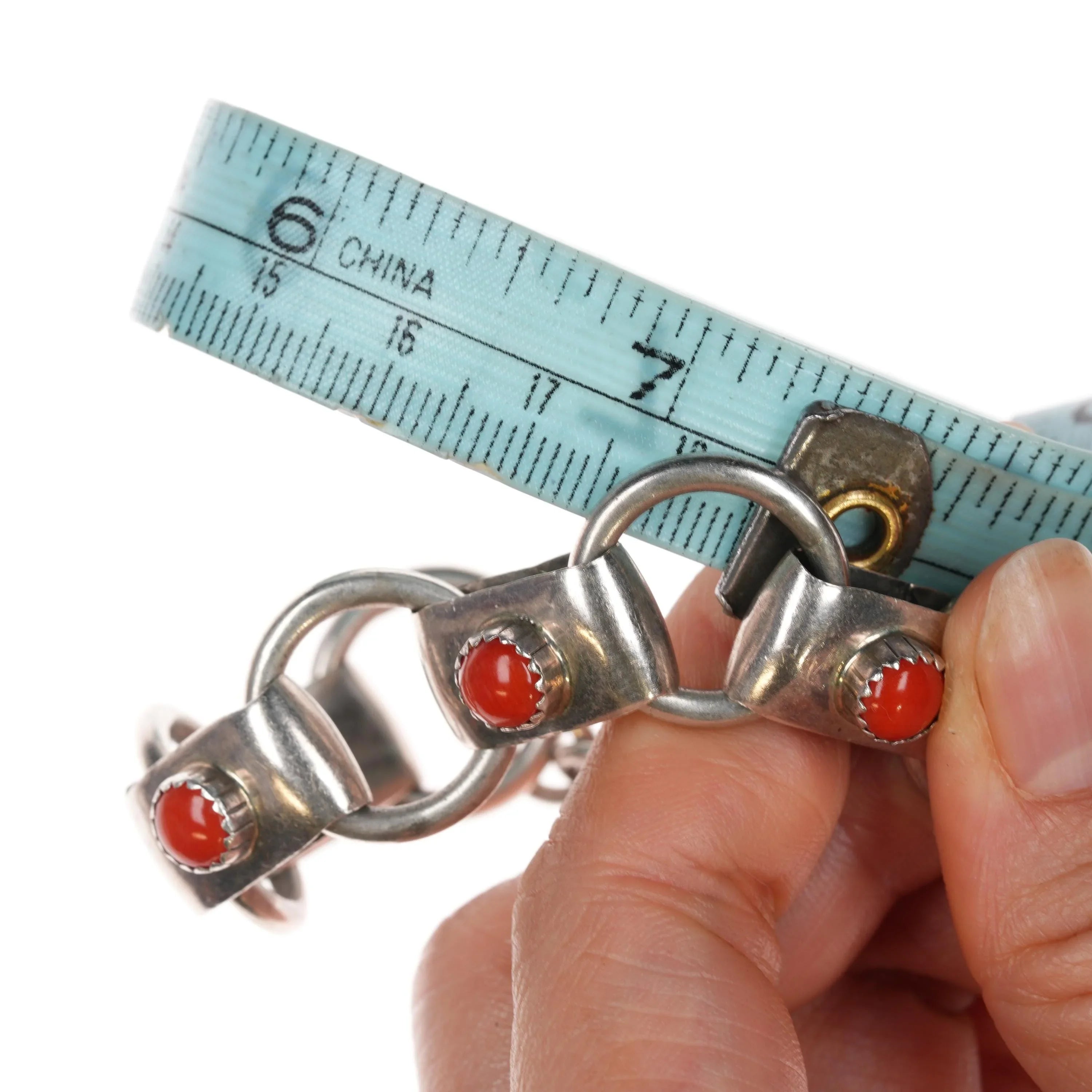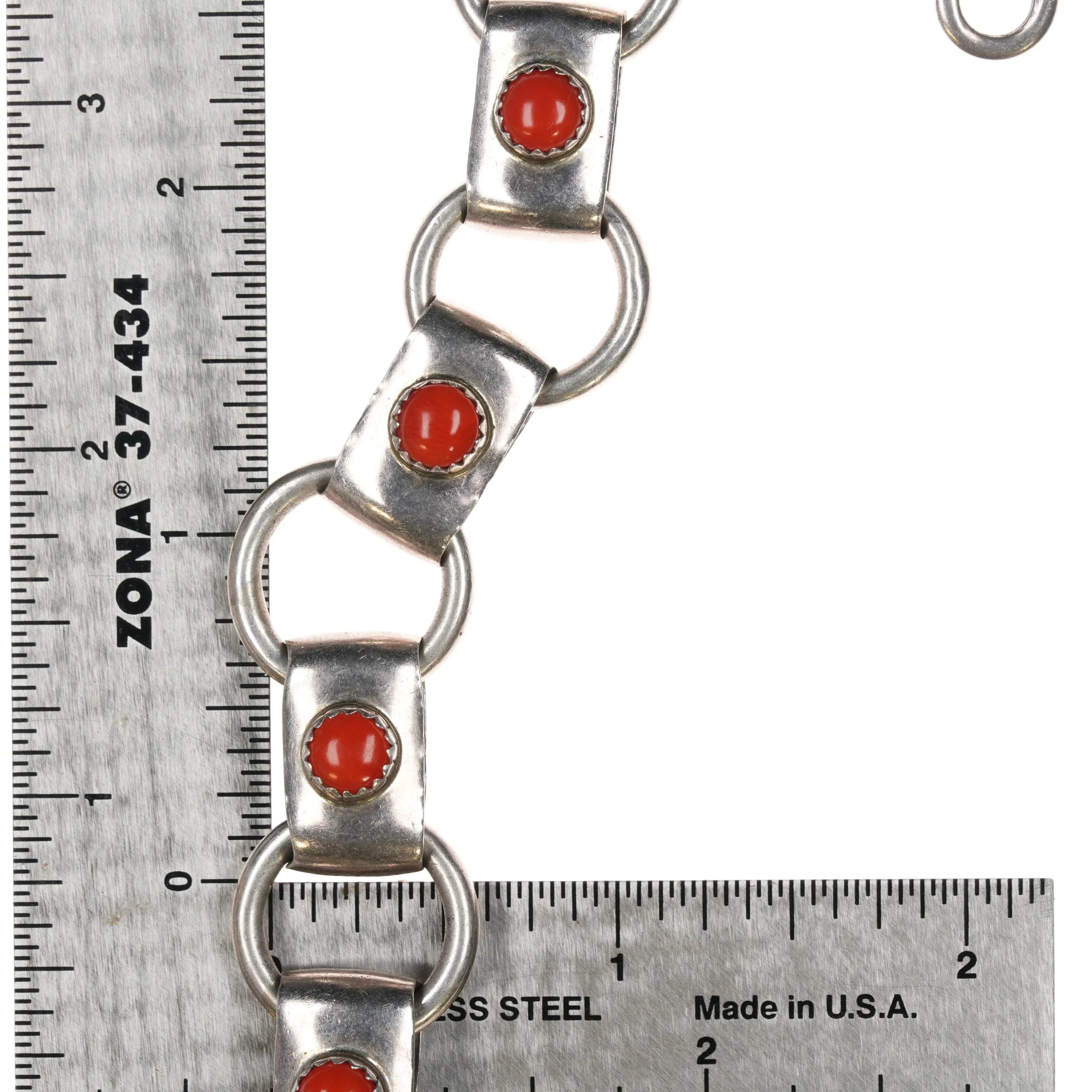 7" Harvey Mace Navajo thick sterling/coral link bracelet