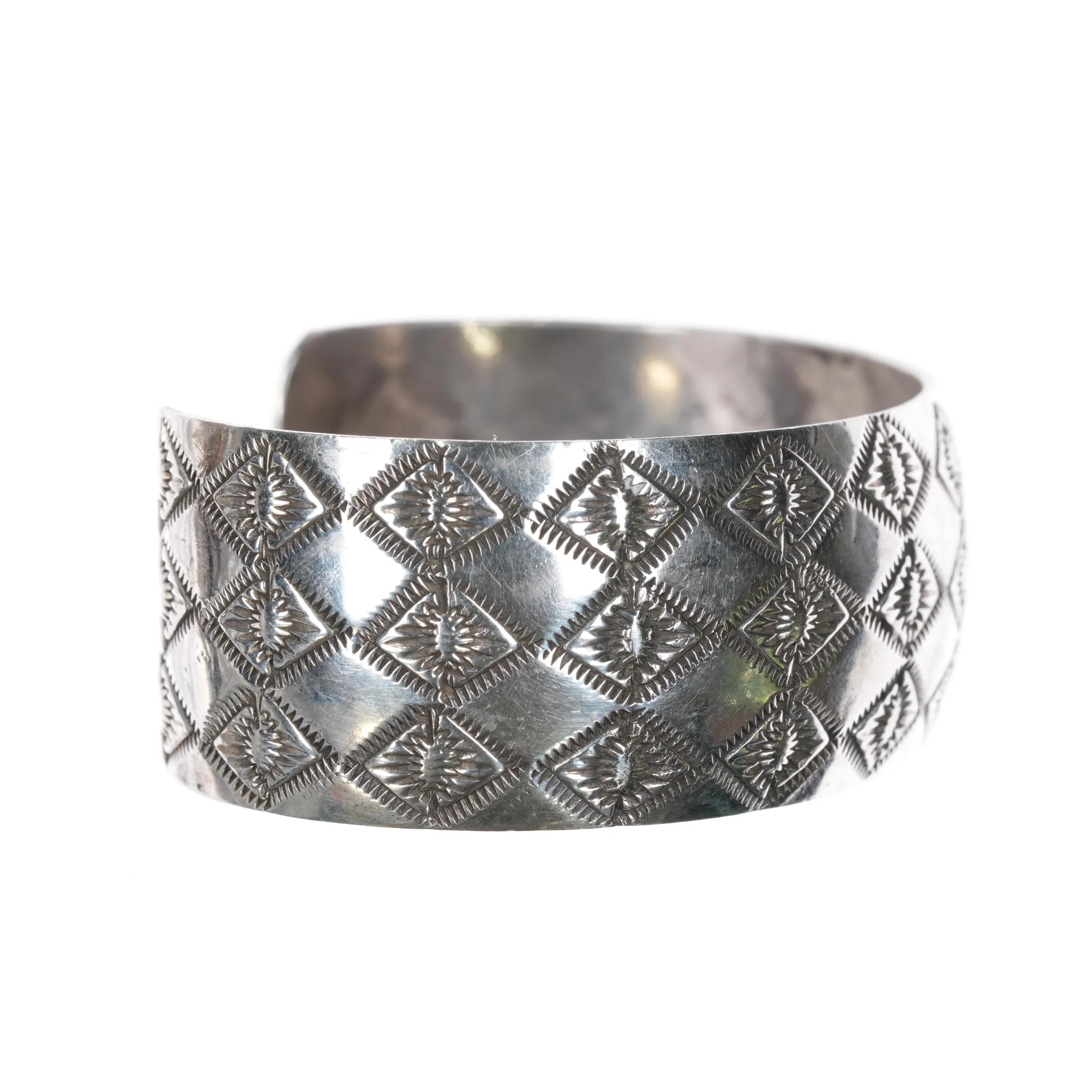 7" Navajo heavily stamped sterling silver convex cuff bracelet