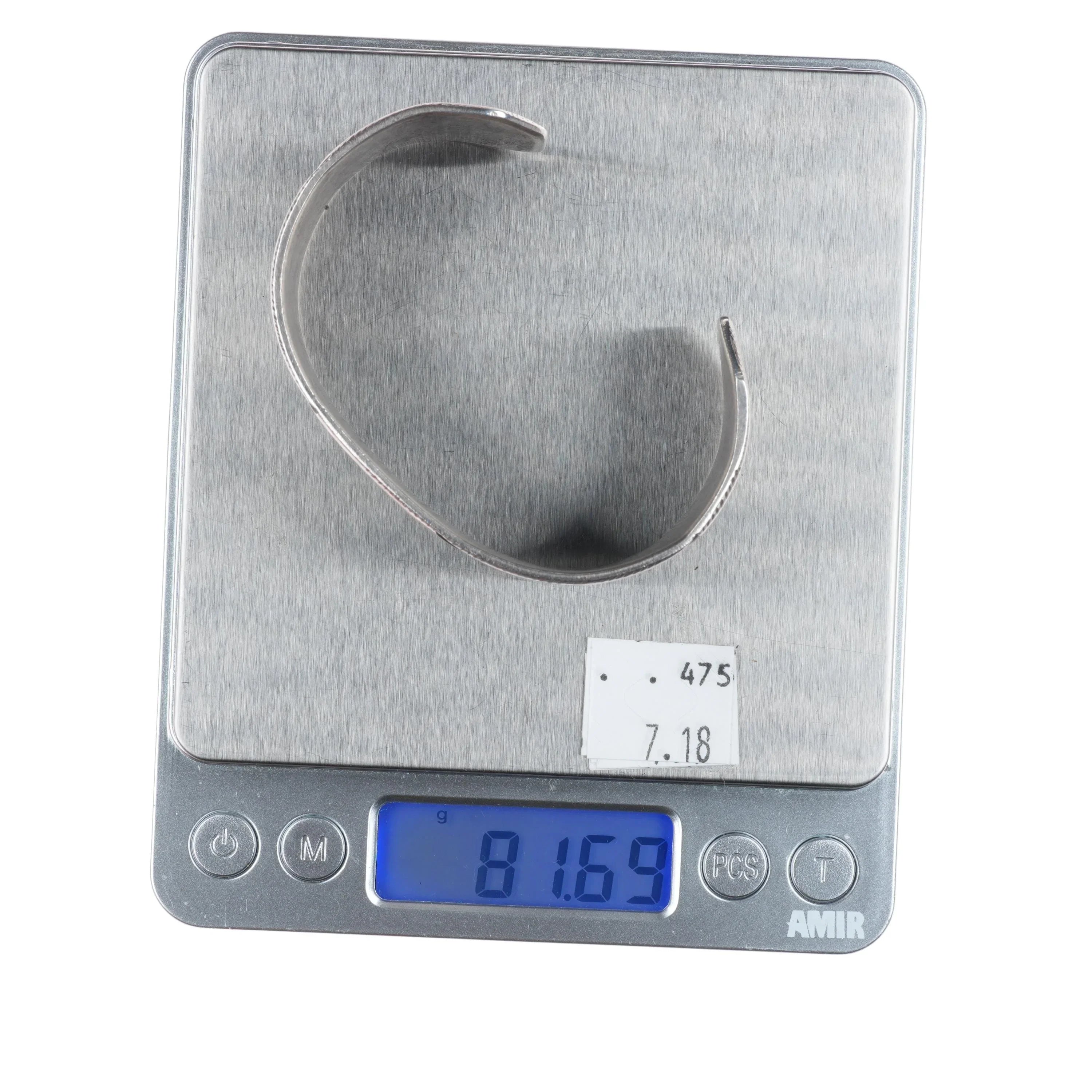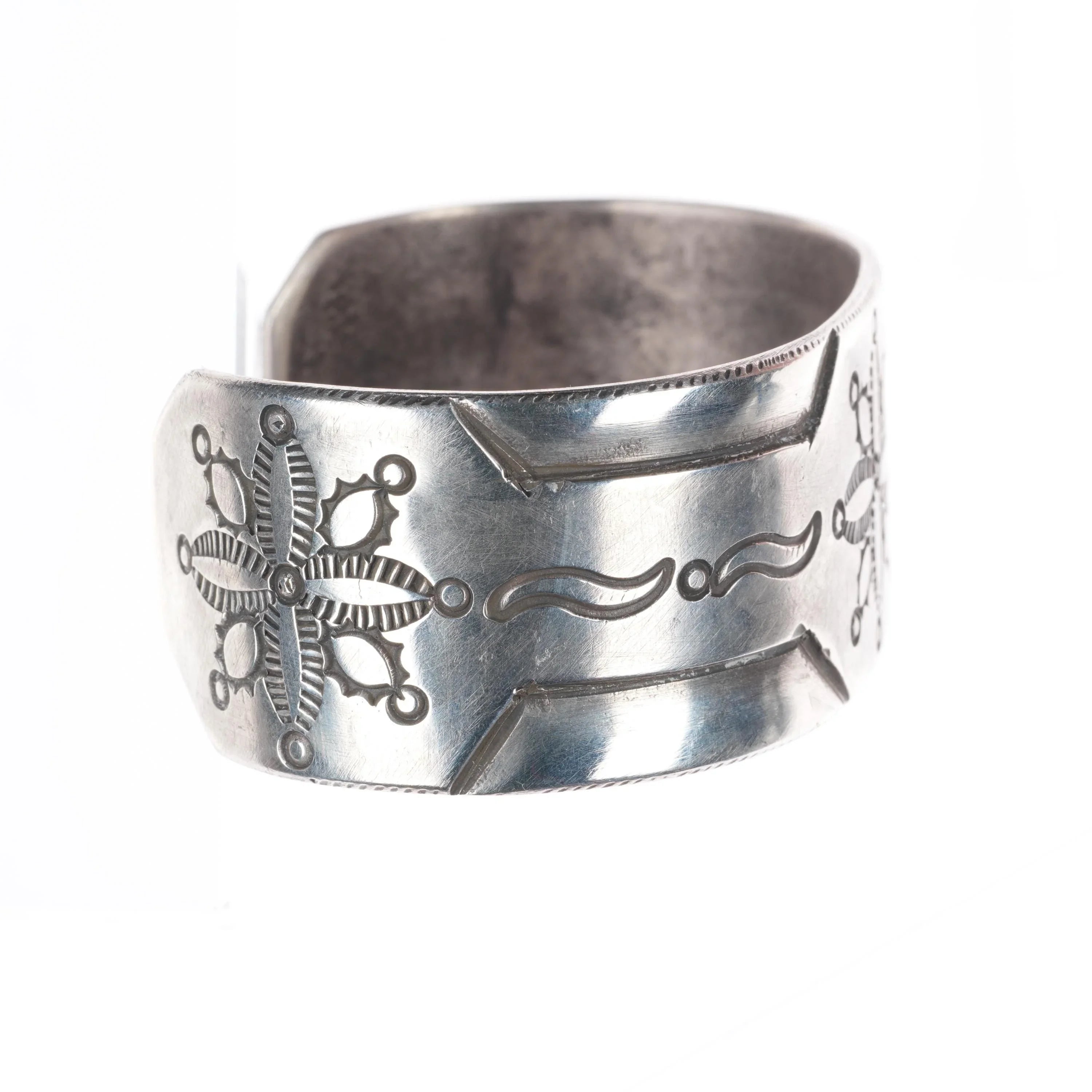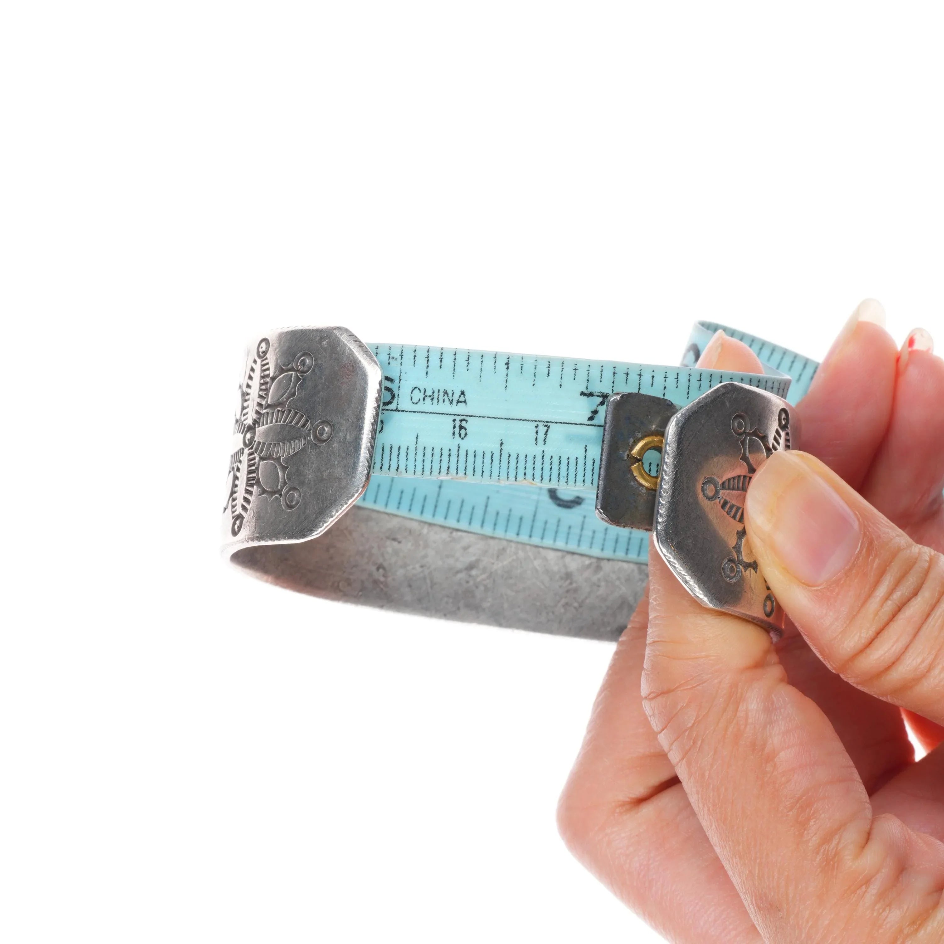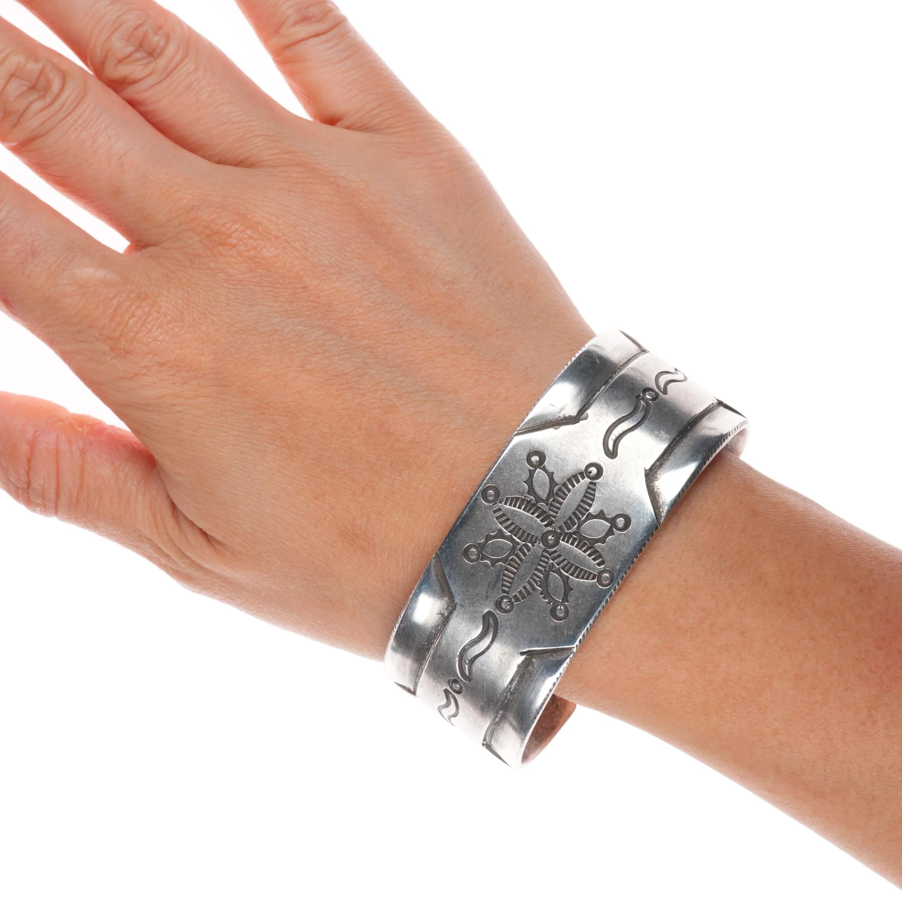 7" Vintage Ingot silver Navajo Revival hand stamped heavy cuff bracelet sterling