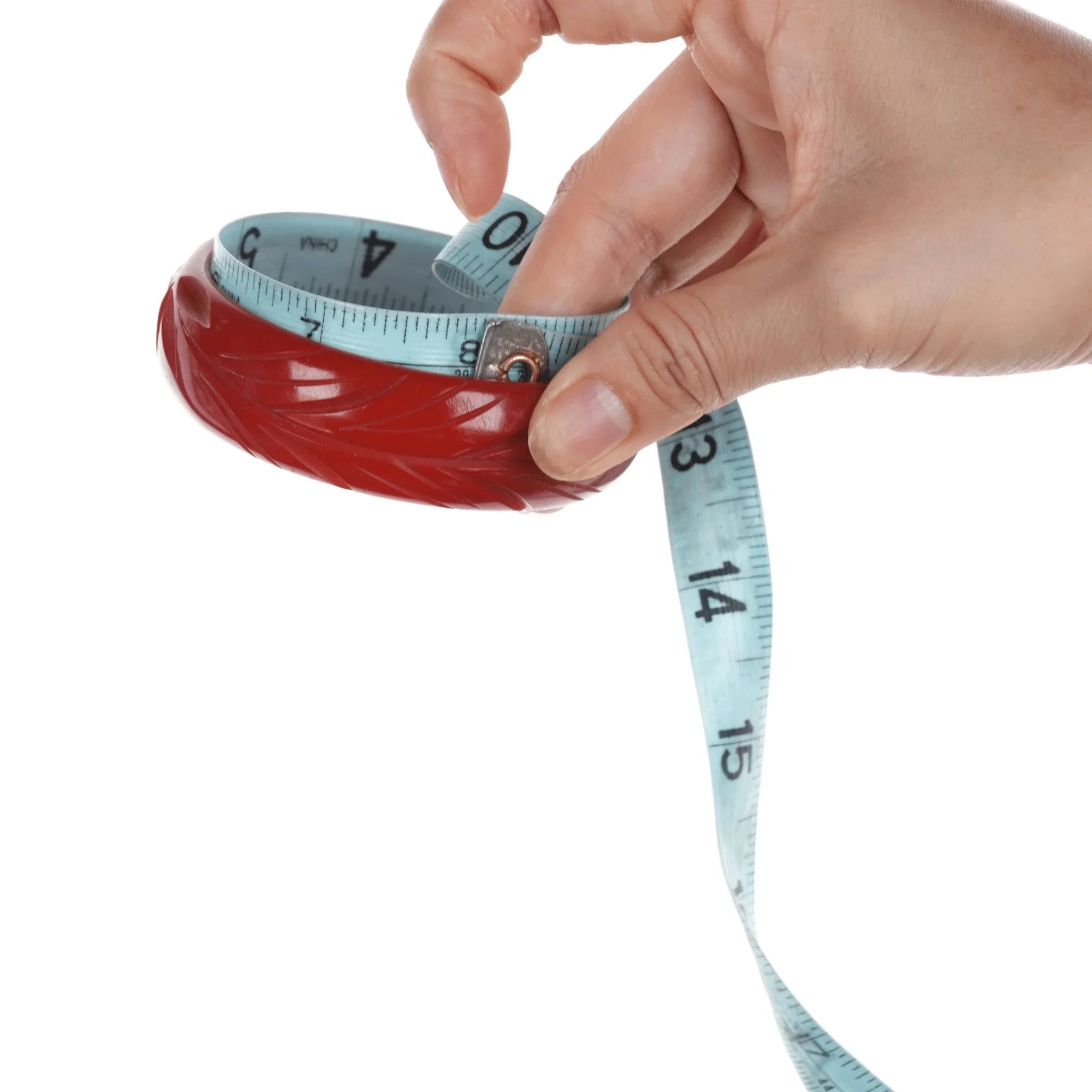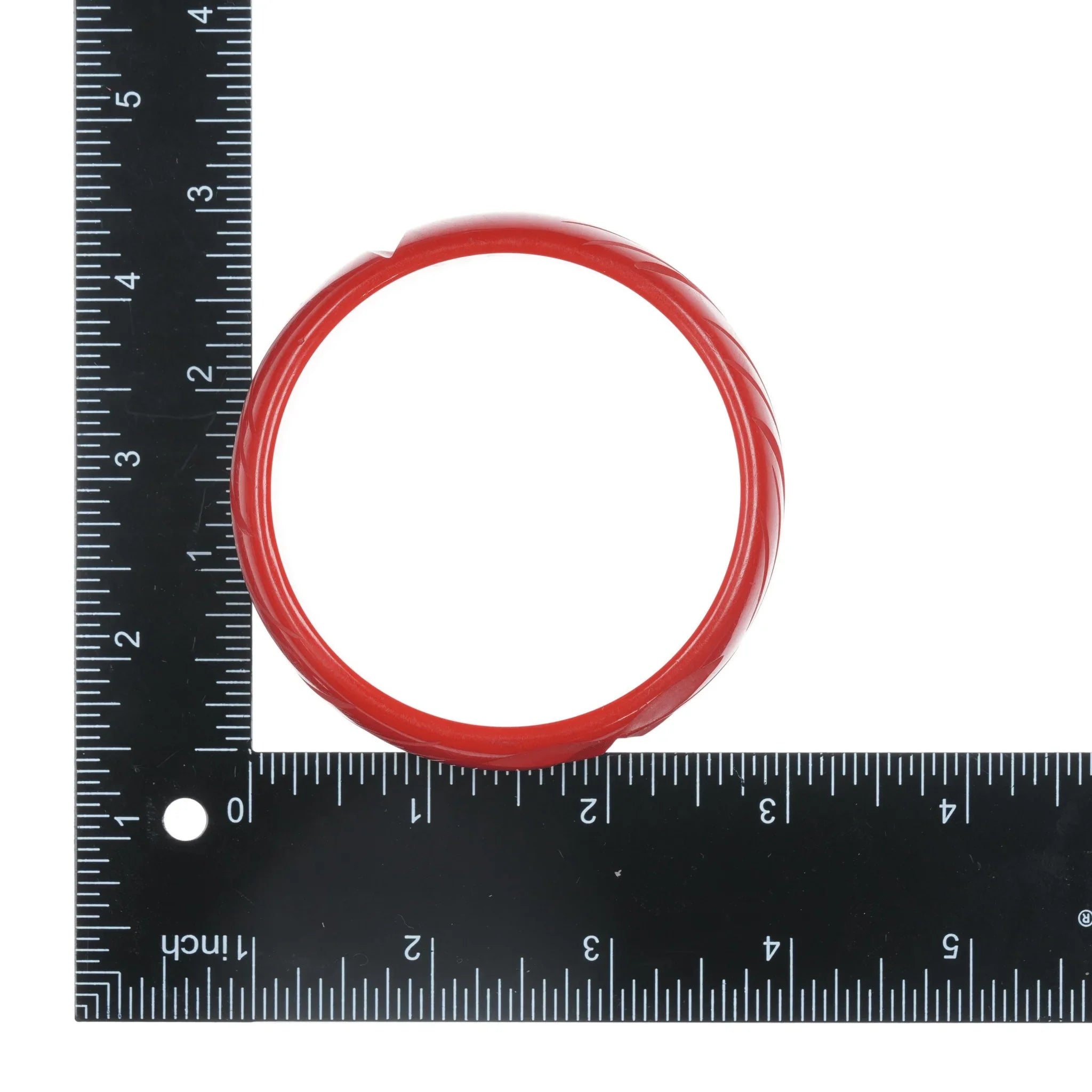 8" c1940's Carved red bakelite bangle . Very well preserved authentic item from an extensive long time collection put together in the last quarter of the 20th century. Shown on a 6" women's wrist. Measurements in pics.