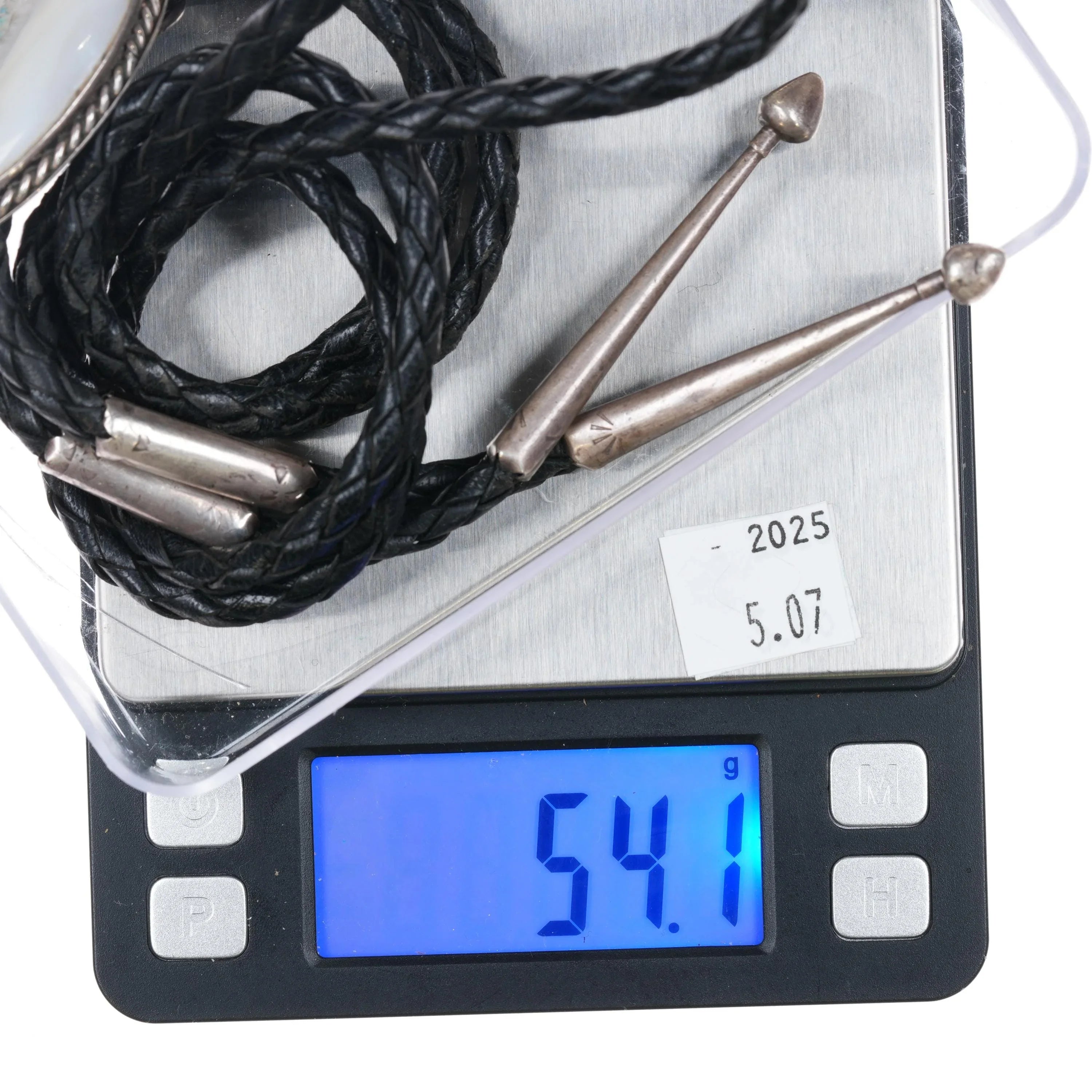 80‘s-90‘s Vintage Turquoise inlaid Agate sterling silver bolo tie. Solid sterling bolo slide and tips, no issues. Weight and measurements in pictures. 45" long