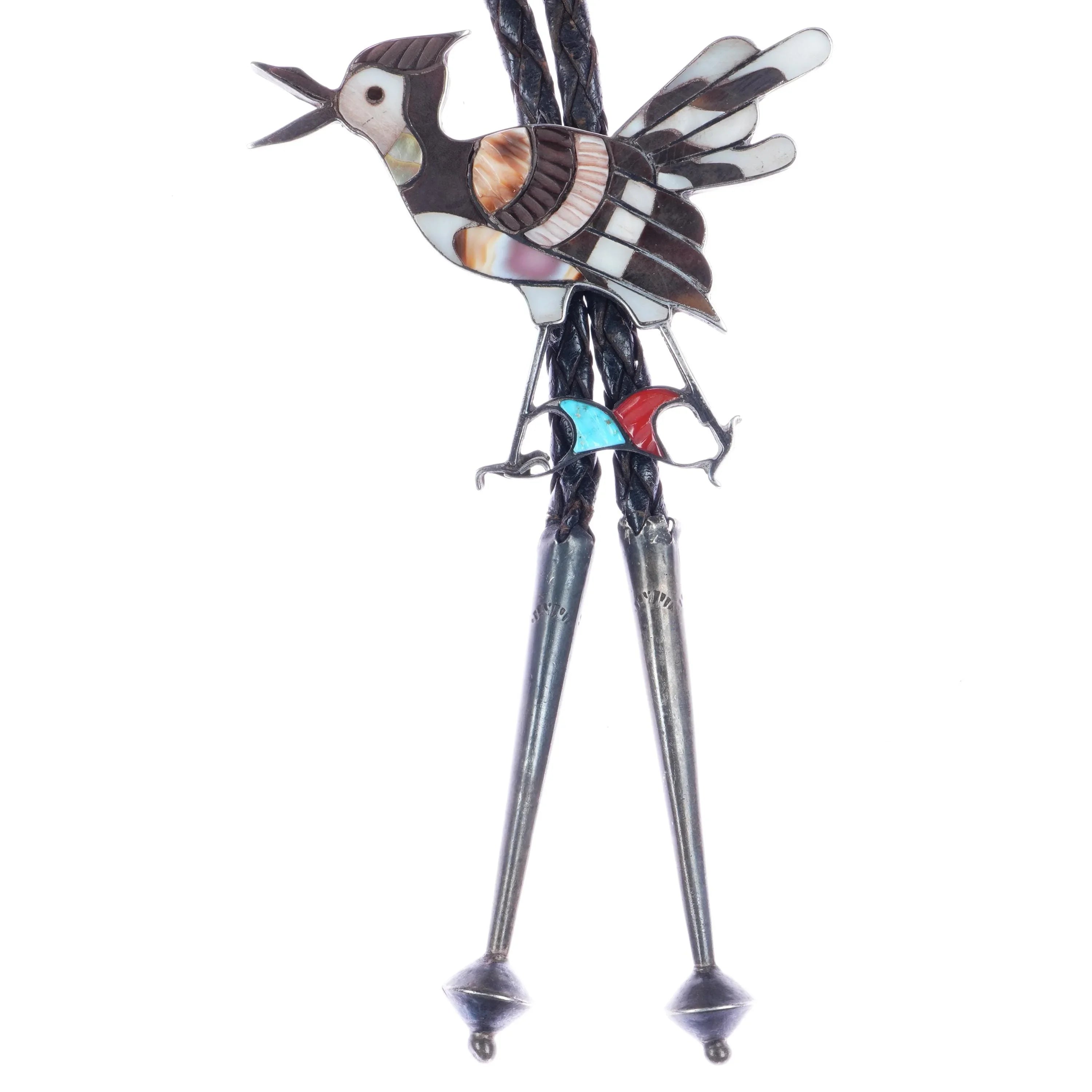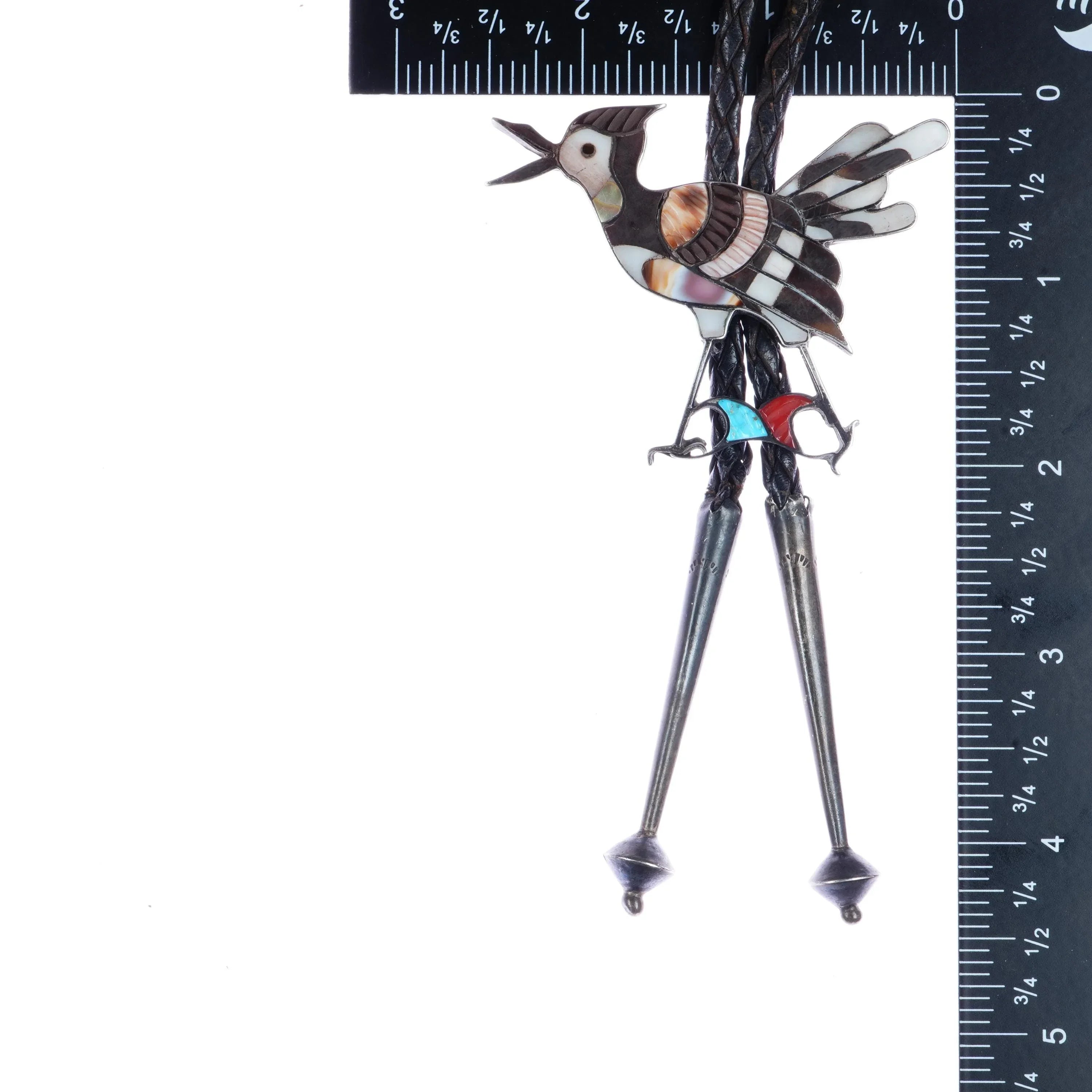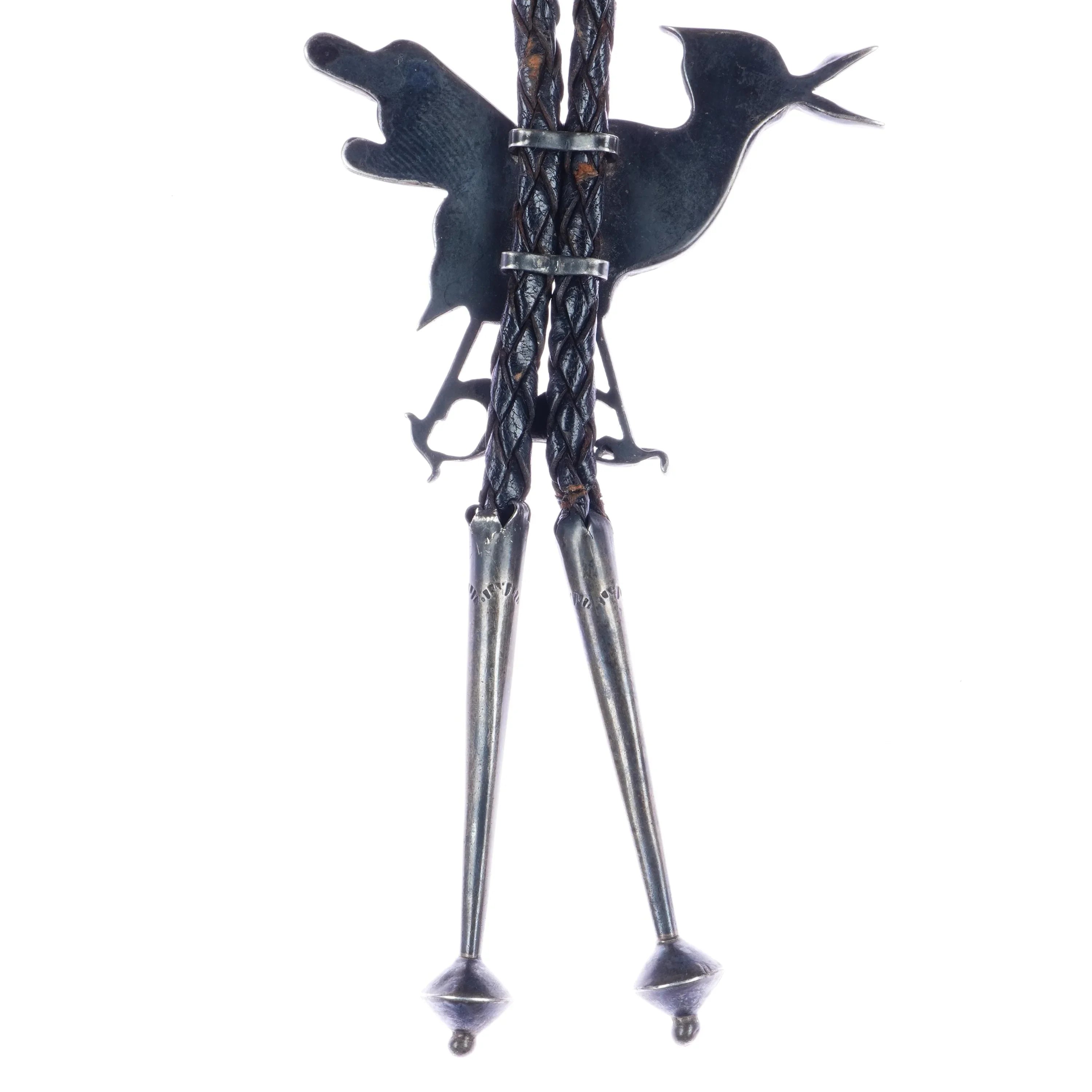 c1950 Edward Beyuka Zuni Roadrunner carved bolo tie sterling.