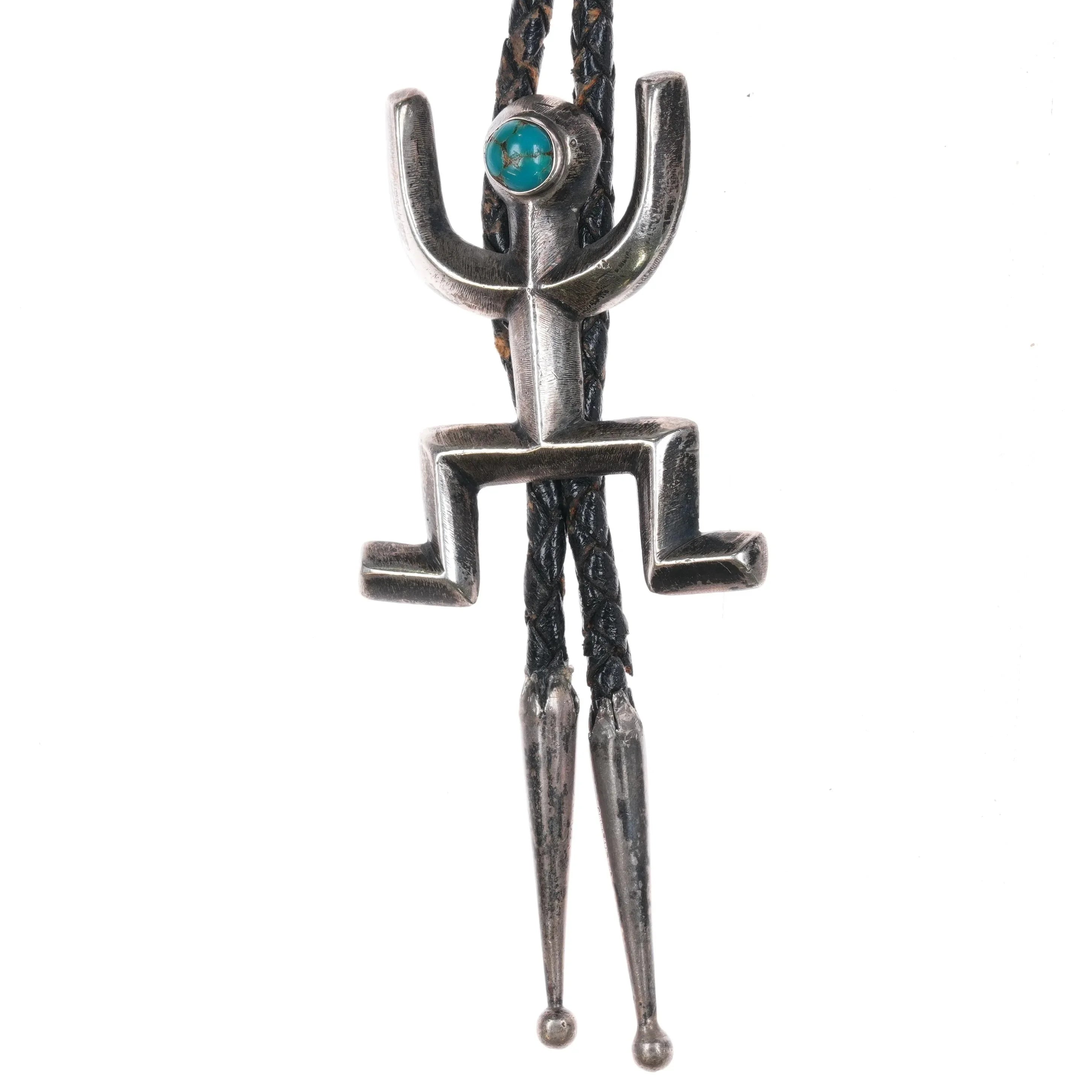 c1950 Navajo cast sterling silver bolo tie with turquoise