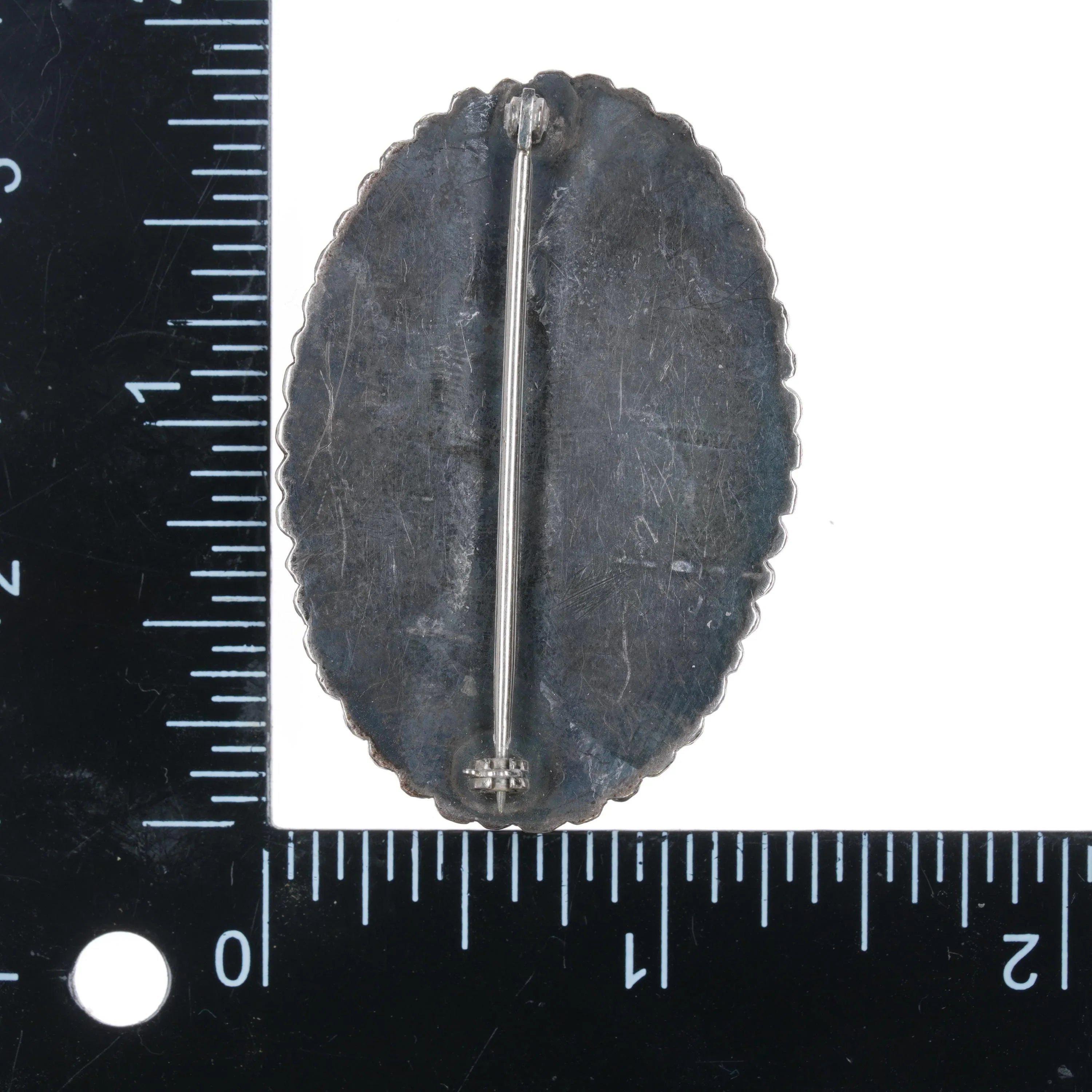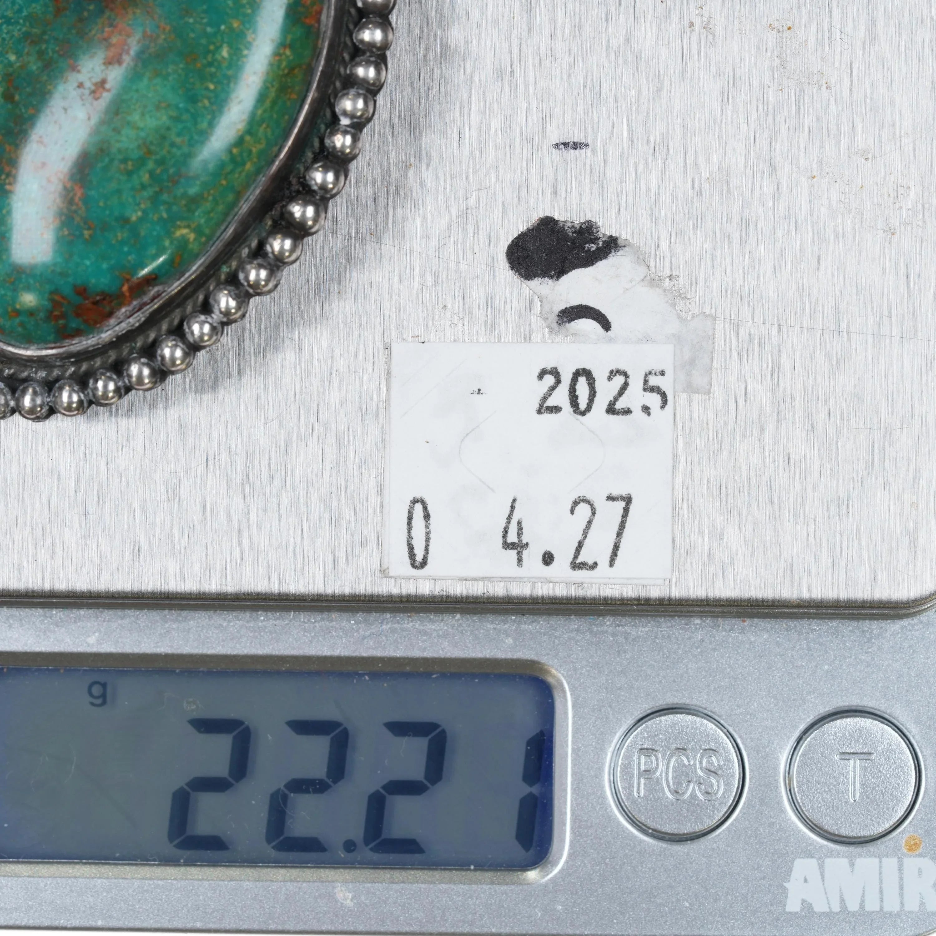c1950 Navajo Green turquoise pin sterling silver beaded rim