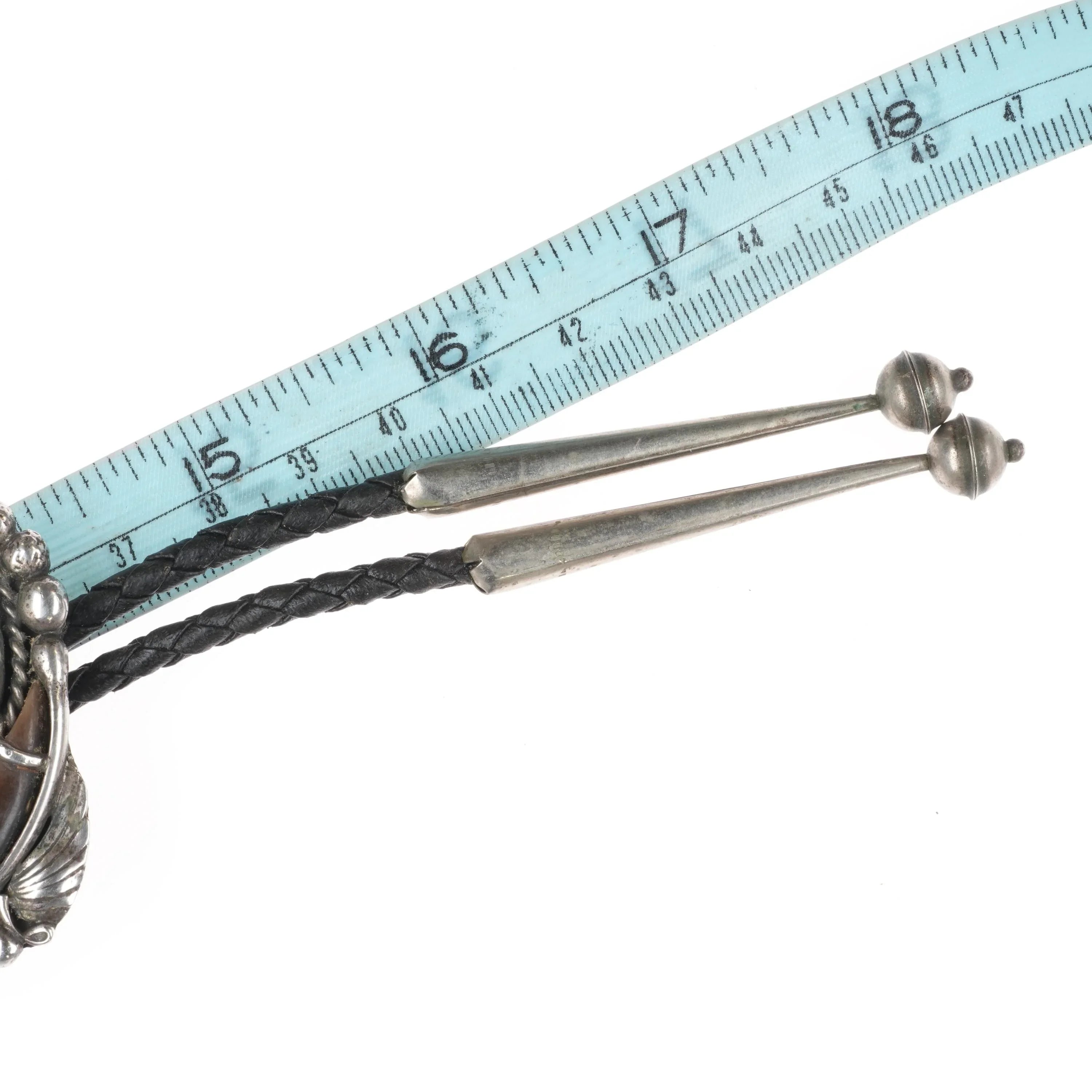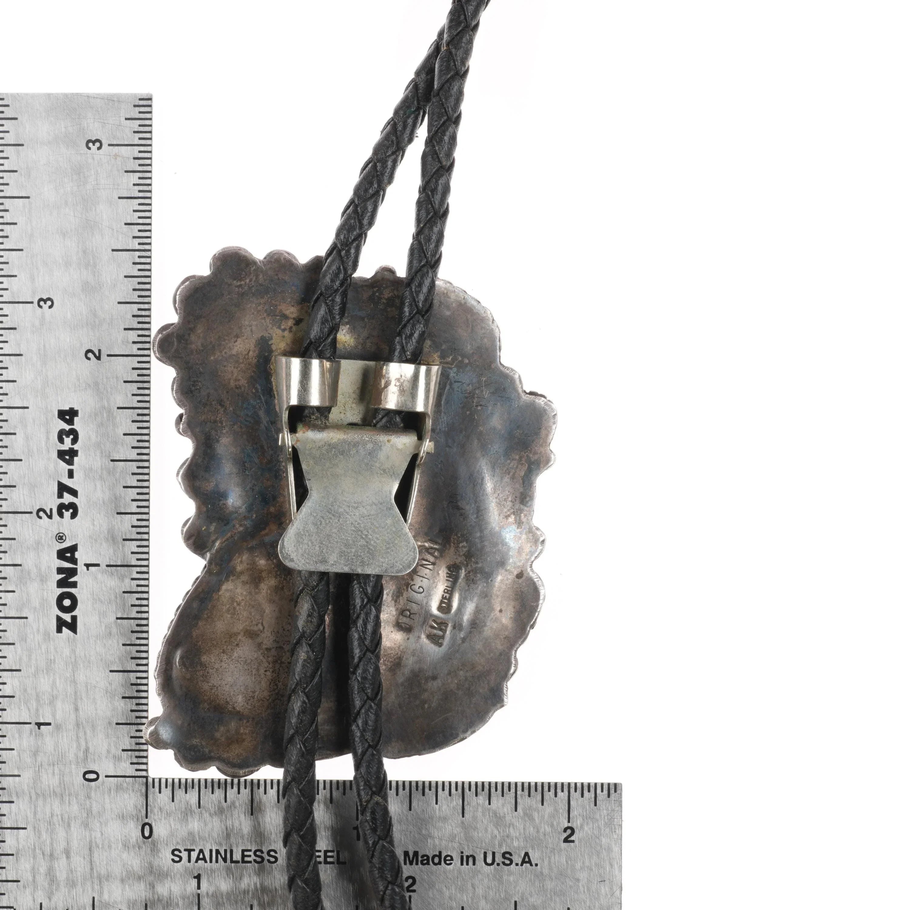 c1980 AK Navajo Large sterling silver, turquoise/coral bolo tie
