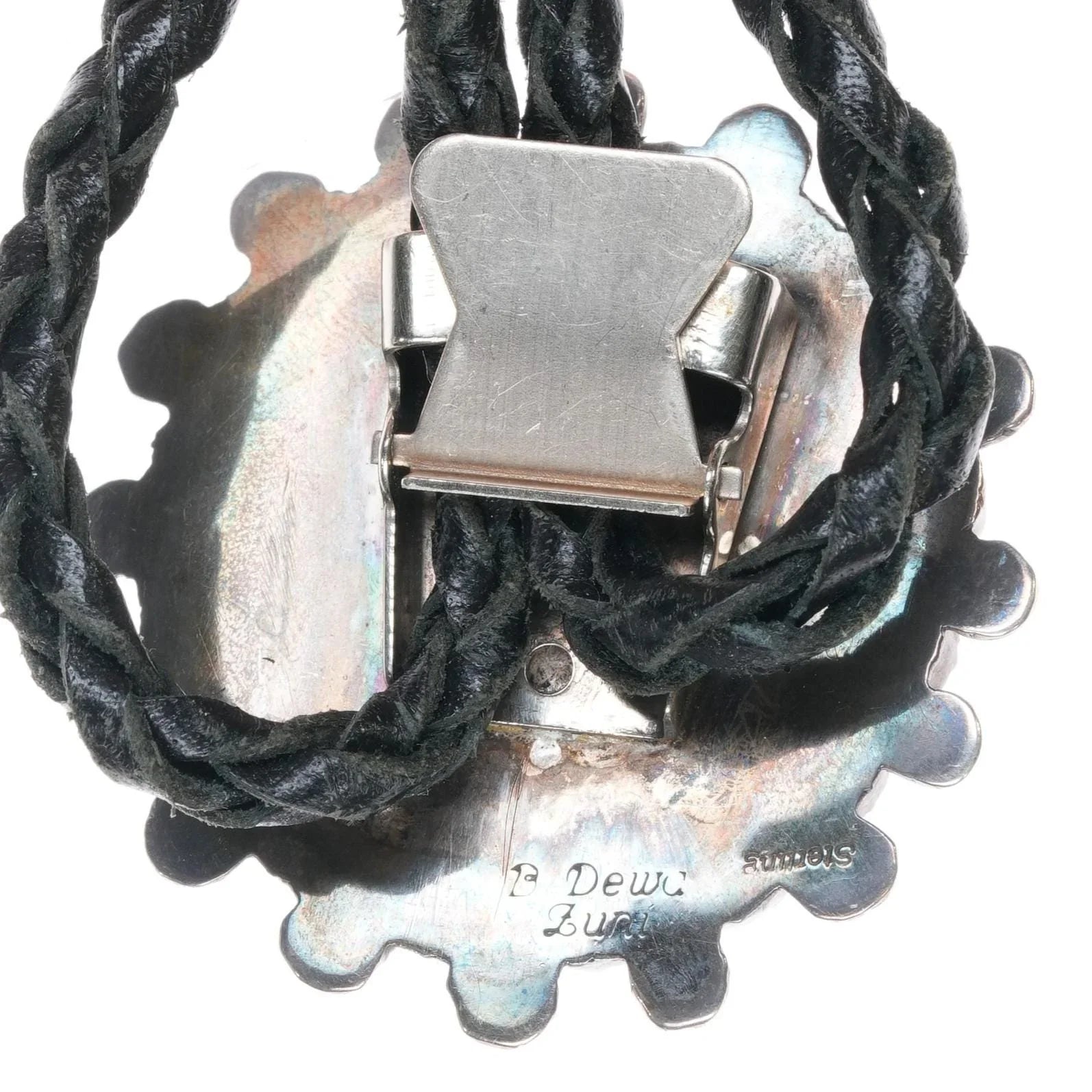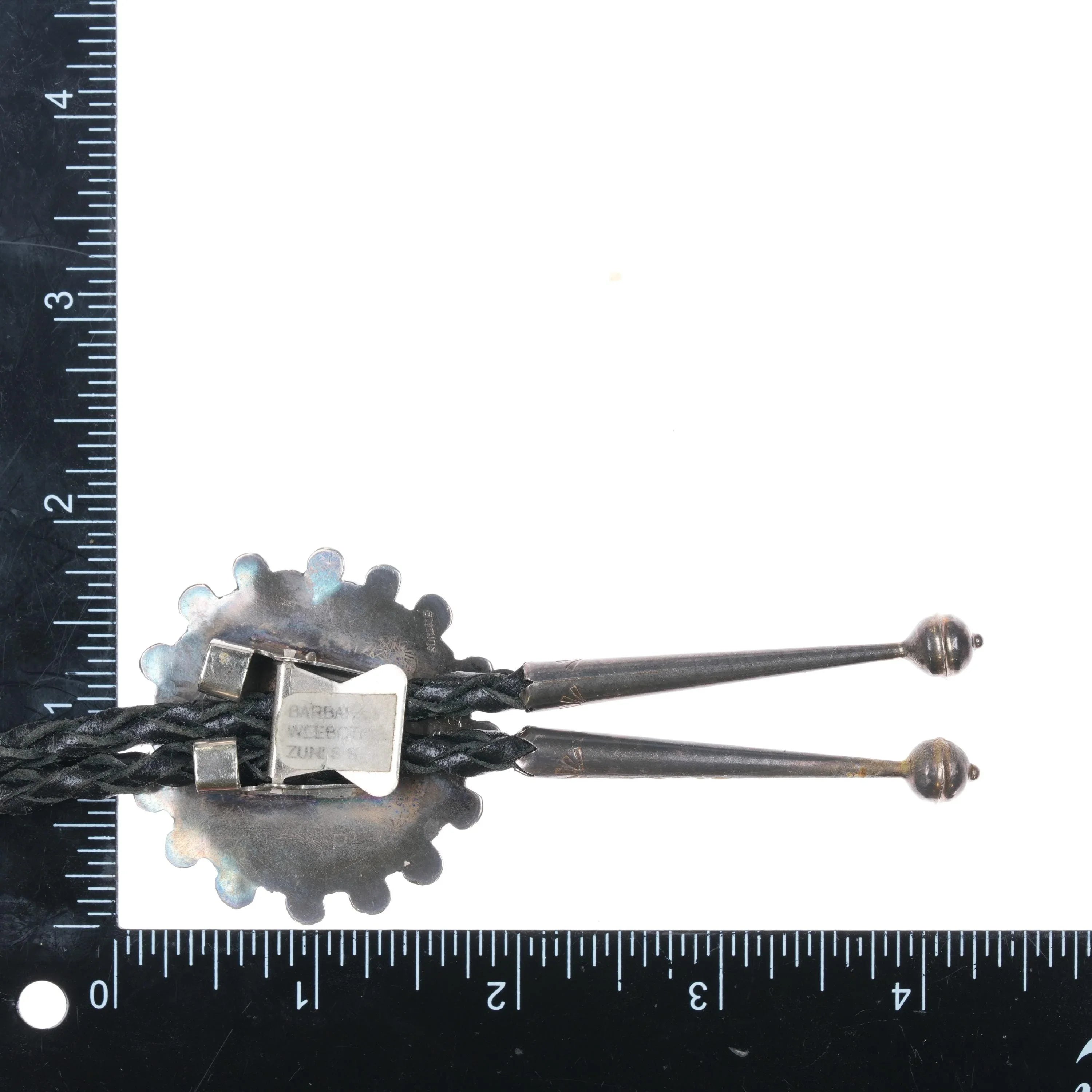c1980's Barbara Dewa Zuni carved sunface bolo tie sterling silver