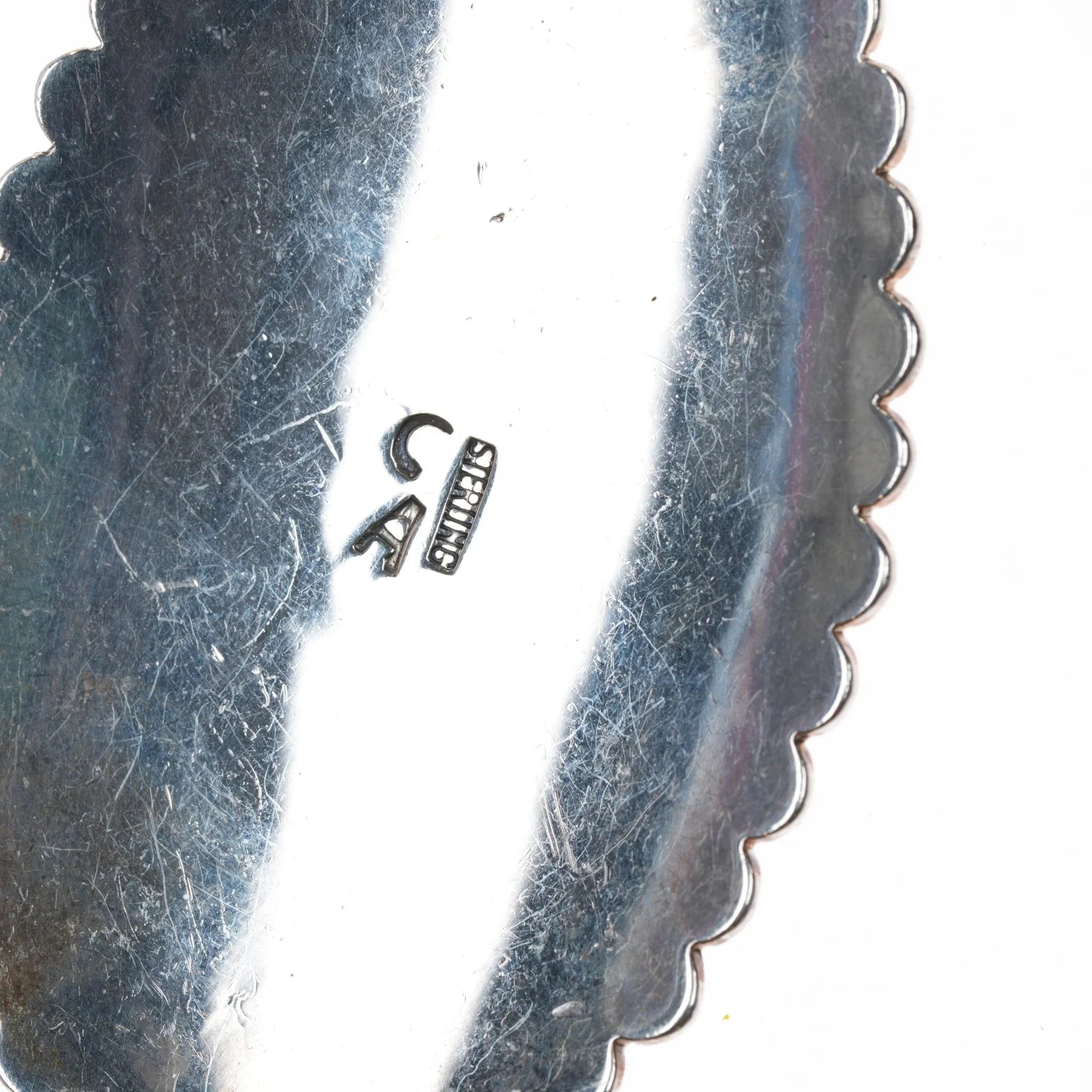 All precious metals are tested and guaranteed, any Native American jewelry<br>referred to as Silver or Sterling is guaranteed to be a minimum of 90% (coin)<br>silver and possibly higher content. Anything marked is guaranteed to be what<br>it‘s marked, most bracelets are photographed on a 6" wrist (non hairy), rings photographed on the appropriate sized finger when possible. With bracelets if<br>the measurement is not given in the description then inside circumference is<br>shown where the metal meets the number on the the cloth tape measure.