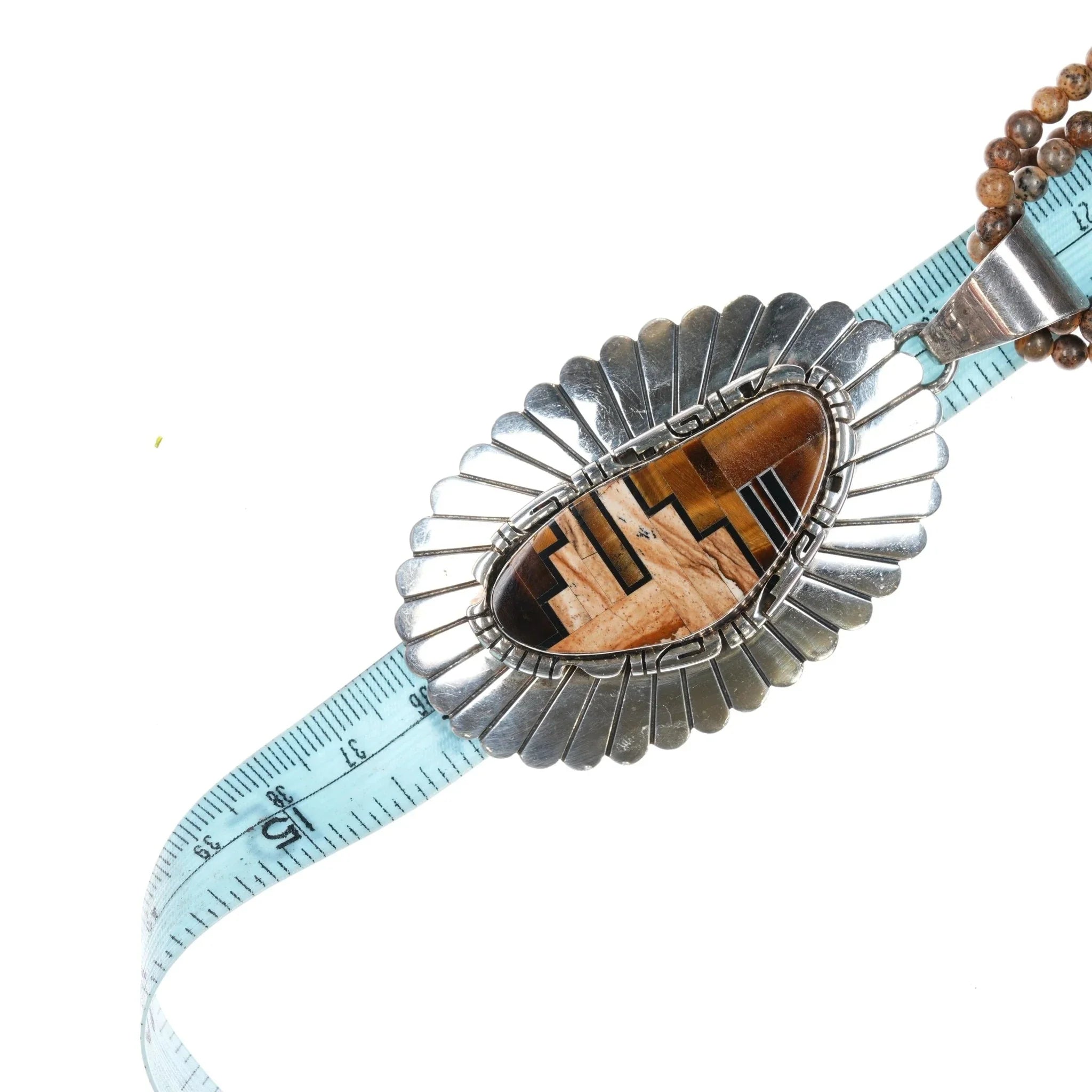 Cecil Ashley Navajo sterling tiger‘s Eye, Onyx, petrified wood pendant/necklace. No issues, weight and measurements in pics, solid sterling. Necklace is the same stones but with only sterling mark on the cones.