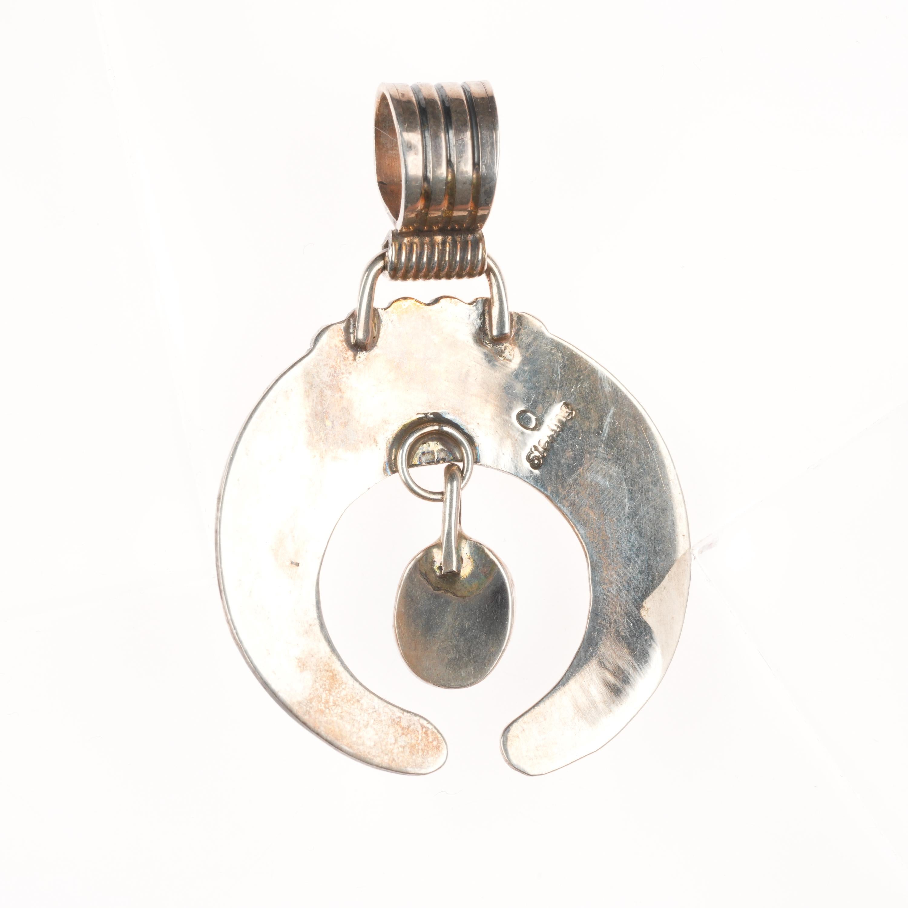 Cester Charley Navajo overlay style sterling silver naja pendant with turquoise. Circa fourth quarter of the 20th century, tested and guaranteed solid sterling silver. Very well made, no issues.