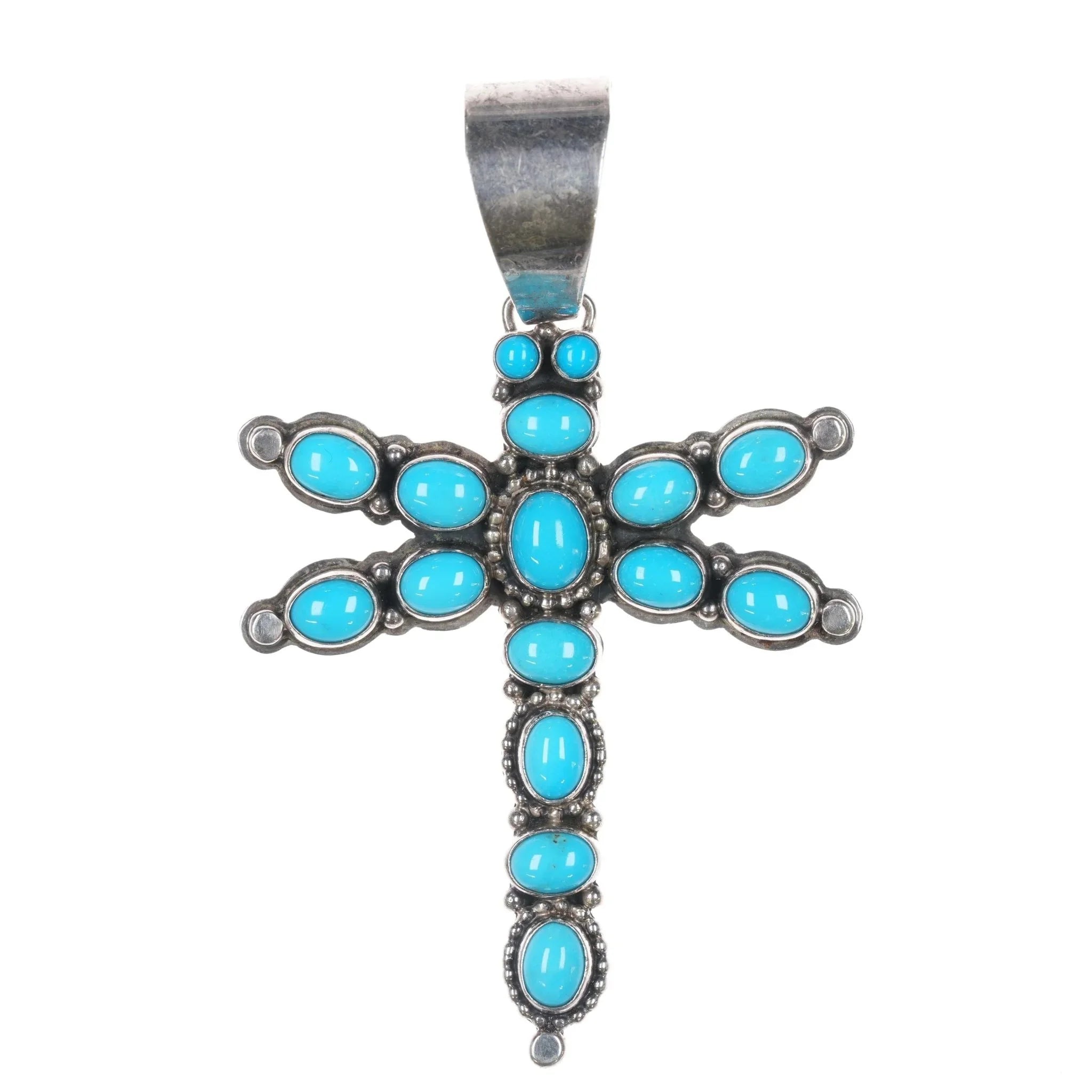 Darrin Livingston Navajo Sterling Sleeping Beauty turquoise Dragonfly pendant. No issues, weight and measurements in pics.